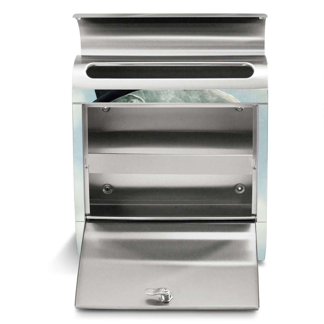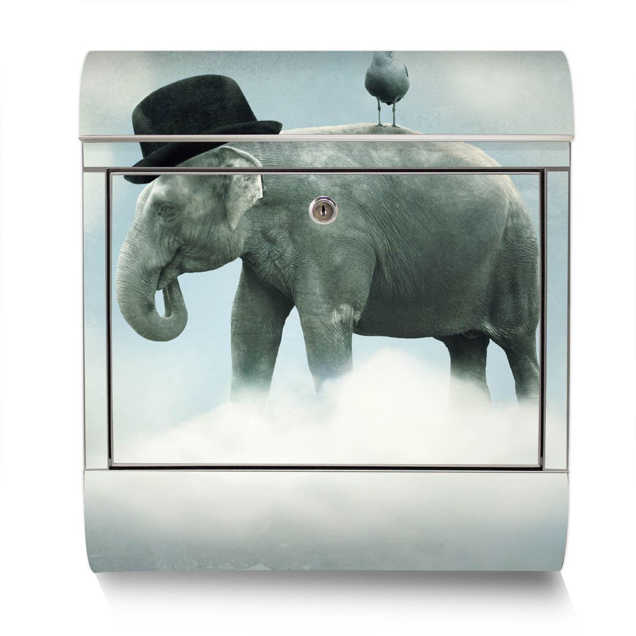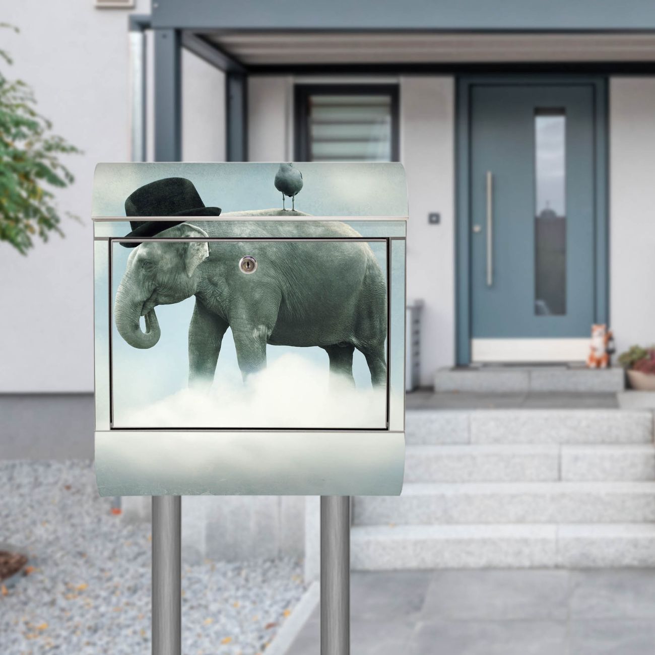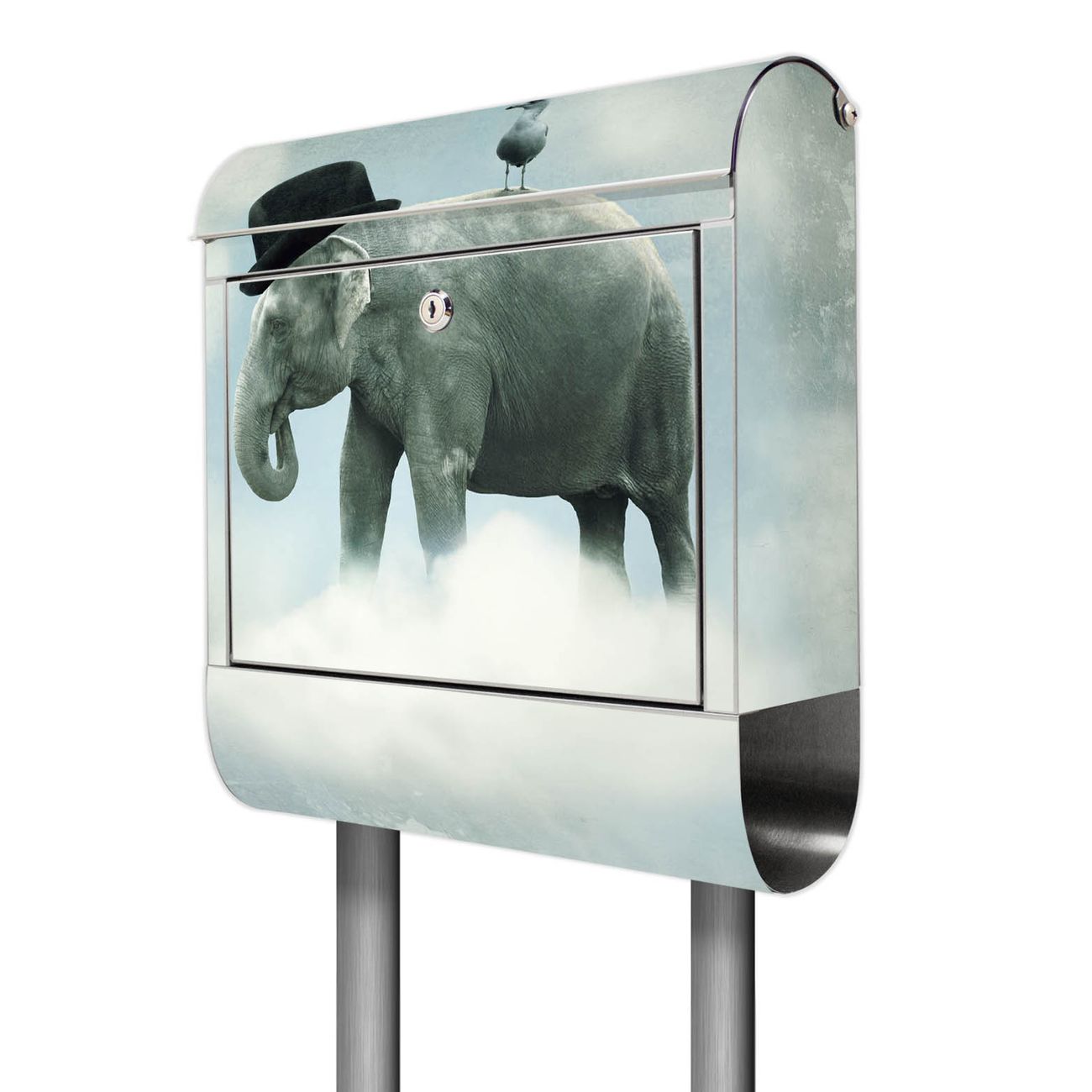Der banjado Edelstahl Standbriefkasten mit Motiv Elefant und Möwe bietet Ihnen mit seinem Fassungsvermögen genügend Platz auch für große A4 Sendungen. Das integrierte Zeitungsfach eignet sich hervorragend, um unkompliziert die Tageszeitung zu fassen.
