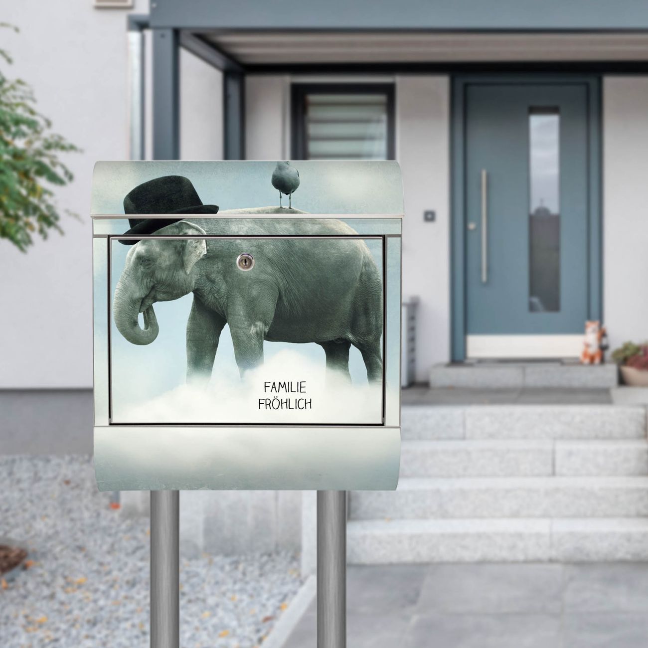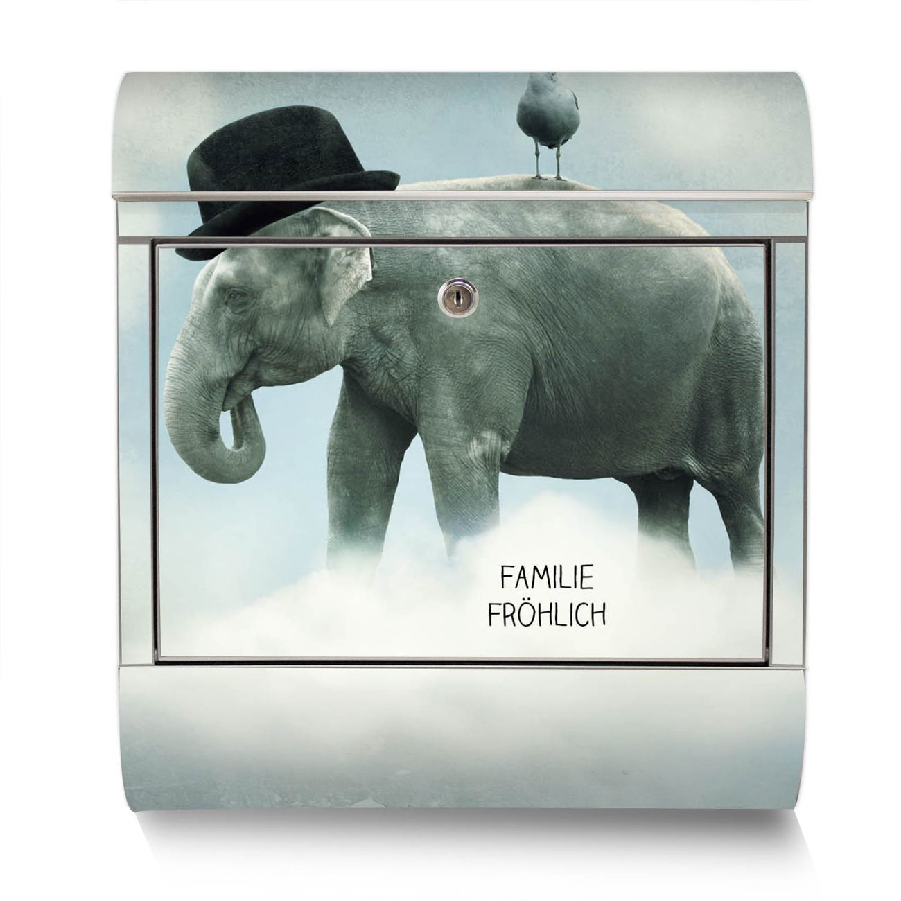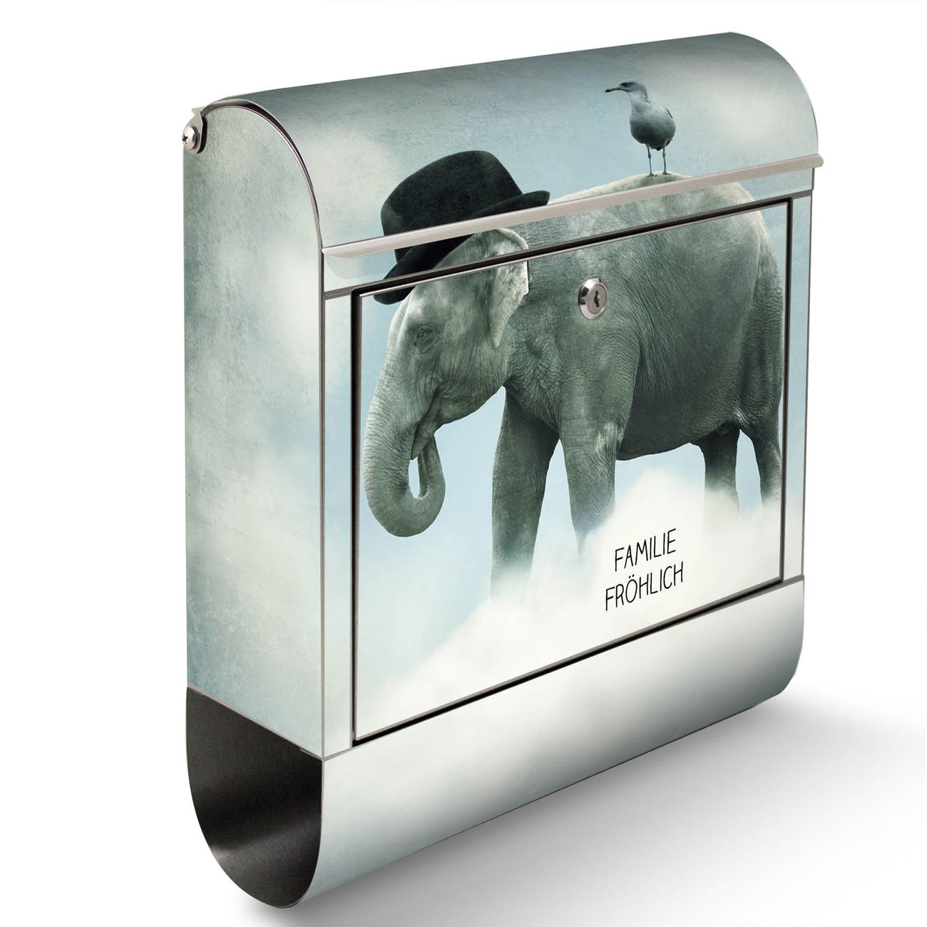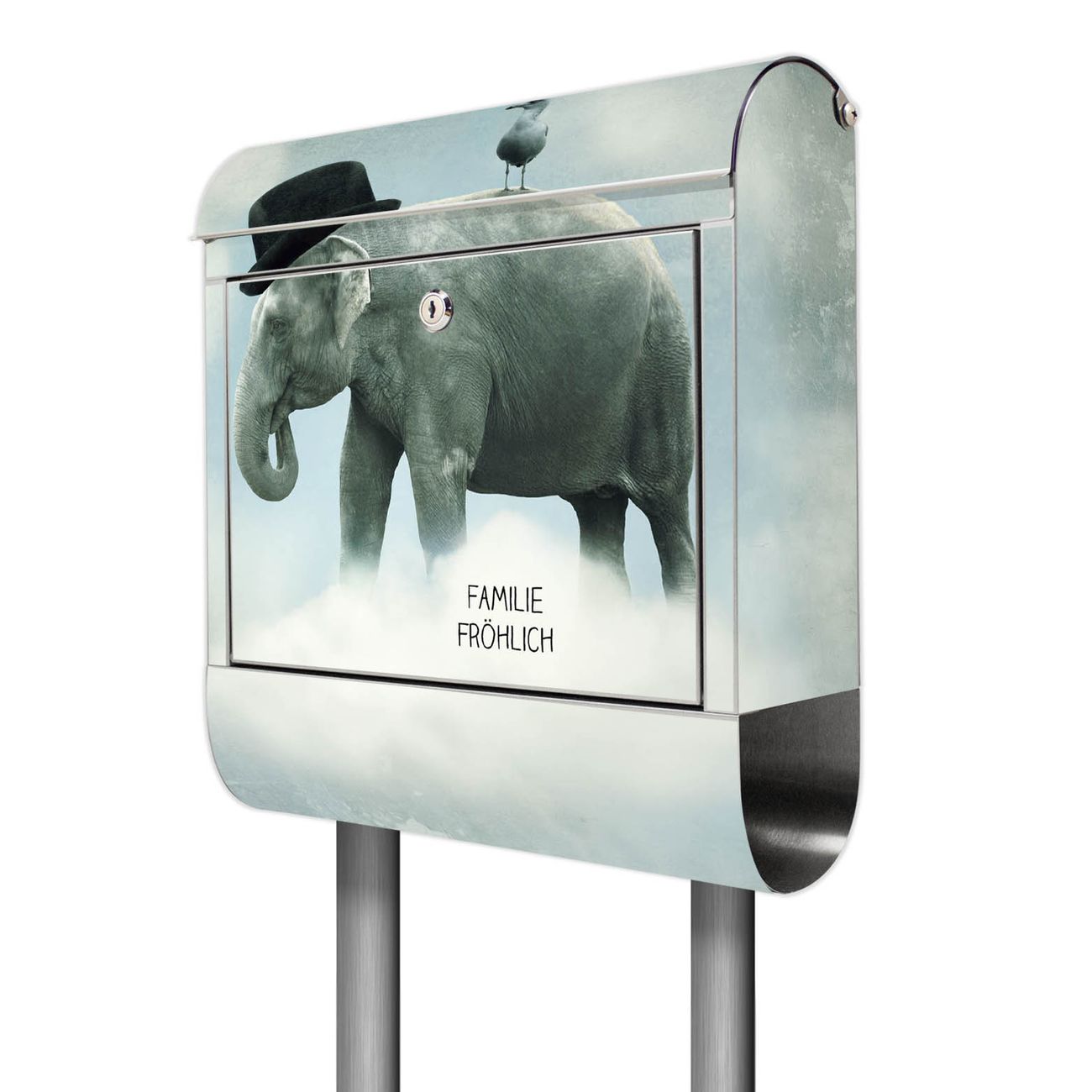 Standbriefkasten Edelstahl Elefant und Möwe