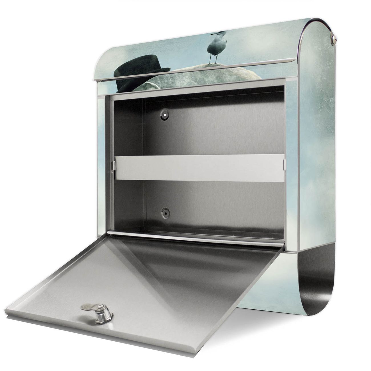 Der Motivstandbriefkasten hat ein sehr ansprechendes und ausgefallenes Design, damit entlocken Sie Ihren Nachbarn und dem Postboten ein Lächeln. Heben Sie Sich ab von der tristen grauen Masse, ohne auf Funktionalität zu verzichten. Der Briefkasten besteht aus hochwertigem 18/0 Edelstahl und die Wetter- und UV-resistenten Folie mit Elefant und Möwe Motiv ist zusätzlich mit einem Schutzlaminat überzogen. Der Standbriefkasten wird mit Montagematerial und zwei Schlüsseln geliefert.