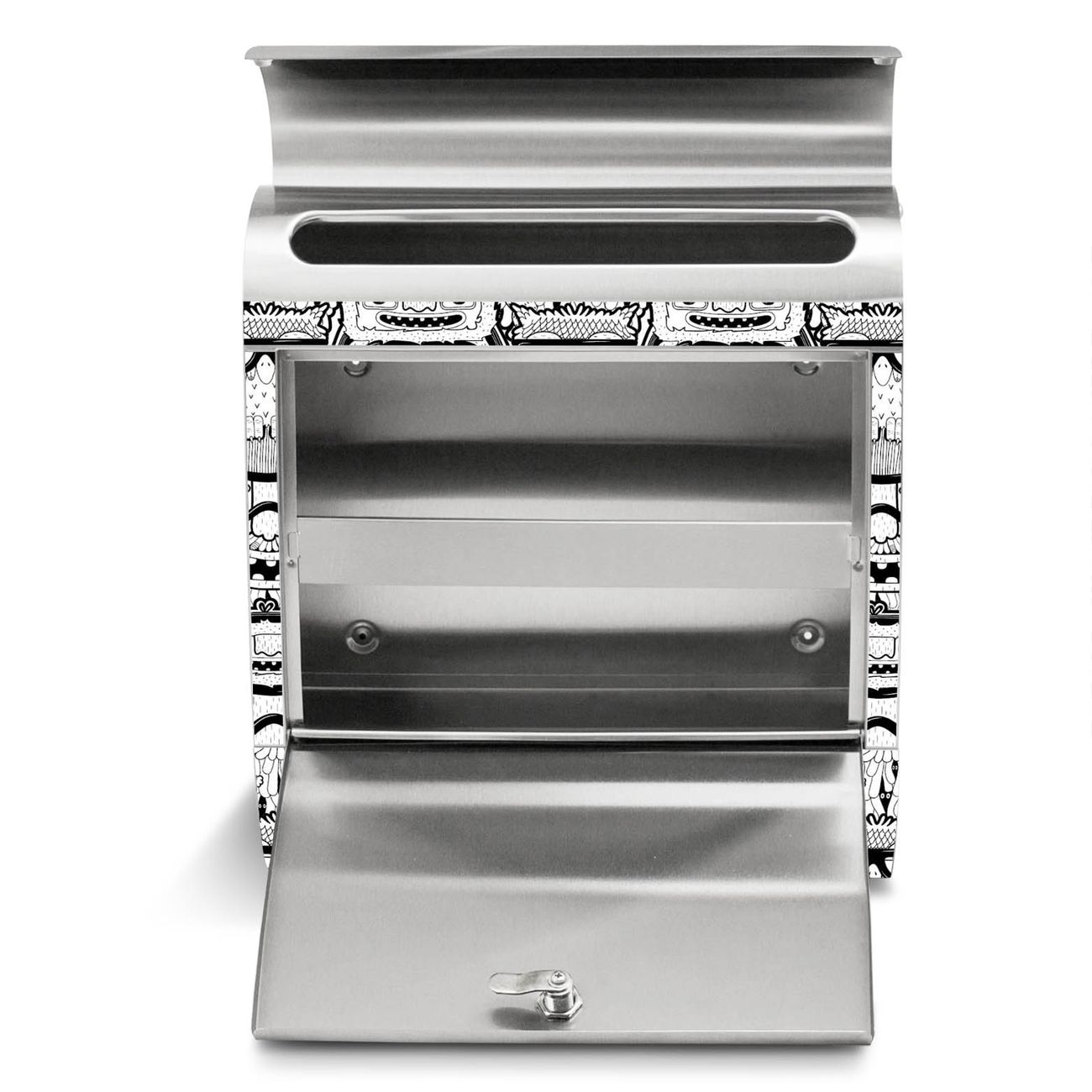 Der banjado Edelstahl Standbriefkasten mit Motiv Eule und Olaf bietet Ihnen mit seinem Fassungsvermögen genügend Platz auch für große A4 Sendungen. Das integrierte Zeitungsfach eignet sich hervorragend, um unkompliziert die Tageszeitung zu fassen.