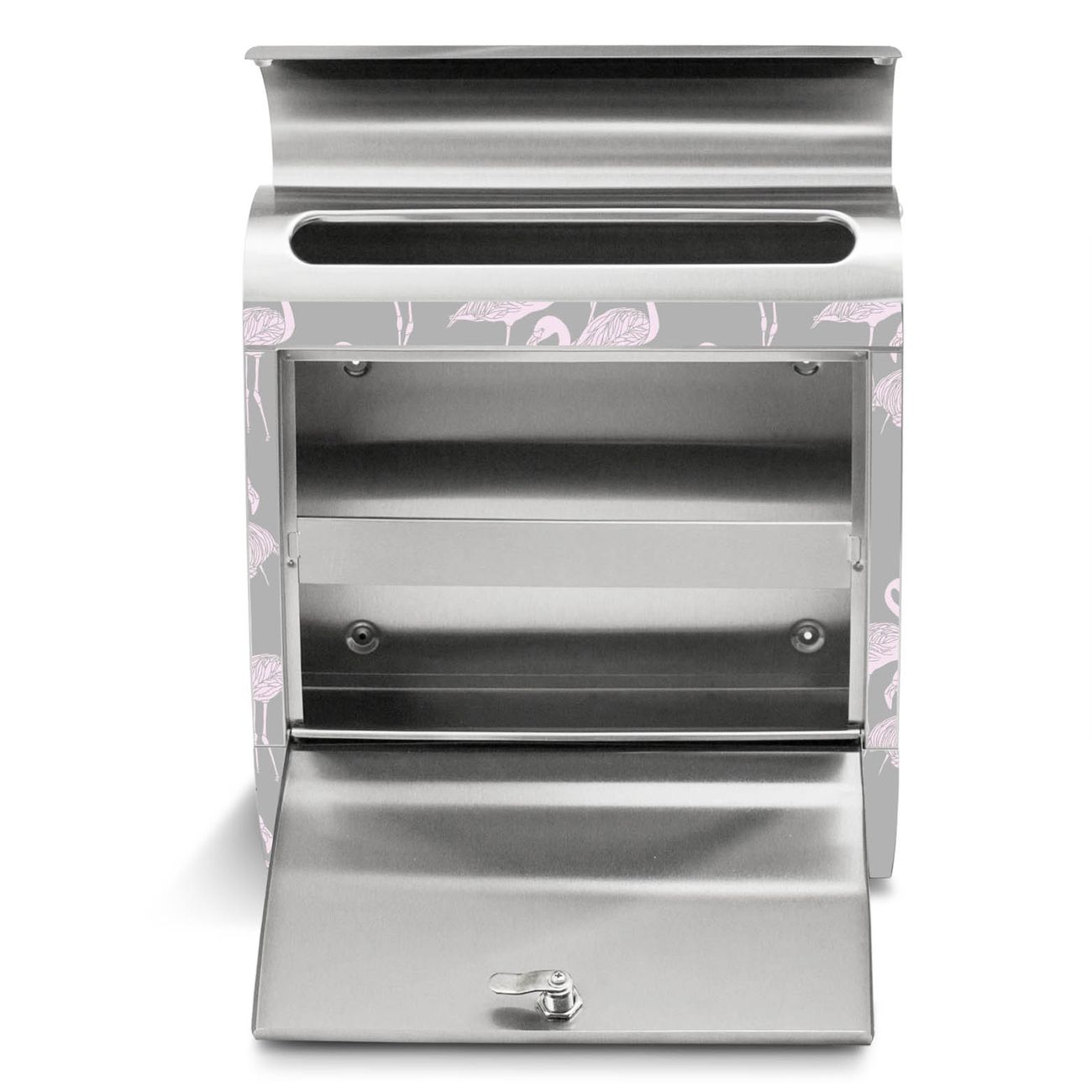 Der banjado Edelstahl Standbriefkasten mit Motiv Flamingos Blass bietet Ihnen mit seinem Fassungsvermögen genügend Platz auch für große A4 Sendungen. Das integrierte Zeitungsfach eignet sich hervorragend, um unkompliziert die Tageszeitung zu fassen.