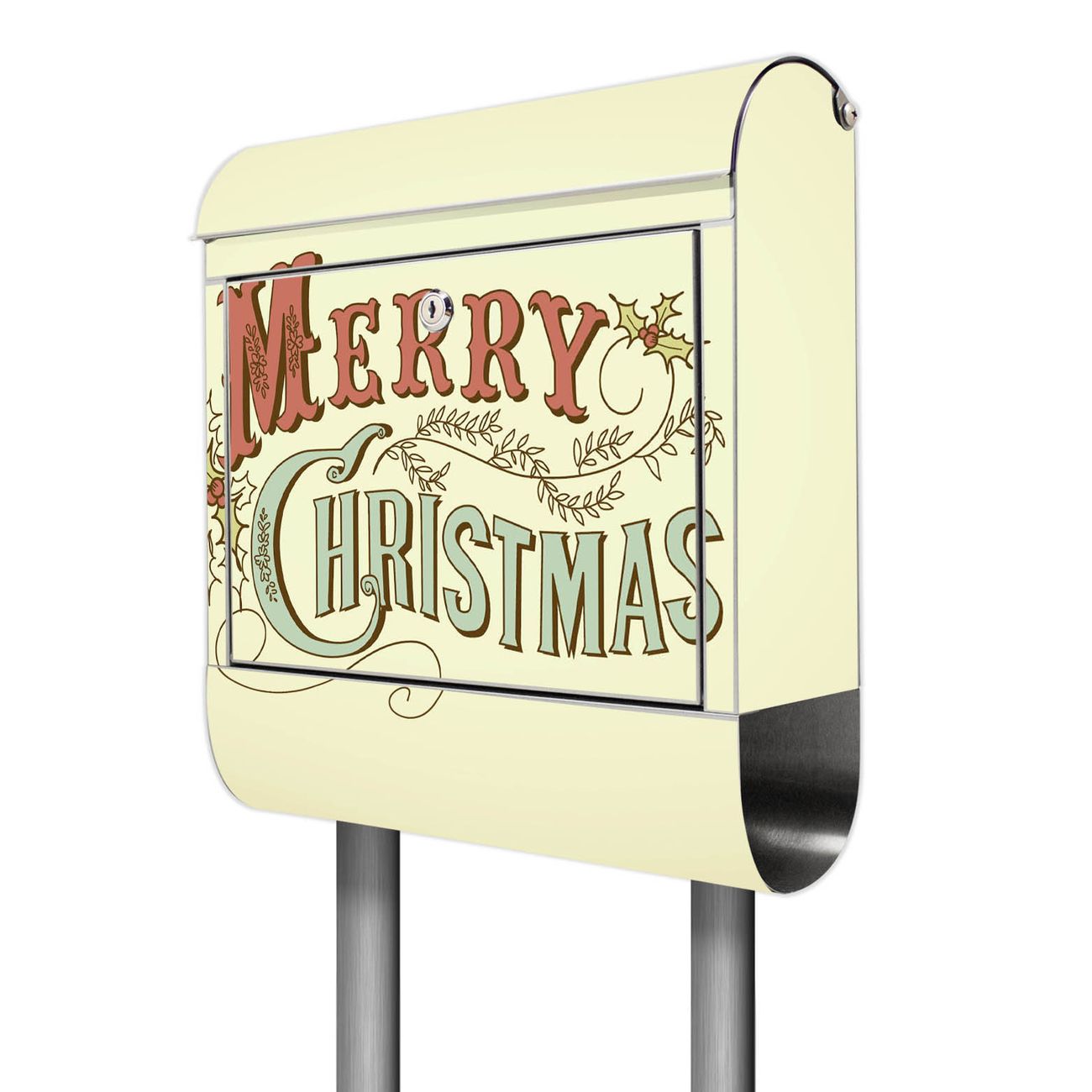 Der Motivstandbriefkasten hat ein sehr ansprechendes und ausgefallenes Design, damit entlocken Sie Ihren Nachbarn und dem Postboten ein Lächeln. Heben Sie Sich ab von der tristen grauen Masse, ohne auf Funktionalität zu verzichten. Der Briefkasten besteht aus hochwertigem 18/0 Edelstahl und die Wetter- und UV-resistenten Folie mit Frohes Fest Motiv ist zusätzlich mit einem Schutzlaminat überzogen. Der Standbriefkasten wird mit Montagematerial und zwei Schlüsseln geliefert.
