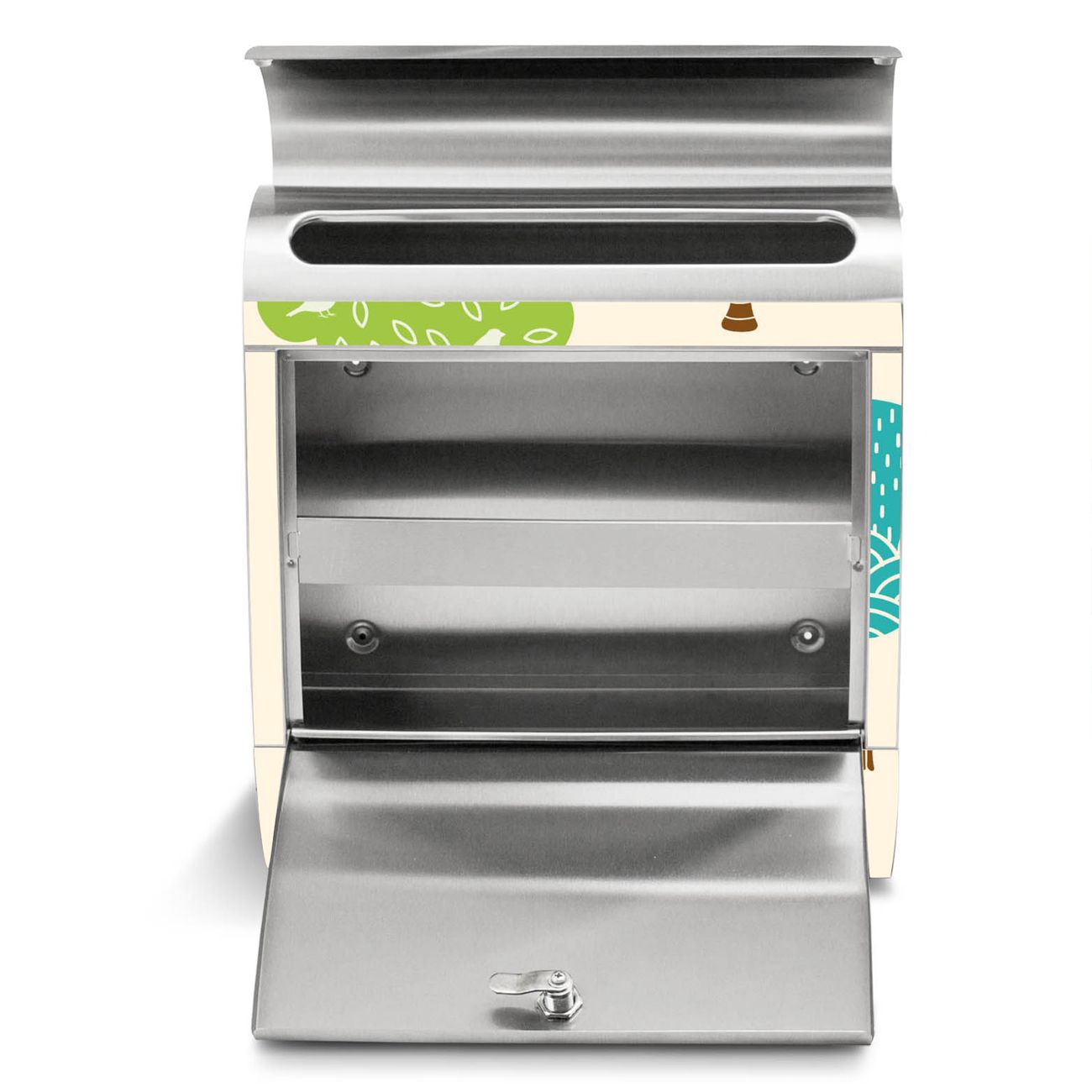 Der Motivstandbriefkasten hat ein sehr ansprechendes und ausgefallenes Design, damit entlocken Sie Ihren Nachbarn und dem Postboten ein Lächeln. Heben Sie Sich ab von der tristen grauen Masse, ohne auf Funktionalität zu verzichten. Der Briefkasten besteht aus hochwertigem 18/0 Edelstahl und die Wetter- und UV-resistenten Folie mit Fuchs Bär Wald Motiv ist zusätzlich mit einem Schutzlaminat überzogen. Der Standbriefkasten wird mit Montagematerial und zwei Schlüsseln geliefert.