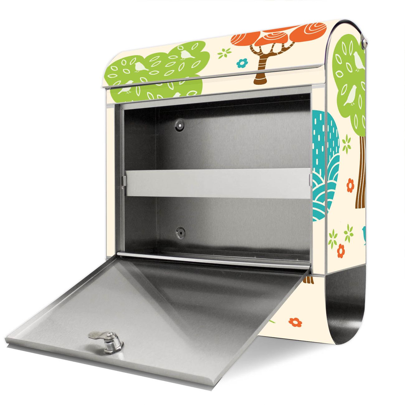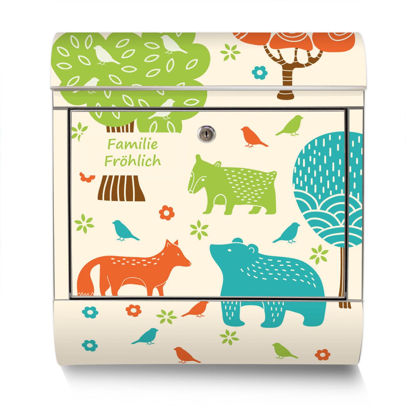 Der Motivstandbriefkasten hat ein sehr ansprechendes und ausgefallenes Design, damit entlocken Sie Ihren Nachbarn und dem Postboten ein Lächeln. Heben Sie Sich ab von der tristen grauen Masse, ohne auf Funktionalität zu verzichten. Der Briefkasten besteht aus hochwertigem 18/0 Edelstahl und die Wetter- und UV-resistenten Folie mit Fuchs Bär Wald Motiv ist zusätzlich mit einem Schutzlaminat überzogen. Der Standbriefkasten wird mit Montagematerial und zwei Schlüsseln geliefert.