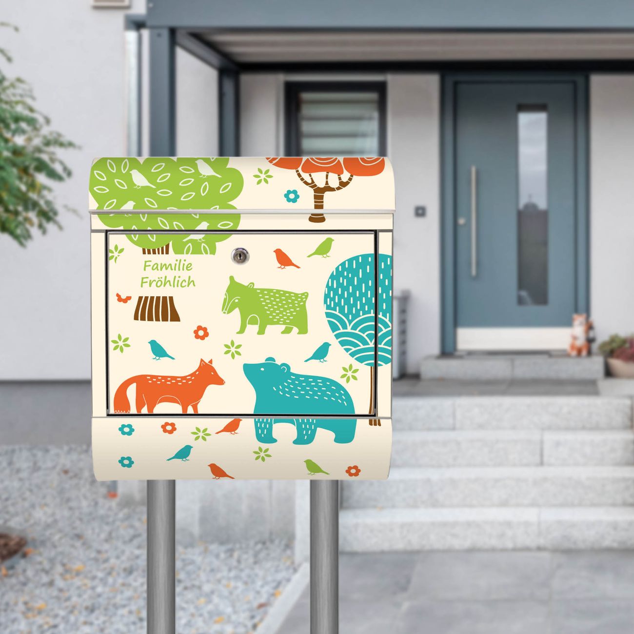 Standbriefkasten Edelstahl Fuchs Bär Wald