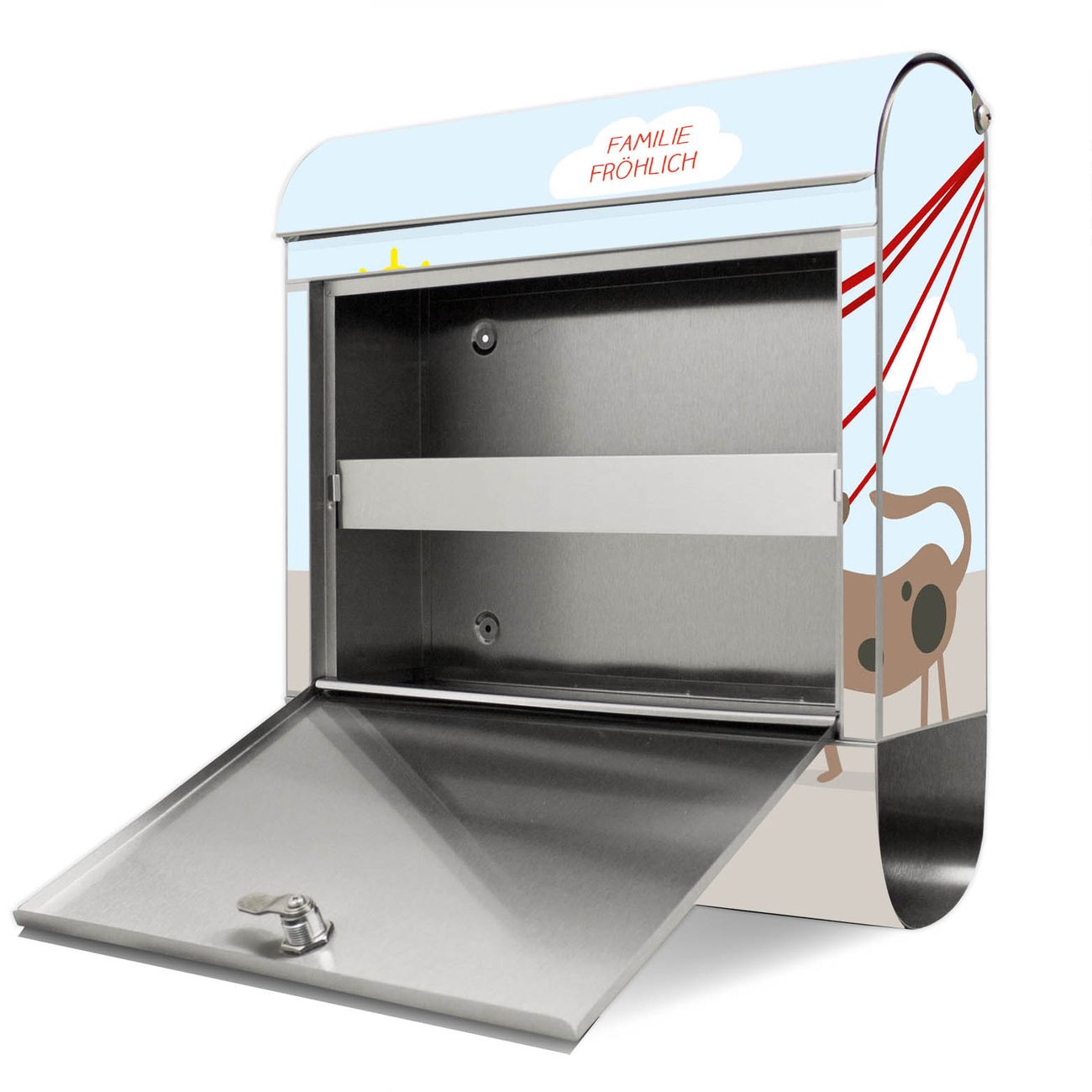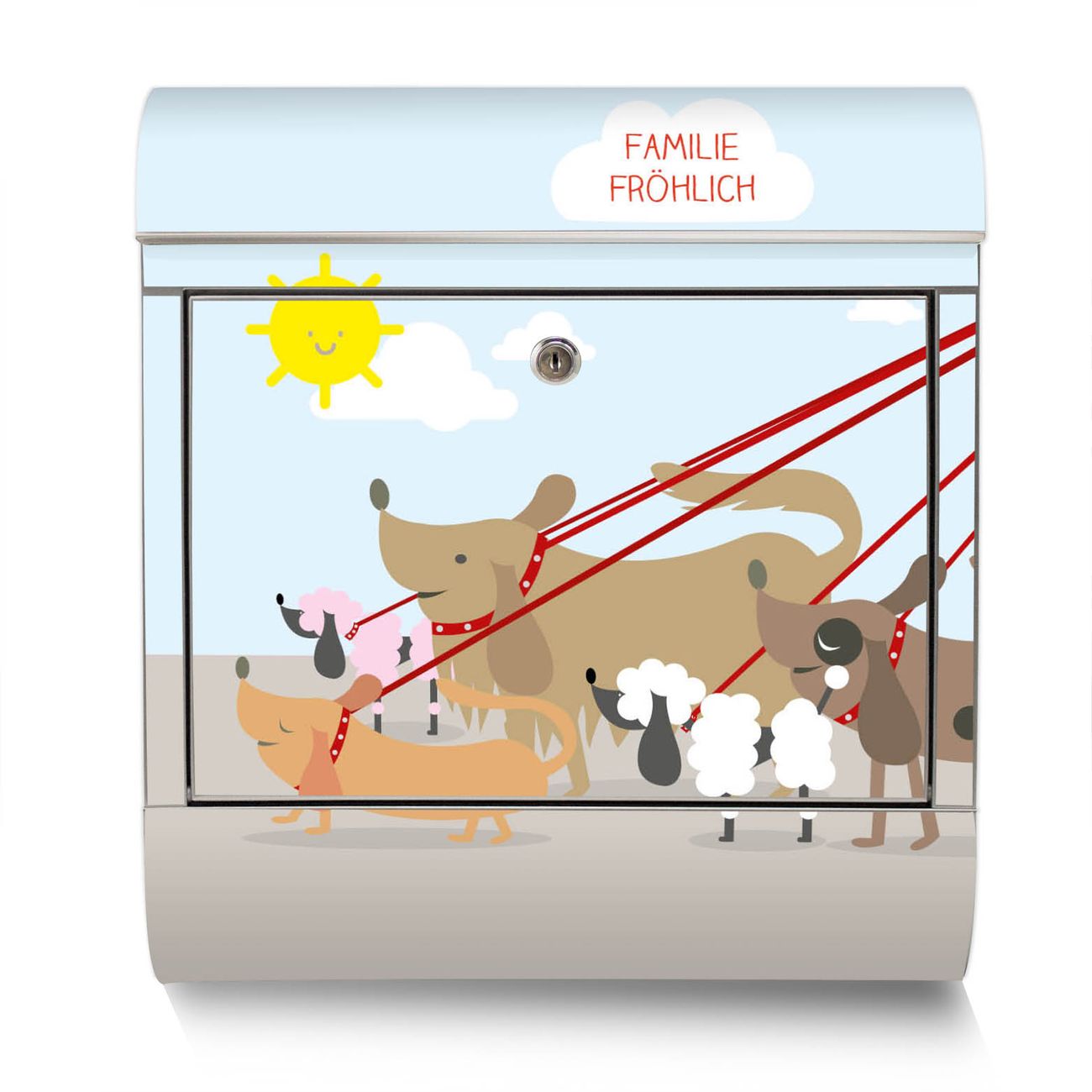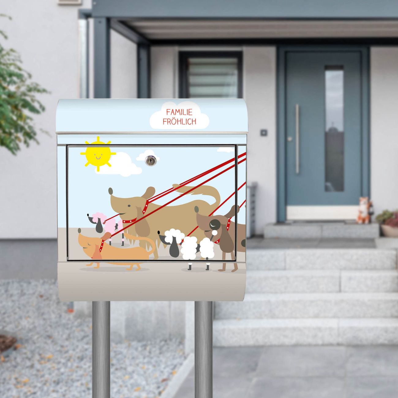 Der Motivstandbriefkasten hat ein sehr ansprechendes und ausgefallenes Design, damit entlocken Sie Ihren Nachbarn und dem Postboten ein Lächeln. Heben Sie Sich ab von der tristen grauen Masse, ohne auf Funktionalität zu verzichten. Der Briefkasten besteht aus hochwertigem 18/0 Edelstahl und die Wetter- und UV-resistenten Folie mit Gassi Gehen Motiv ist zusätzlich mit einem Schutzlaminat überzogen. Der Standbriefkasten wird mit Montagematerial und zwei Schlüsseln geliefert.