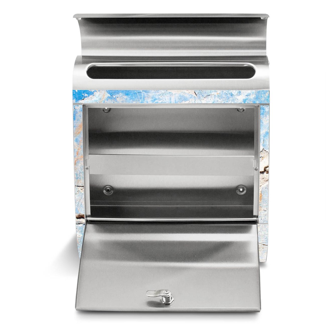 Der banjado Edelstahl Standbriefkasten mit Motiv Gebrochene Wand und eigenem Wunschtext bietet Ihnen mit seinem Fassungsvermögen genügend Platz auch für große A4 Sendungen. Das integrierte Zeitungsfach eignet sich hervorragend, um unkompliziert die Tageszeitung zu fassen.