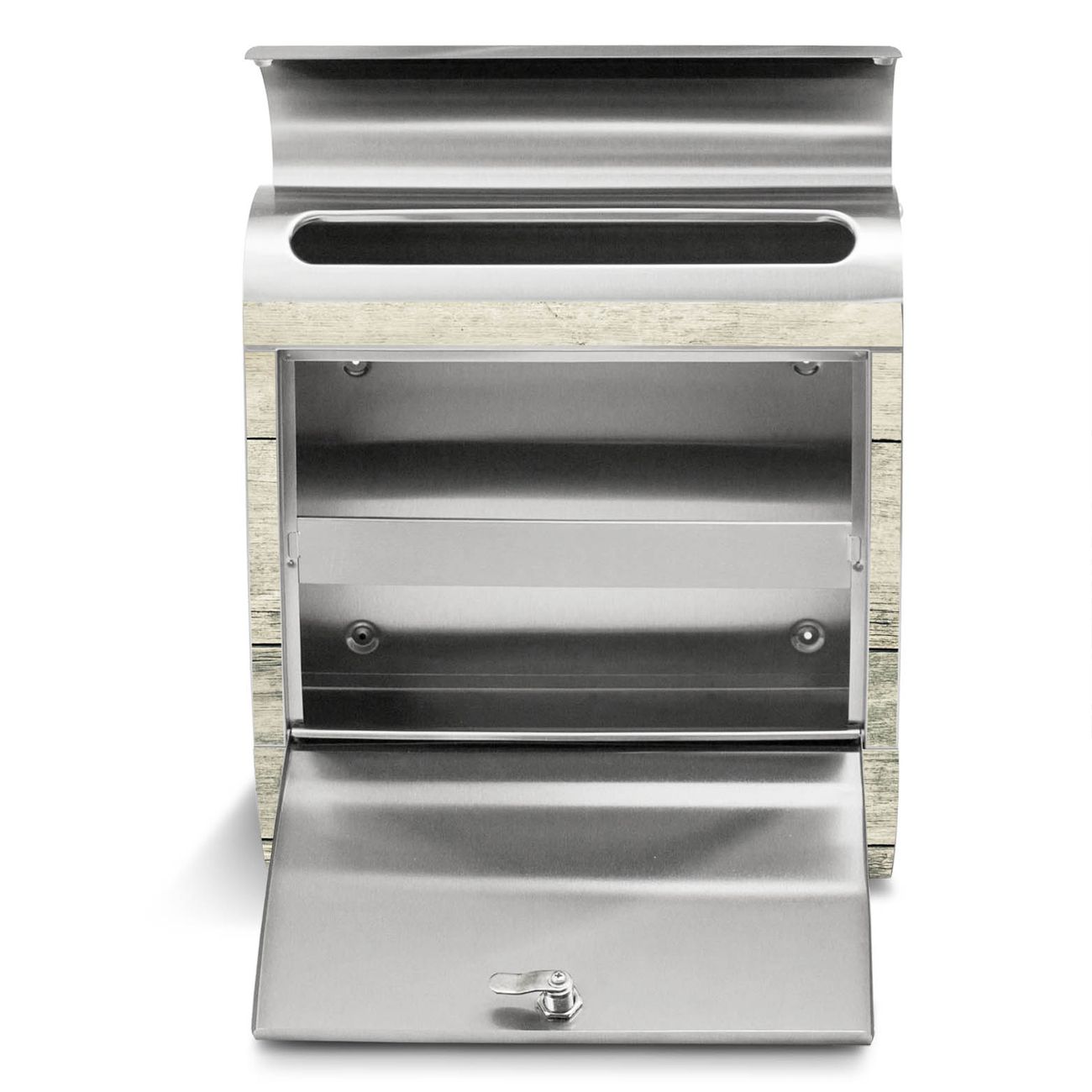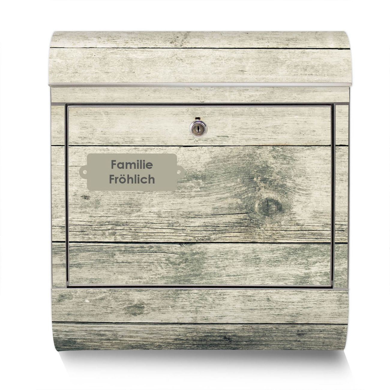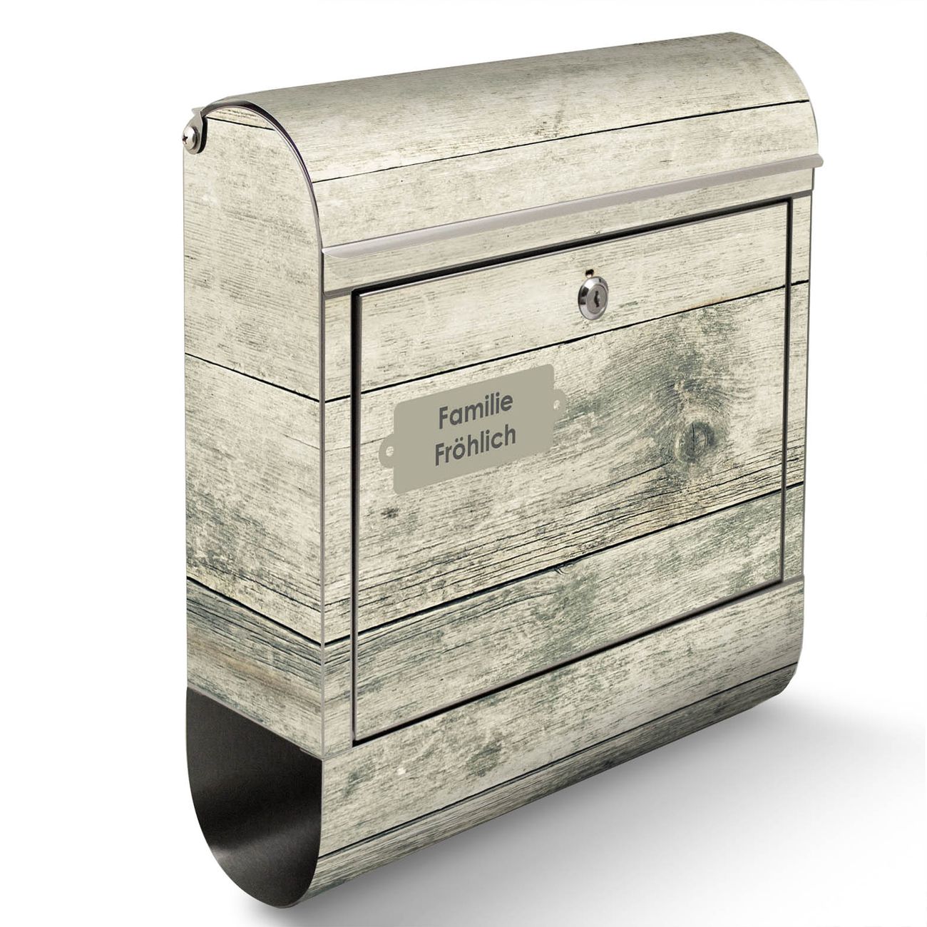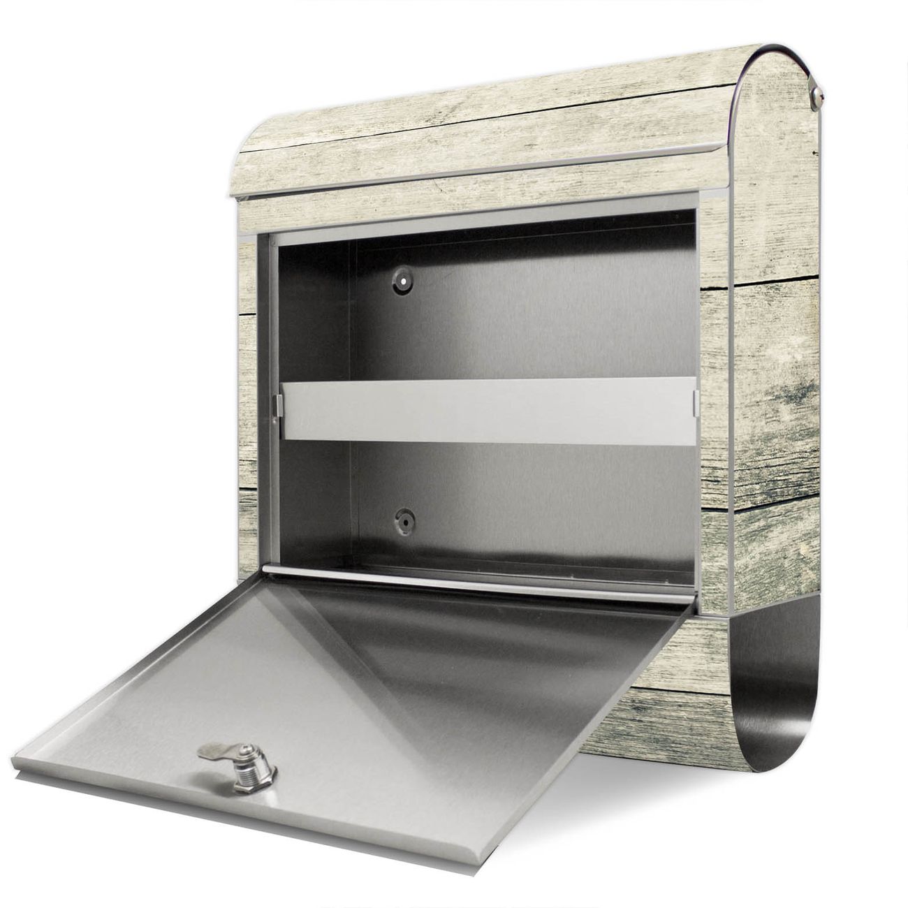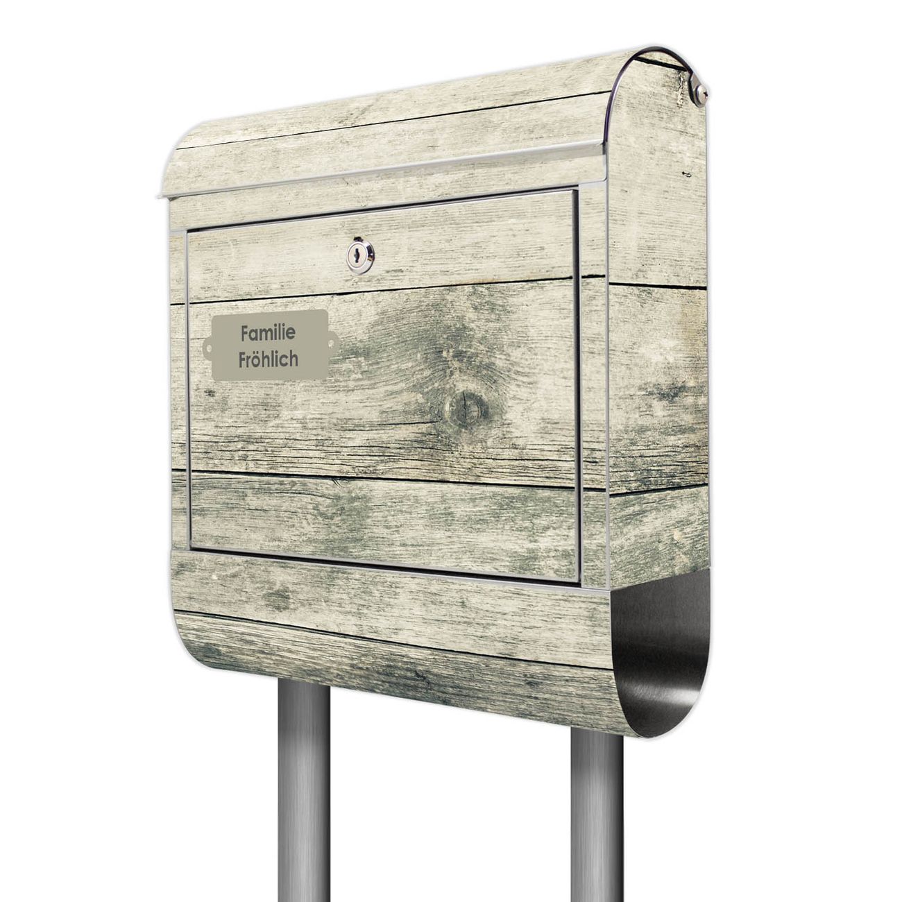 Der banjado Edelstahl Standbriefkasten mit Motiv Graue Planken und eigenem Wunschtext bietet Ihnen mit seinem Fassungsvermögen genügend Platz auch für große A4 Sendungen. Das integrierte Zeitungsfach eignet sich hervorragend, um unkompliziert die Tageszeitung zu fassen.