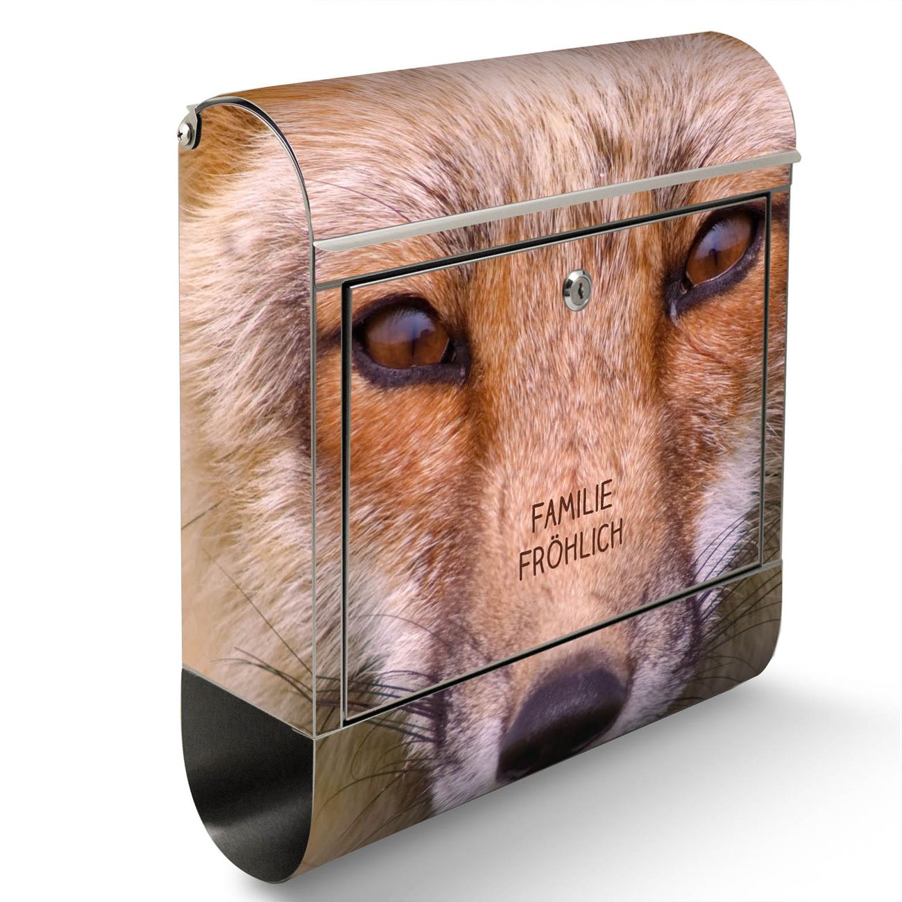 Der banjado Edelstahl Standbriefkasten mit Motiv Henryk und eigenem Wunschtext bietet Ihnen mit seinem Fassungsvermögen genügend Platz auch für große A4 Sendungen. Das integrierte Zeitungsfach eignet sich hervorragend, um unkompliziert die Tageszeitung zu fassen.