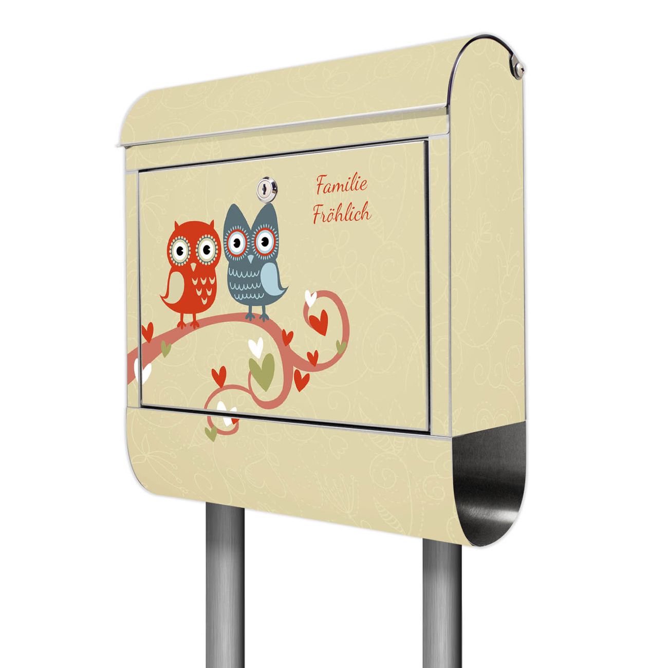 Der Motivstandbriefkasten hat ein sehr ansprechendes und ausgefallenes Design, damit entlocken Sie Ihren Nachbarn und dem Postboten ein Lächeln. Heben Sie Sich ab von der tristen grauen Masse, ohne auf Funktionalität zu verzichten. Der Briefkasten besteht aus hochwertigem 18/0 Edelstahl und die Wetter- und UV-resistenten Folie mit I Love You Motiv ist zusätzlich mit einem Schutzlaminat überzogen. Der Standbriefkasten wird mit Montagematerial und zwei Schlüsseln geliefert.