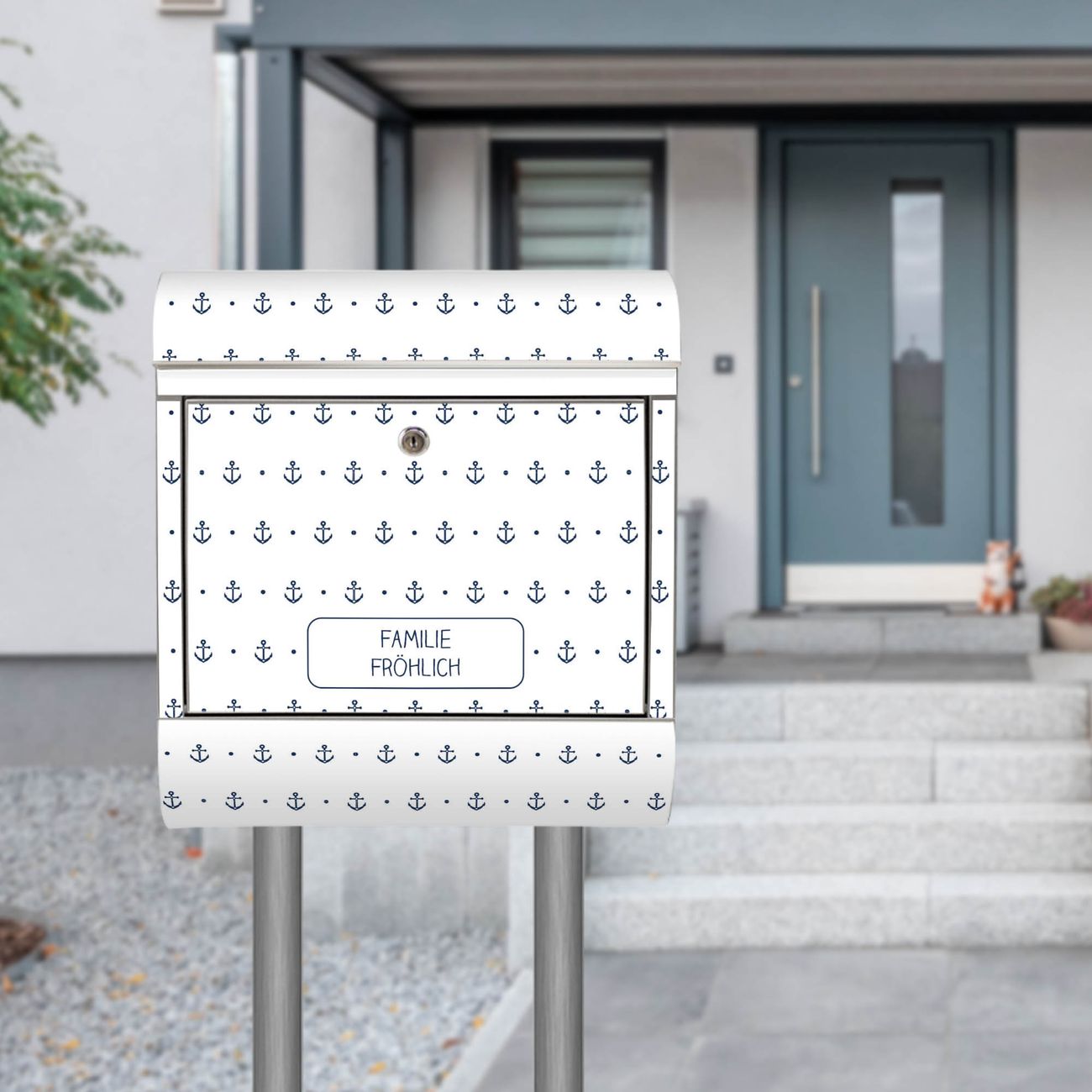 Der Motivstandbriefkasten hat ein sehr ansprechendes und ausgefallenes Design, damit entlocken Sie Ihren Nachbarn und dem Postboten ein Lächeln. Heben Sie Sich ab von der tristen grauen Masse, ohne auf Funktionalität zu verzichten. Der Briefkasten besteht aus hochwertigem 18/0 Edelstahl und die Wetter- und UV-resistenten Folie mit Kleine Anker Motiv ist zusätzlich mit einem Schutzlaminat überzogen. Der Standbriefkasten wird mit Montagematerial und zwei Schlüsseln geliefert.