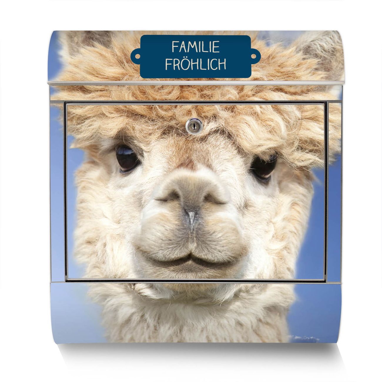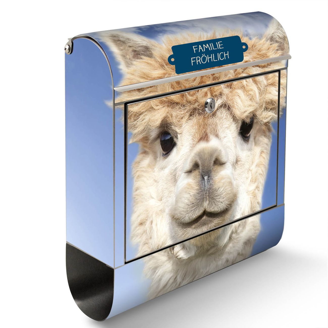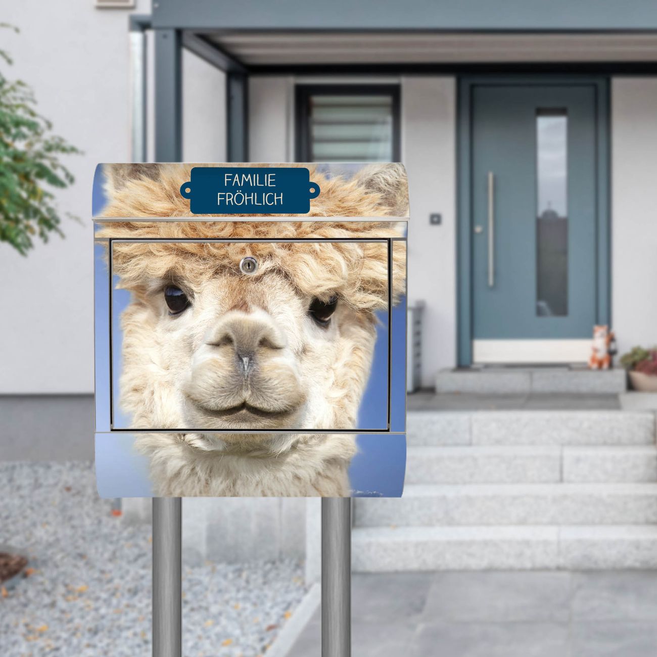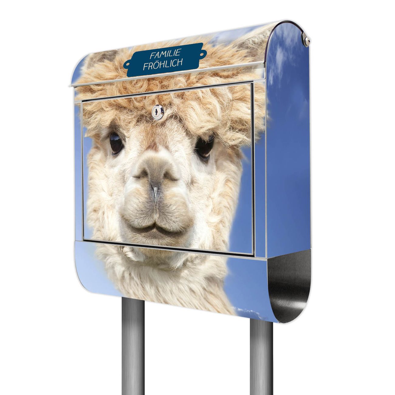 Der banjado Edelstahl Standbriefkasten mit Motiv Lama und eigenem Wunschtext bietet Ihnen mit seinem Fassungsvermögen genügend Platz auch für große A4 Sendungen. Das integrierte Zeitungsfach eignet sich hervorragend, um unkompliziert die Tageszeitung zu fassen.