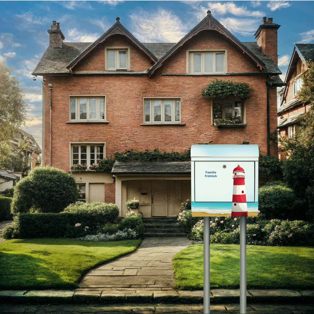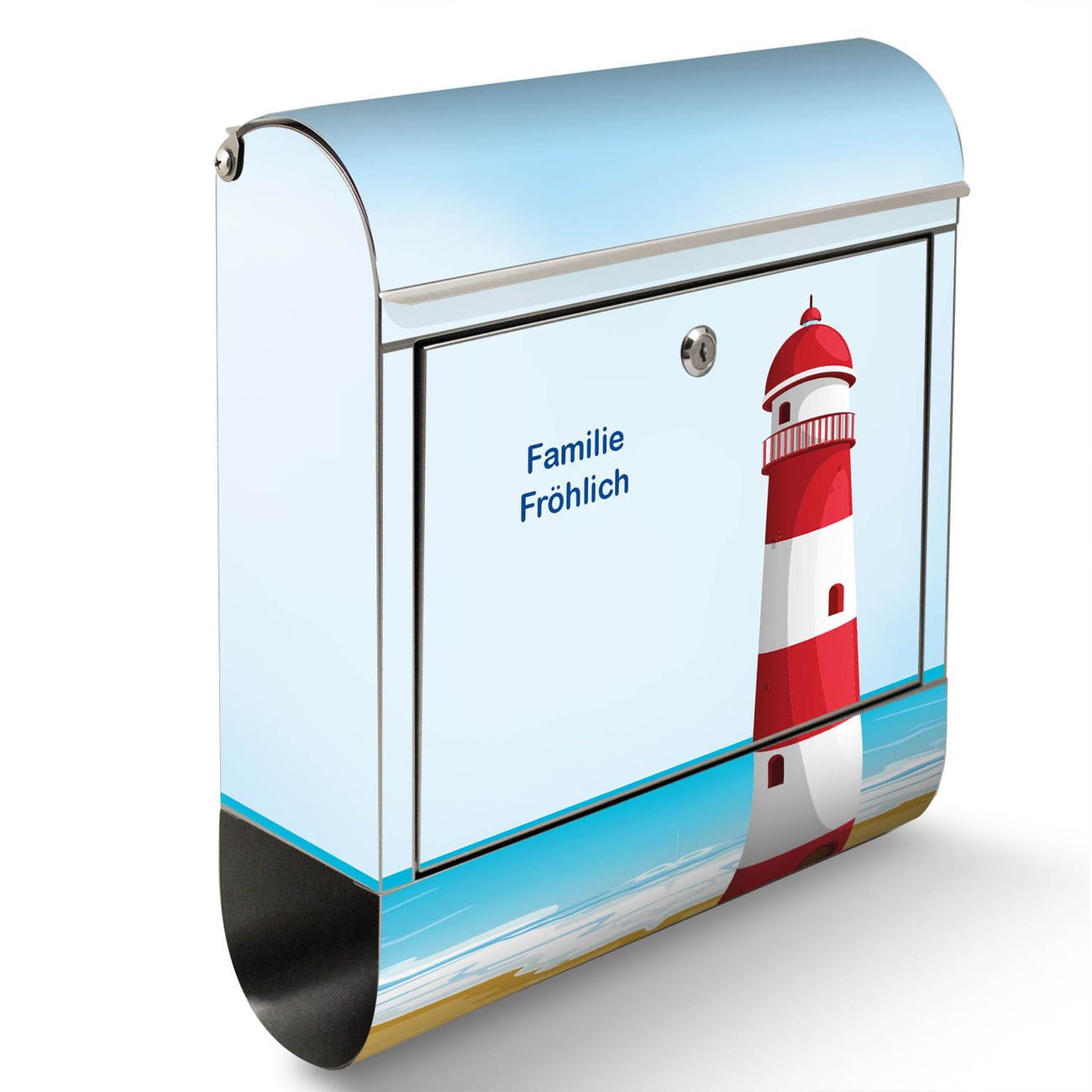 Der Motivstandbriefkasten hat ein sehr ansprechendes und ausgefallenes Design, damit entlocken Sie Ihren Nachbarn und dem Postboten ein Lächeln. Heben Sie Sich ab von der tristen grauen Masse, ohne auf Funktionalität zu verzichten. Der Briefkasten besteht aus hochwertigem 18/0 Edelstahl und die Wetter- und UV-resistenten Folie mit Leuchtturm Illustration Motiv ist zusätzlich mit einem Schutzlaminat überzogen. Der Standbriefkasten wird mit Montagematerial und zwei Schlüsseln geliefert.