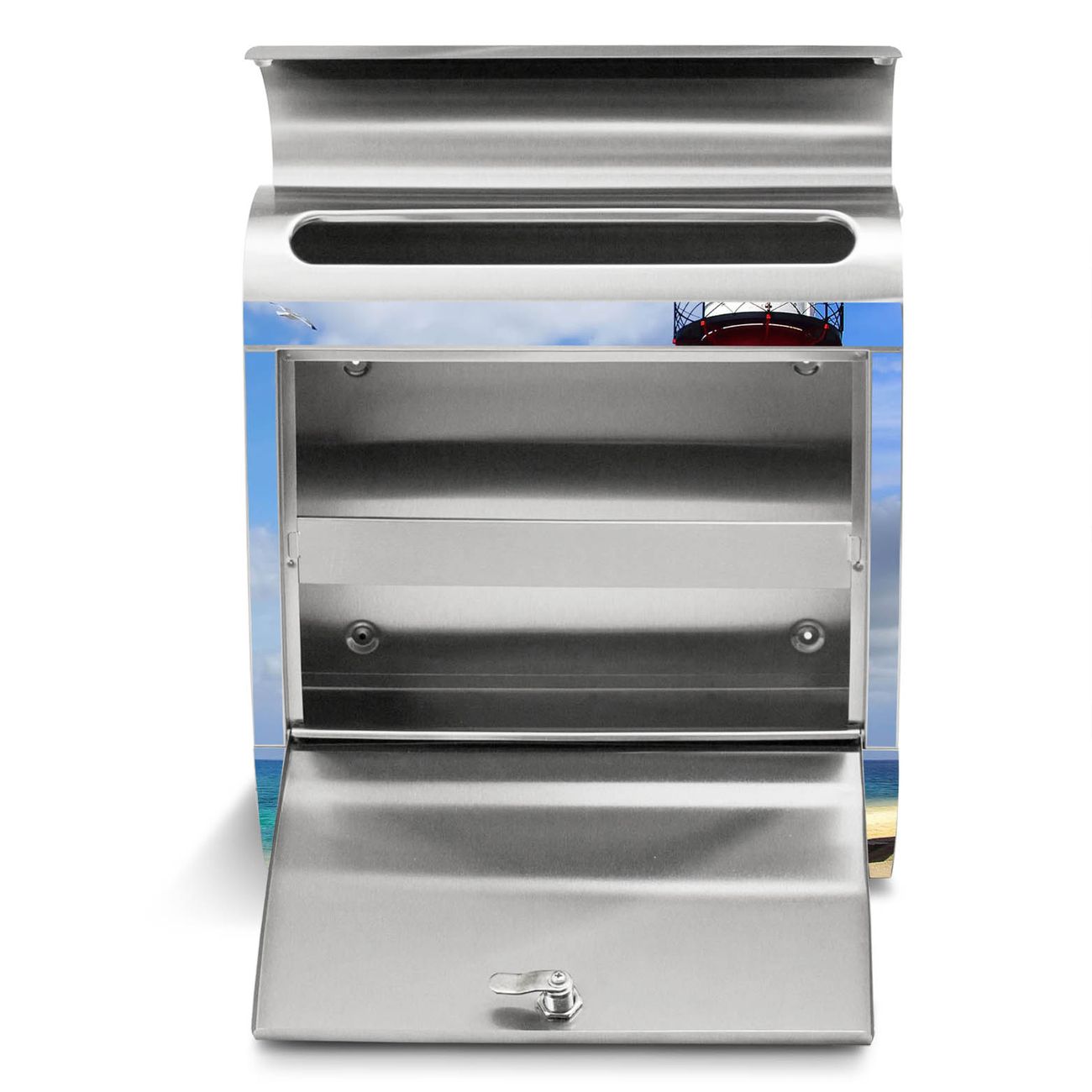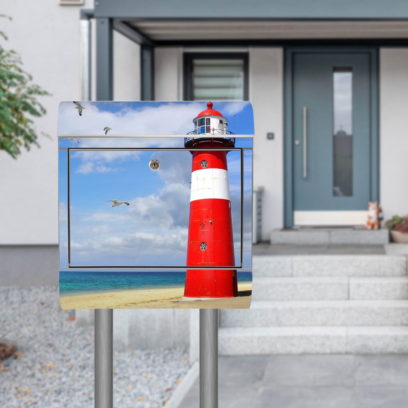 Der Motivstandbriefkasten hat ein sehr ansprechendes und ausgefallenes Design, damit entlocken Sie Ihren Nachbarn und dem Postboten ein Lächeln. Heben Sie Sich ab von der tristen grauen Masse, ohne auf Funktionalität zu verzichten. Der Briefkasten besteht aus hochwertigem 18/0 Edelstahl und die Wetter- und UV-resistenten Folie mit Leuchtturm Westkapelle Motiv ist zusätzlich mit einem Schutzlaminat überzogen. Der Standbriefkasten wird mit Montagematerial und zwei Schlüsseln geliefert.