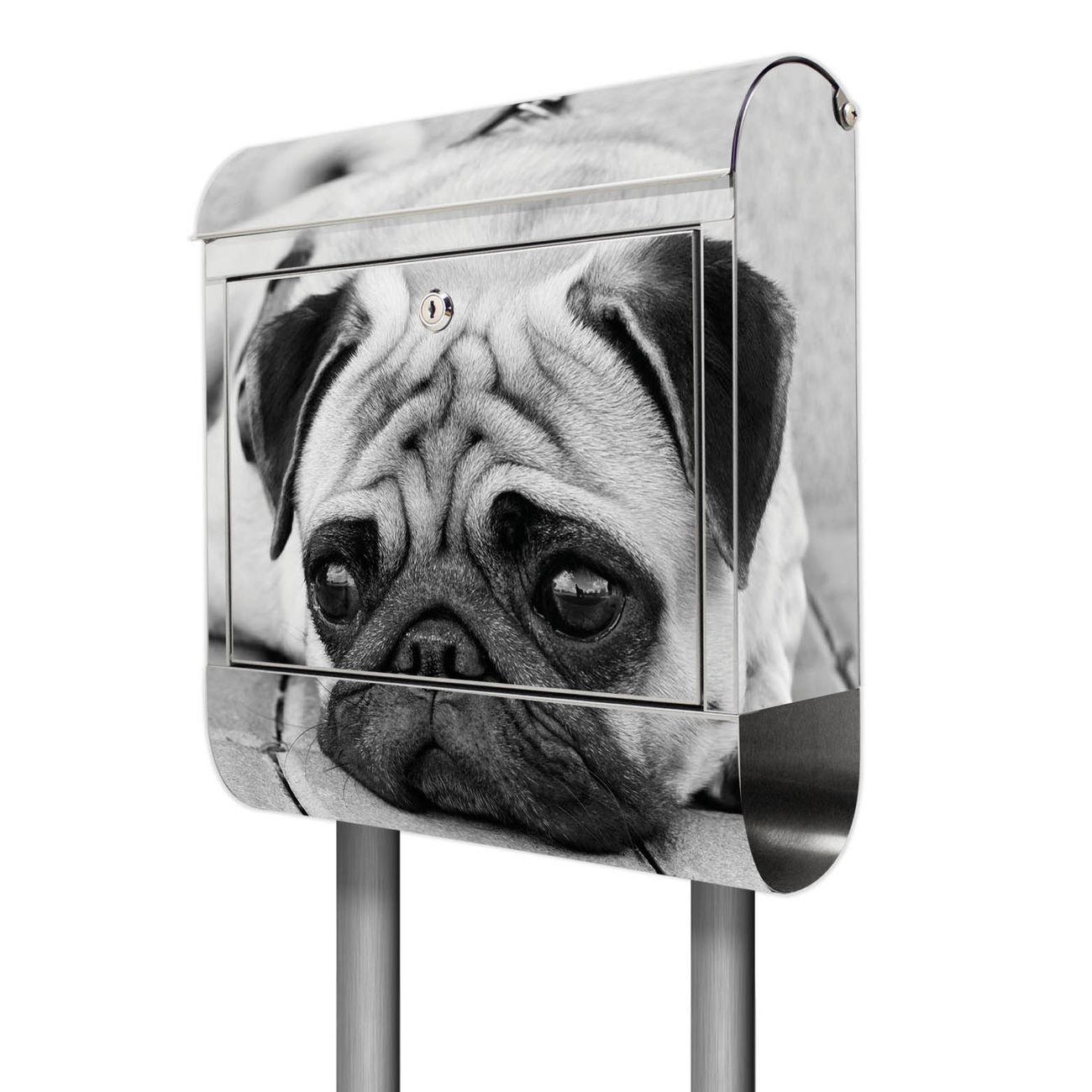 Der Motivstandbriefkasten hat ein sehr ansprechendes und ausgefallenes Design, damit entlocken Sie Ihren Nachbarn und dem Postboten ein Lächeln. Heben Sie Sich ab von der tristen grauen Masse, ohne auf Funktionalität zu verzichten. Der Briefkasten besteht aus hochwertigem 18/0 Edelstahl und die Wetter- und UV-resistenten Folie mit Lotty Motiv ist zusätzlich mit einem Schutzlaminat überzogen. Der Standbriefkasten wird mit Montagematerial und zwei Schlüsseln geliefert.