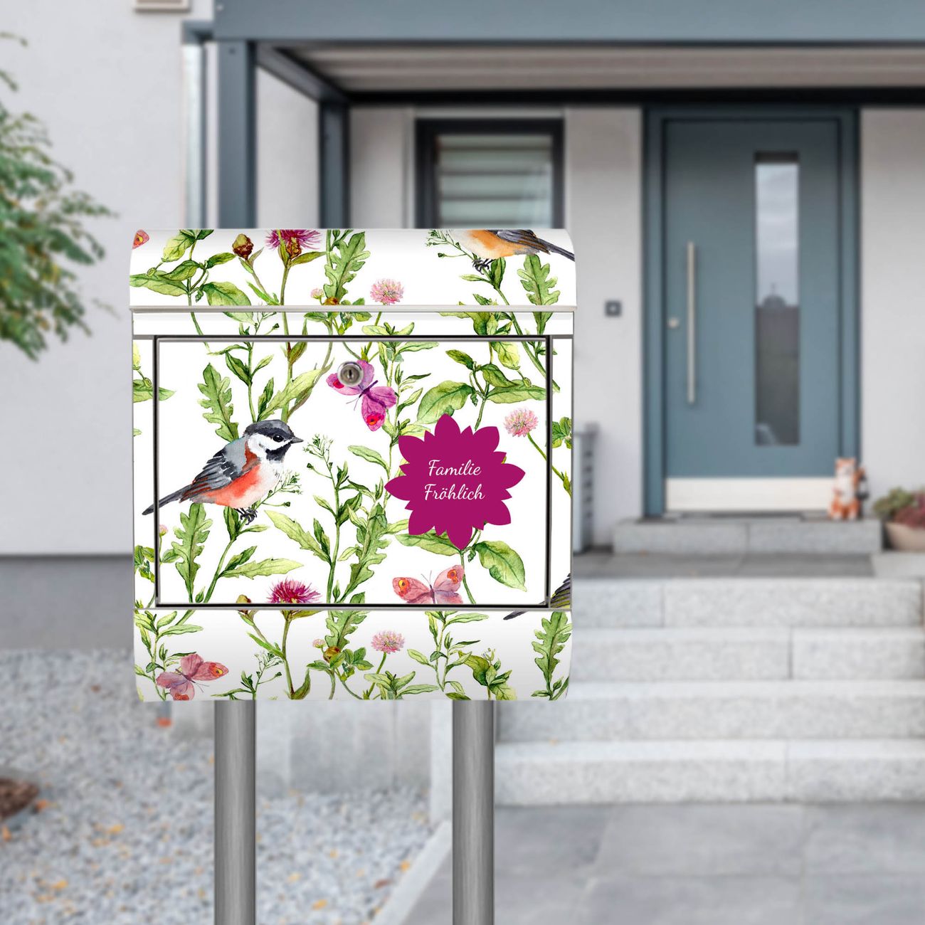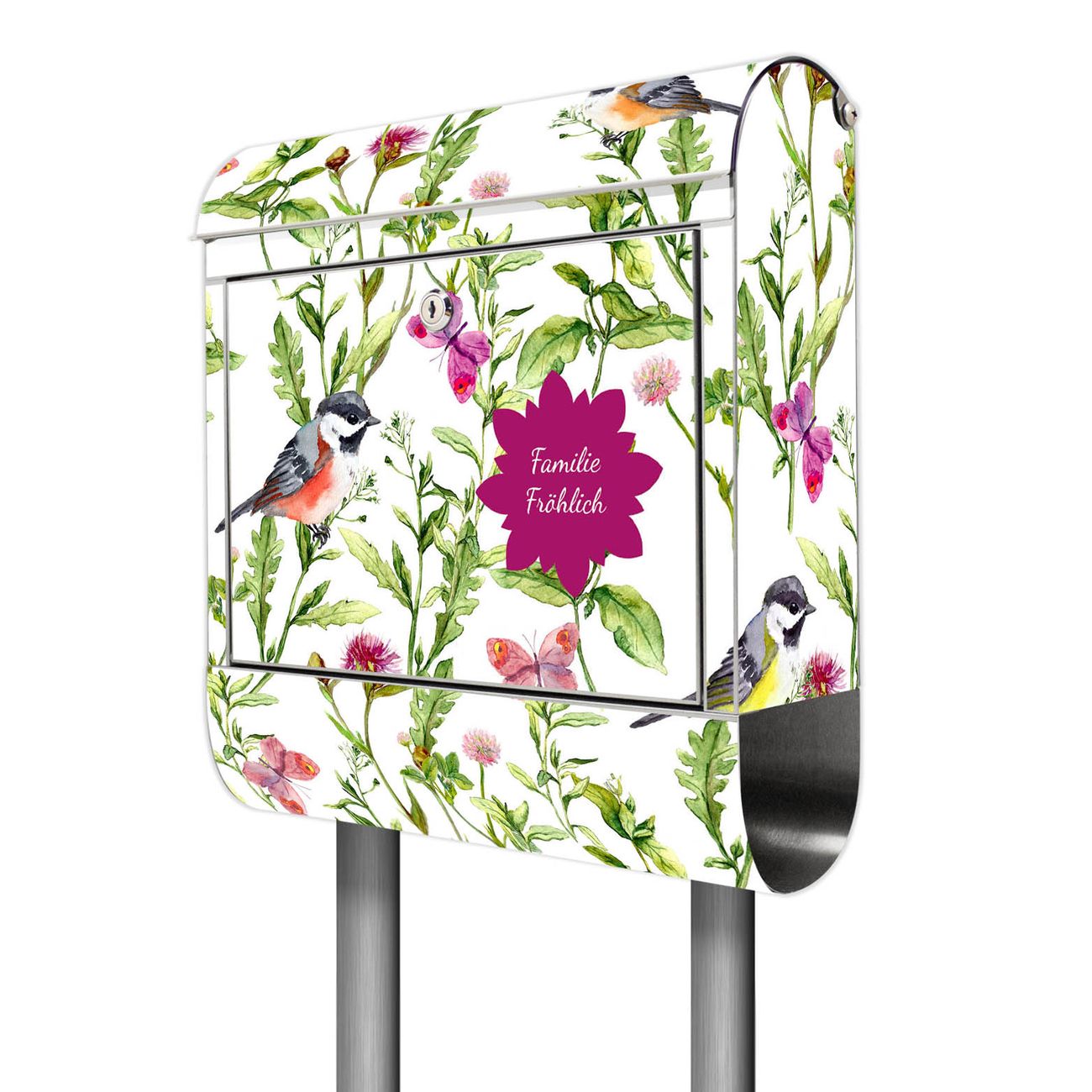 Der Motivstandbriefkasten hat ein sehr ansprechendes und ausgefallenes Design, damit entlocken Sie Ihren Nachbarn und dem Postboten ein Lächeln. Heben Sie Sich ab von der tristen grauen Masse, ohne auf Funktionalität zu verzichten. Der Briefkasten besteht aus hochwertigem 18/0 Edelstahl und die Wetter- und UV-resistenten Folie mit Meisen im Klee Motiv ist zusätzlich mit einem Schutzlaminat überzogen. Der Standbriefkasten wird mit Montagematerial und zwei Schlüsseln geliefert.