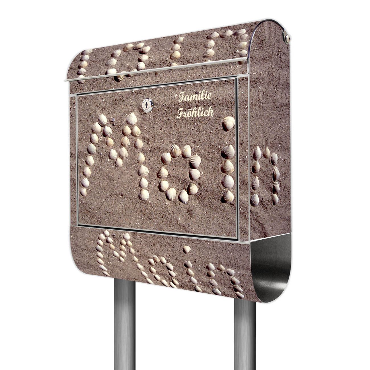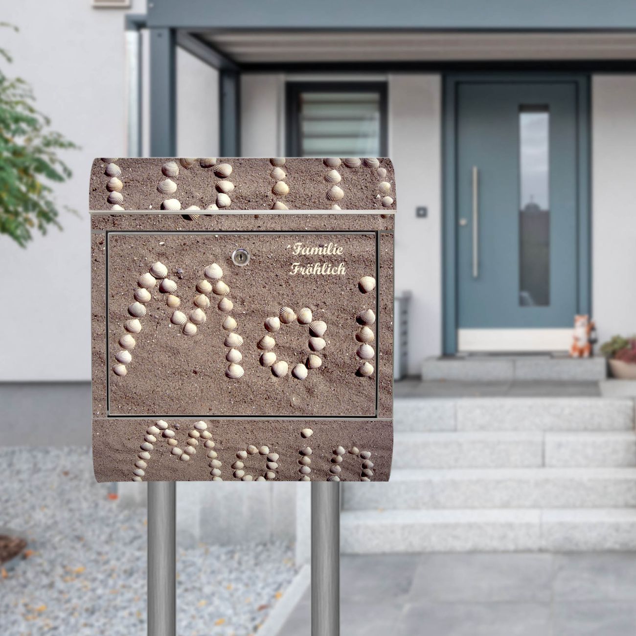 Der banjado Edelstahl Standbriefkasten mit Motiv Moin Moin und eigenem Wunschtext bietet Ihnen mit seinem Fassungsvermögen genügend Platz auch für große A4 Sendungen. Das integrierte Zeitungsfach eignet sich hervorragend, um unkompliziert die Tageszeitung zu fassen.
