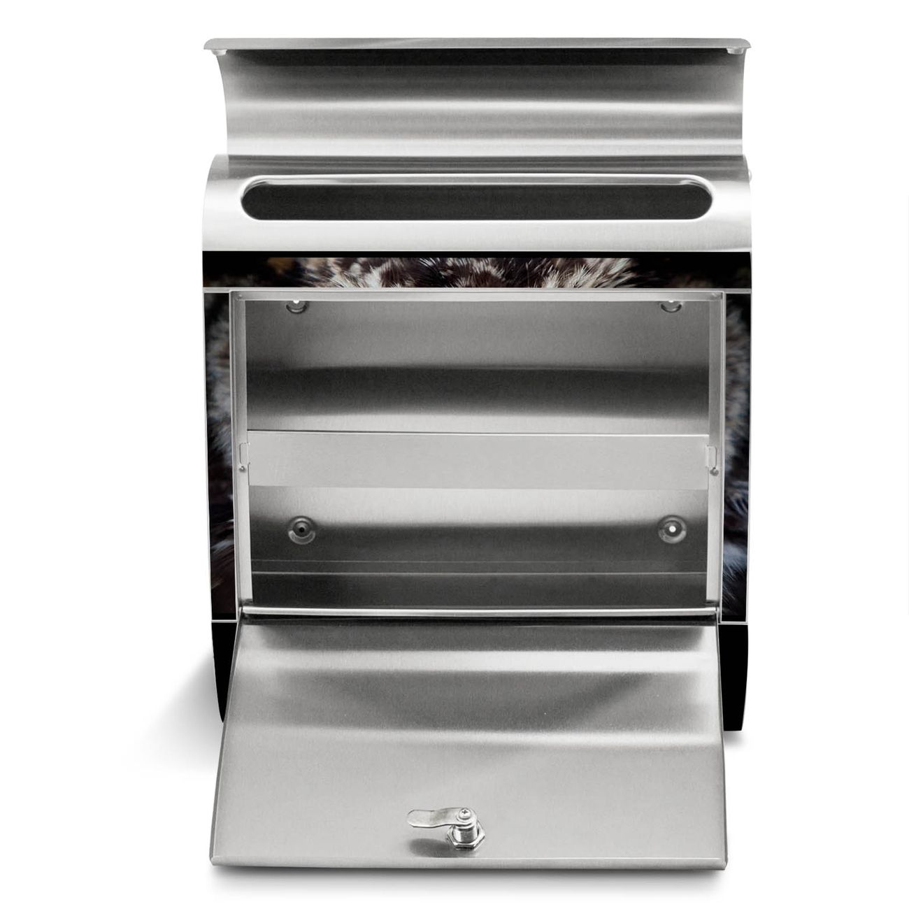 Der banjado Edelstahl Standbriefkasten mit Motiv Monique und eigenem Wunschtext bietet Ihnen mit seinem Fassungsvermögen genügend Platz auch für große A4 Sendungen. Das integrierte Zeitungsfach eignet sich hervorragend, um unkompliziert die Tageszeitung zu fassen.