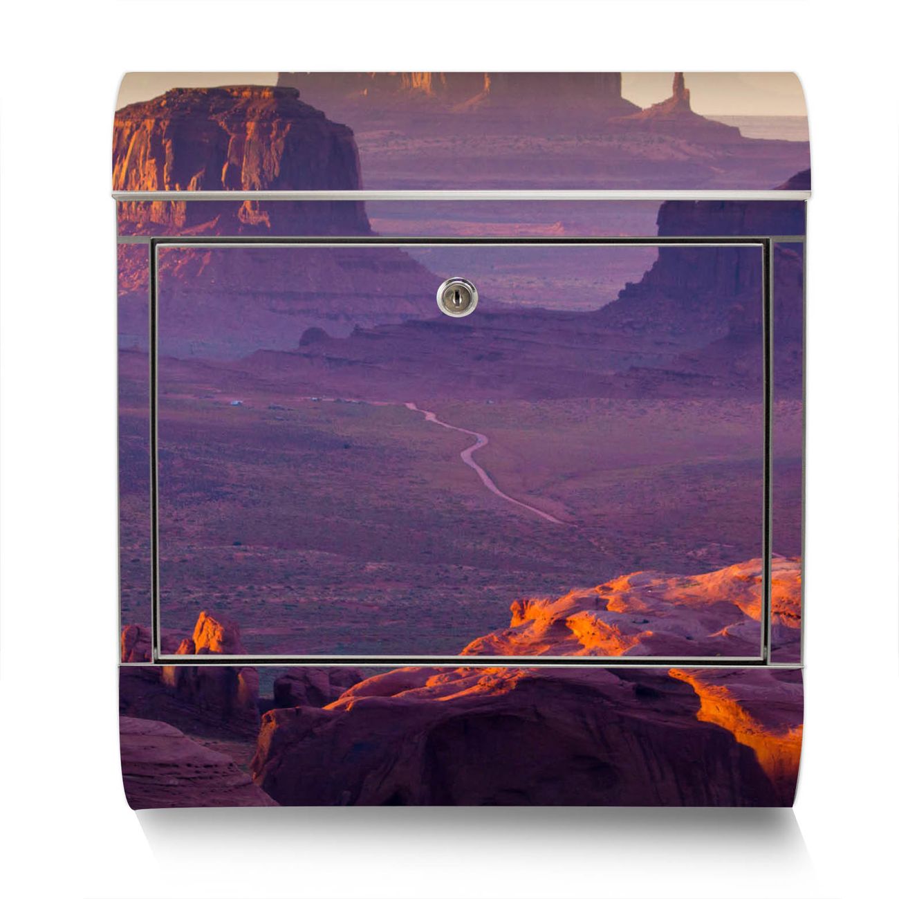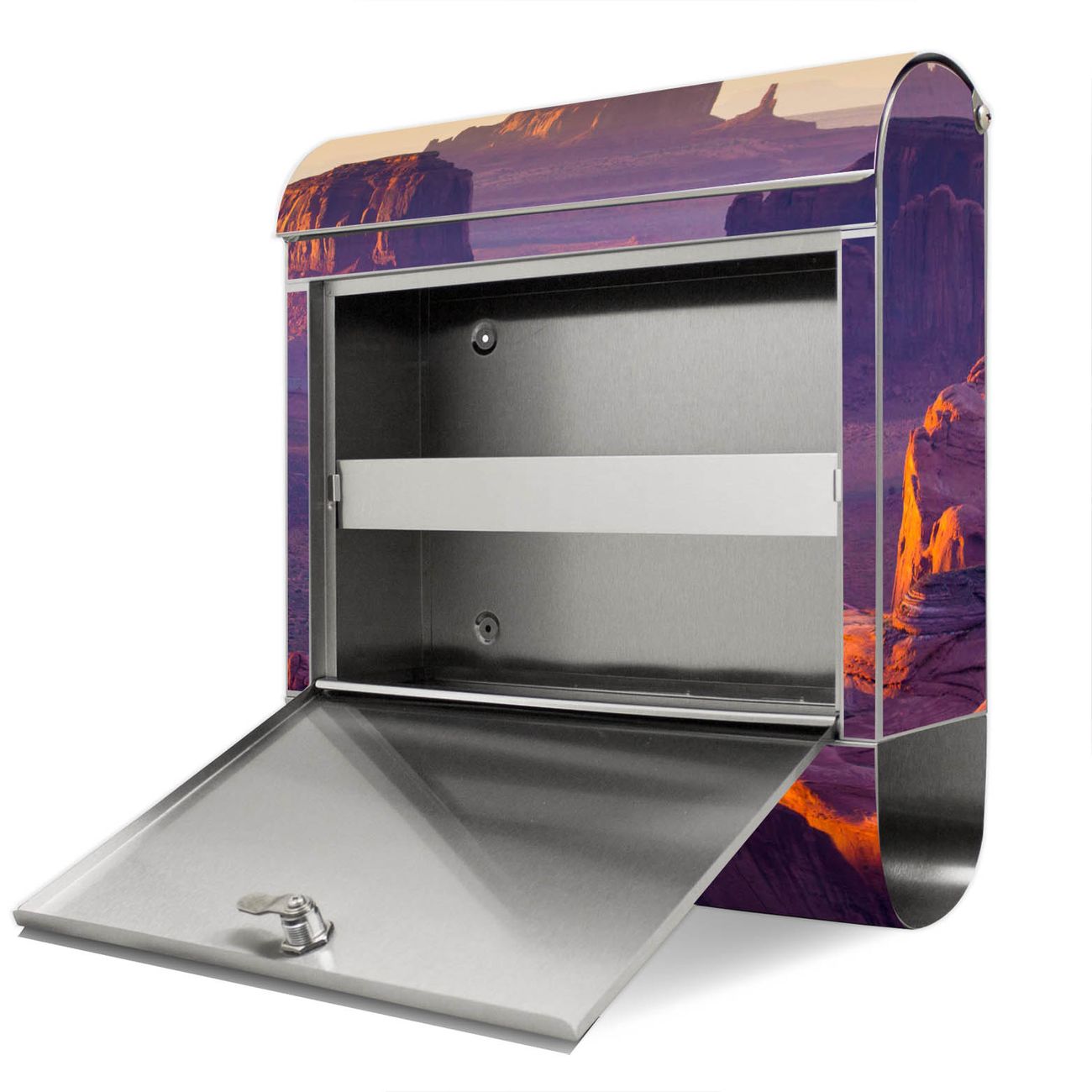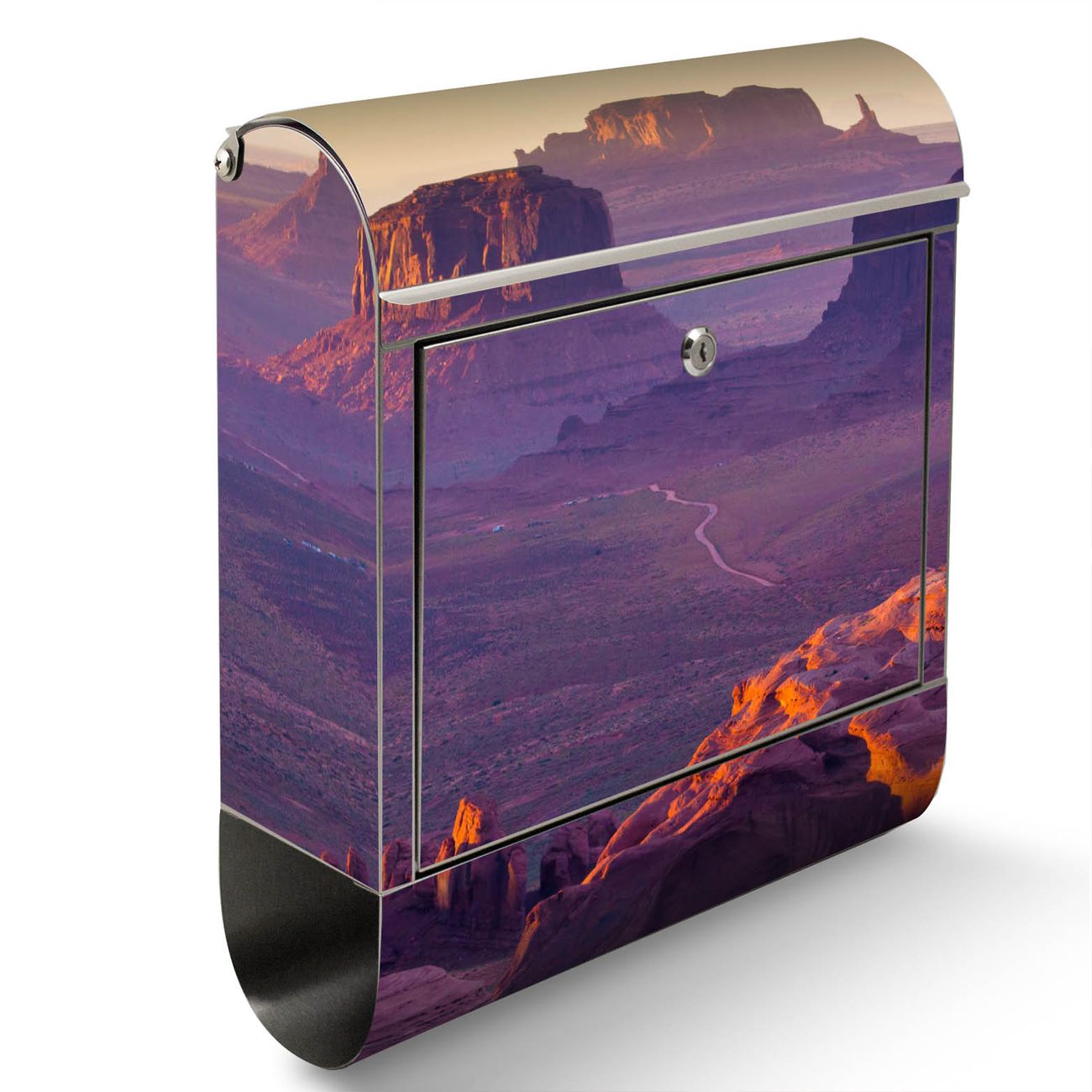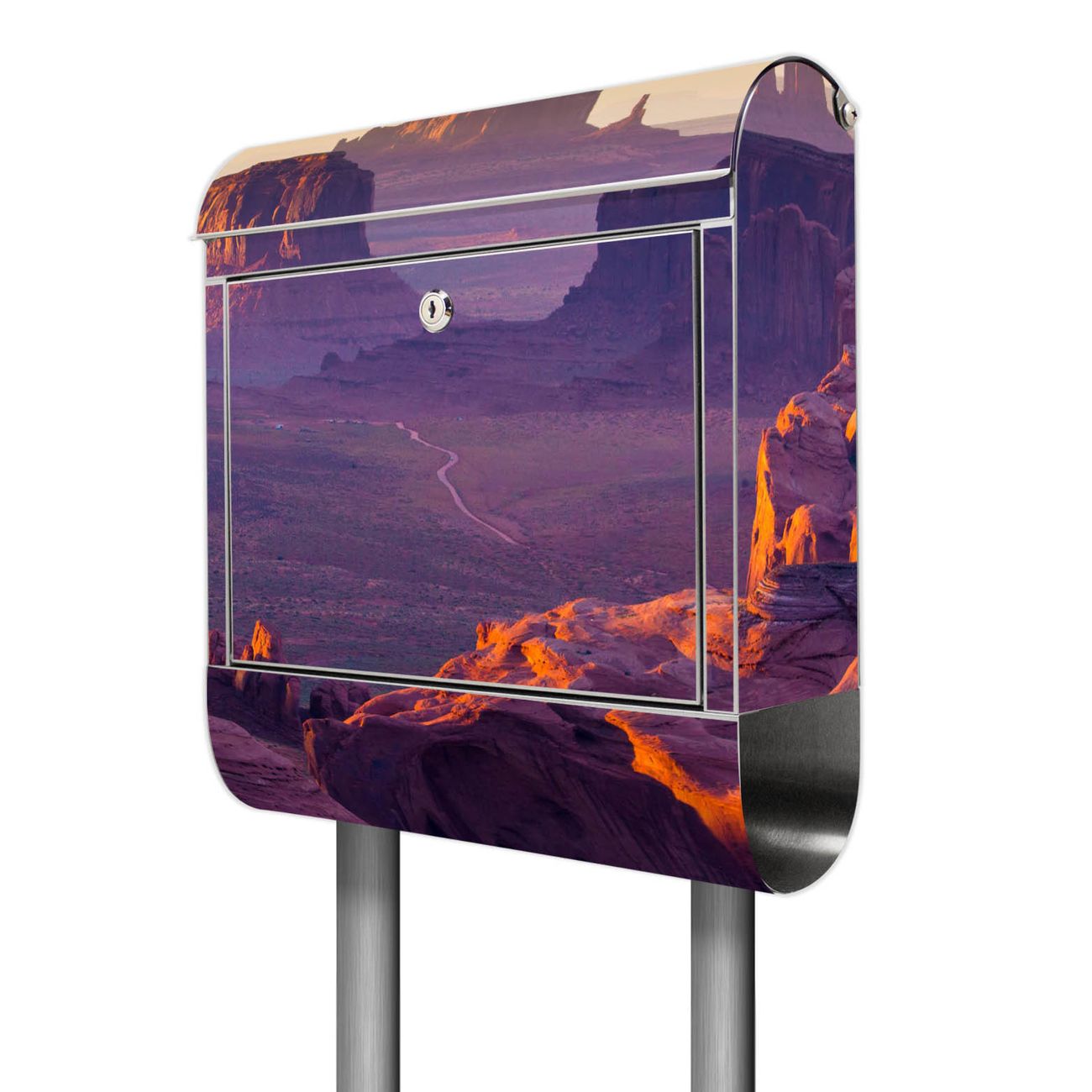 Der banjado Edelstahl Standbriefkasten mit Motiv Monument Valley bietet Ihnen mit seinem Fassungsvermögen genügend Platz auch für große A4 Sendungen. Das integrierte Zeitungsfach eignet sich hervorragend, um unkompliziert die Tageszeitung zu fassen.