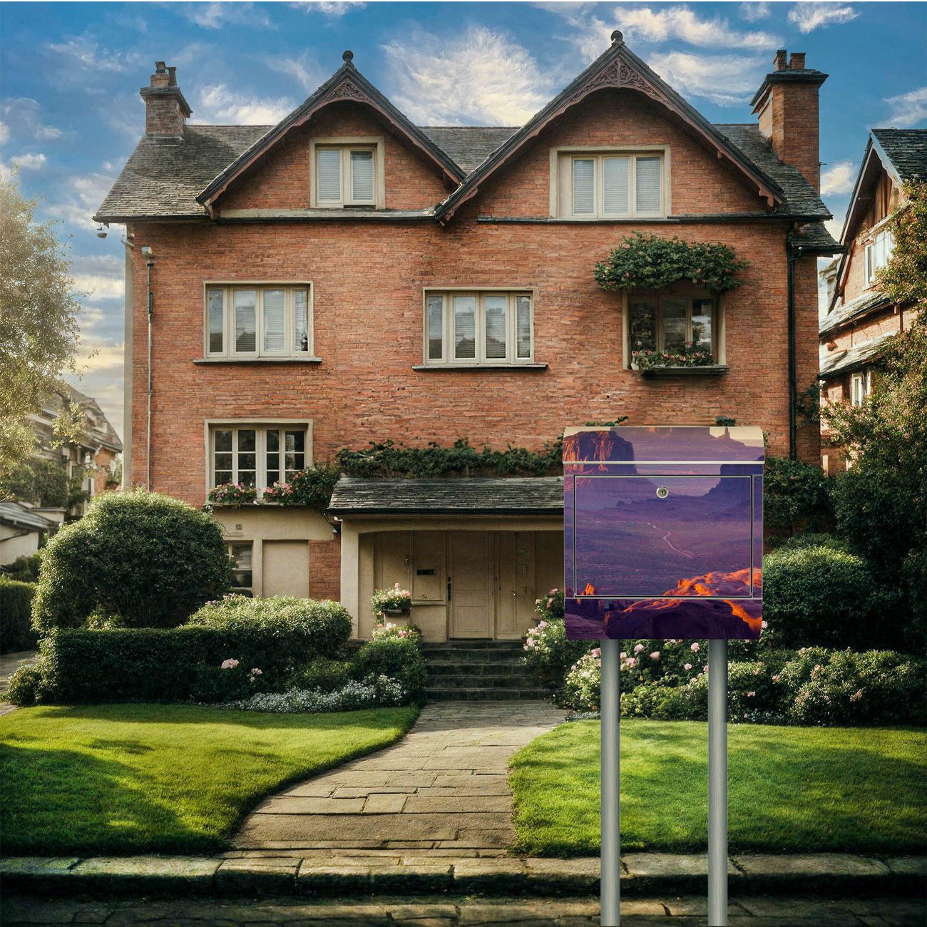 Der Motivstandbriefkasten hat ein sehr ansprechendes und ausgefallenes Design, damit entlocken Sie Ihren Nachbarn und dem Postboten ein Lächeln. Heben Sie Sich ab von der tristen grauen Masse, ohne auf Funktionalität zu verzichten. Der Briefkasten besteht aus hochwertigem 18/0 Edelstahl und die Wetter- und UV-resistenten Folie mit Monument Valley Motiv ist zusätzlich mit einem Schutzlaminat überzogen. Der Standbriefkasten wird mit Montagematerial und zwei Schlüsseln geliefert.