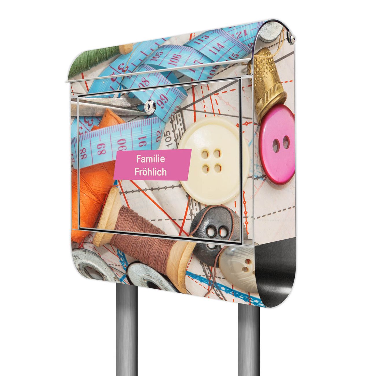 Der Motivstandbriefkasten hat ein sehr ansprechendes und ausgefallenes Design, damit entlocken Sie Ihren Nachbarn und dem Postboten ein Lächeln. Heben Sie Sich ab von der tristen grauen Masse, ohne auf Funktionalität zu verzichten. Der Briefkasten besteht aus hochwertigem 18/0 Edelstahl und die Wetter- und UV-resistenten Folie mit Nähen Motiv ist zusätzlich mit einem Schutzlaminat überzogen. Der Standbriefkasten wird mit Montagematerial und zwei Schlüsseln geliefert.