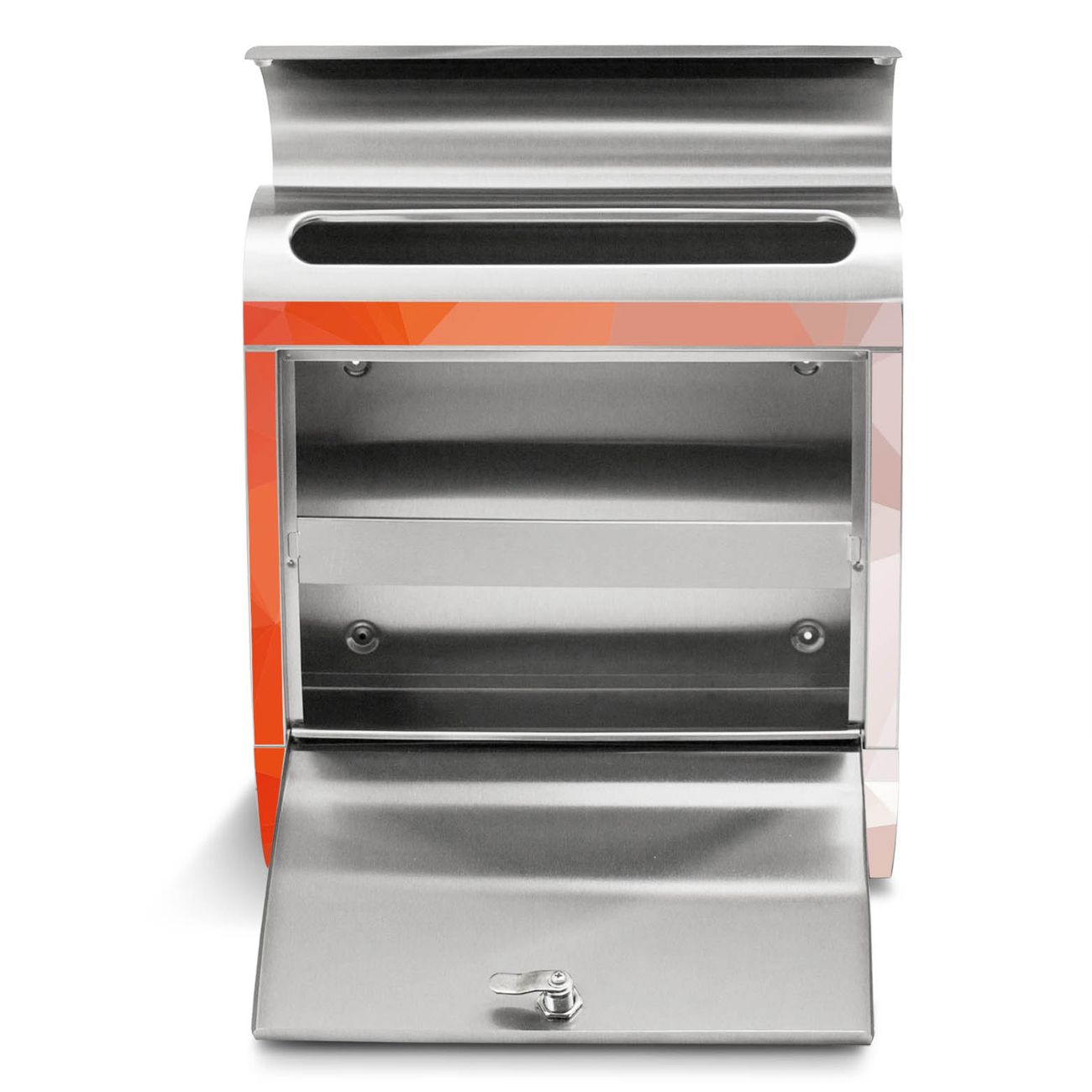Der Motivstandbriefkasten hat ein sehr ansprechendes und ausgefallenes Design, damit entlocken Sie Ihren Nachbarn und dem Postboten ein Lächeln. Heben Sie Sich ab von der tristen grauen Masse, ohne auf Funktionalität zu verzichten. Der Briefkasten besteht aus hochwertigem 18/0 Edelstahl und die Wetter- und UV-resistenten Folie mit Orange Polygon Motiv ist zusätzlich mit einem Schutzlaminat überzogen. Der Standbriefkasten wird mit Montagematerial und zwei Schlüsseln geliefert.