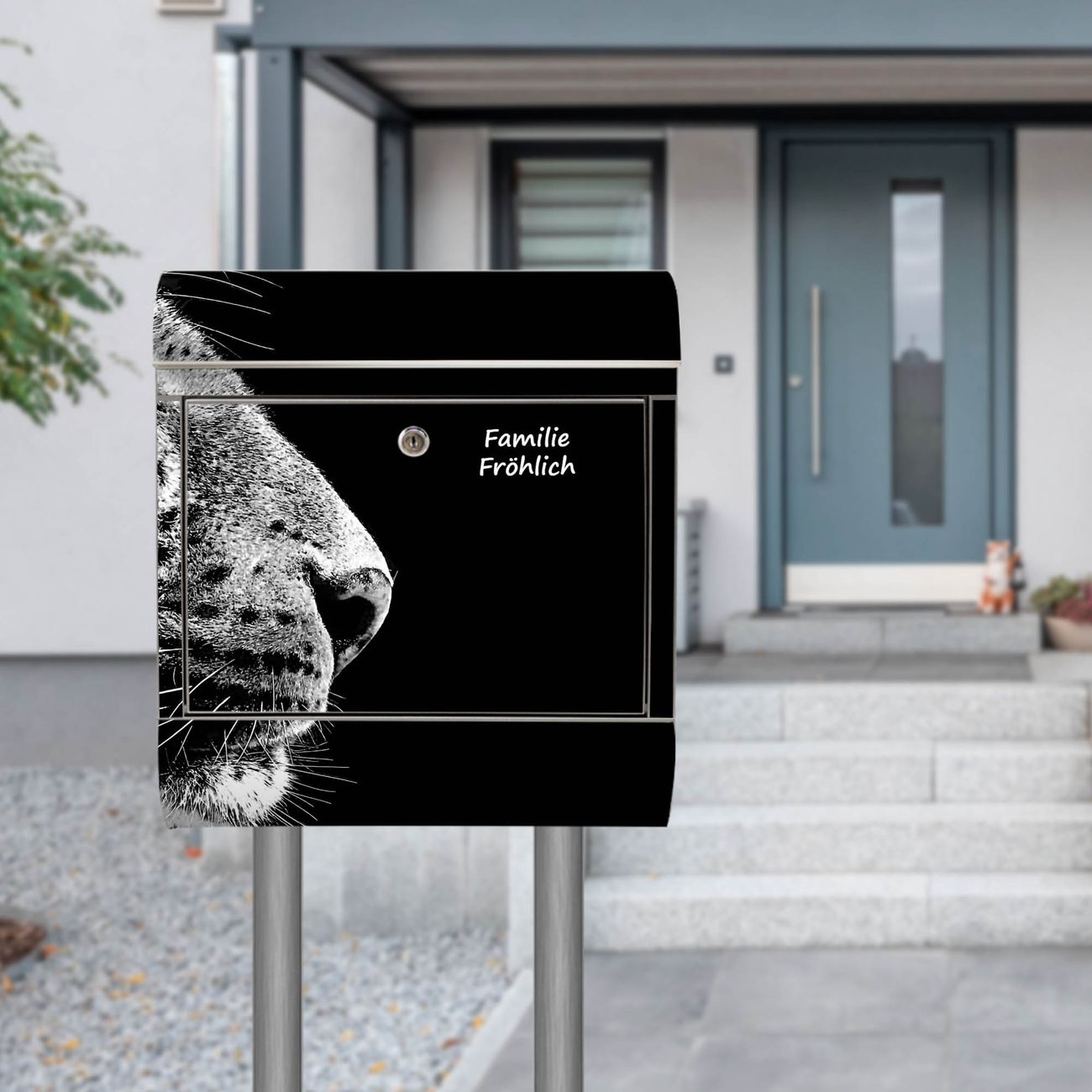 Der Motivstandbriefkasten hat ein sehr ansprechendes und ausgefallenes Design, damit entlocken Sie Ihren Nachbarn und dem Postboten ein Lächeln. Heben Sie Sich ab von der tristen grauen Masse, ohne auf Funktionalität zu verzichten. Der Briefkasten besteht aus hochwertigem 18/0 Edelstahl und die Wetter- und UV-resistenten Folie mit Pauline Motiv ist zusätzlich mit einem Schutzlaminat überzogen. Der Standbriefkasten wird mit Montagematerial und zwei Schlüsseln geliefert.