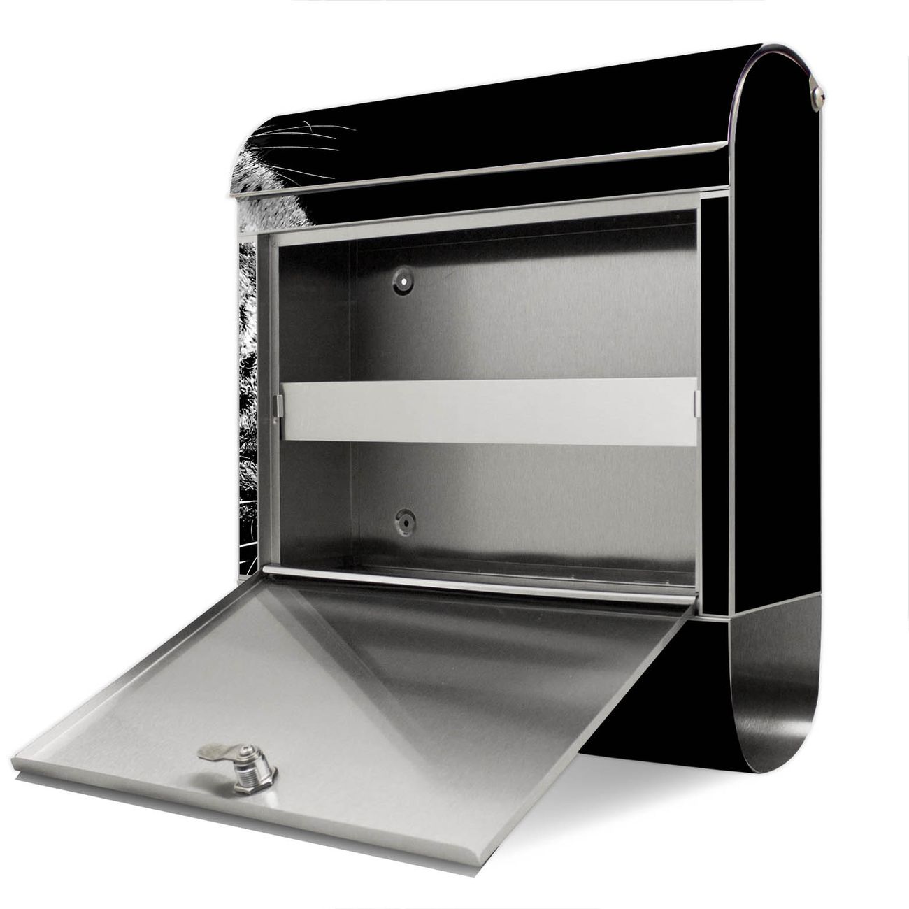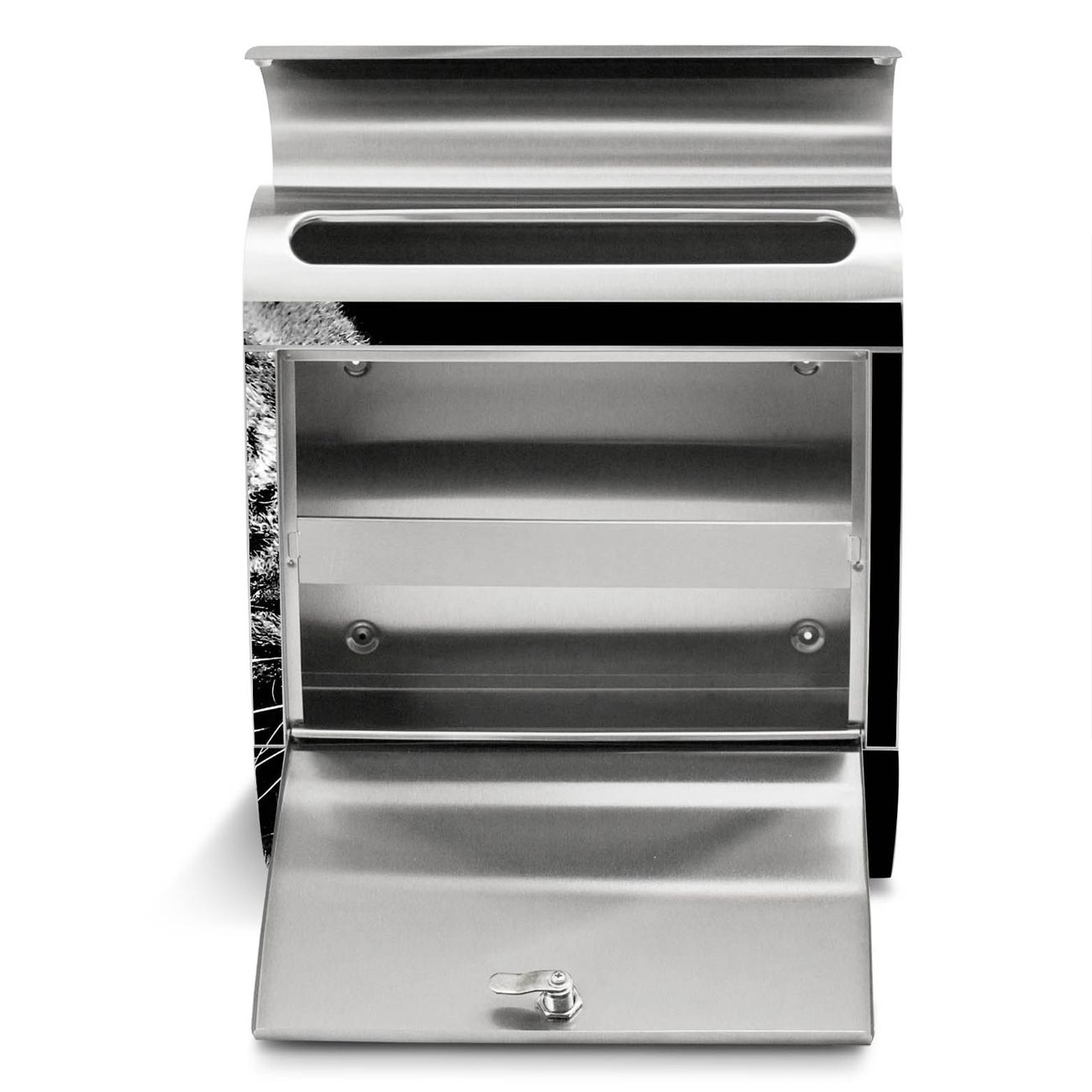 Der banjado Edelstahl Standbriefkasten mit Motiv Pauline und eigenem Wunschtext bietet Ihnen mit seinem Fassungsvermögen genügend Platz auch für große A4 Sendungen. Das integrierte Zeitungsfach eignet sich hervorragend, um unkompliziert die Tageszeitung zu fassen.