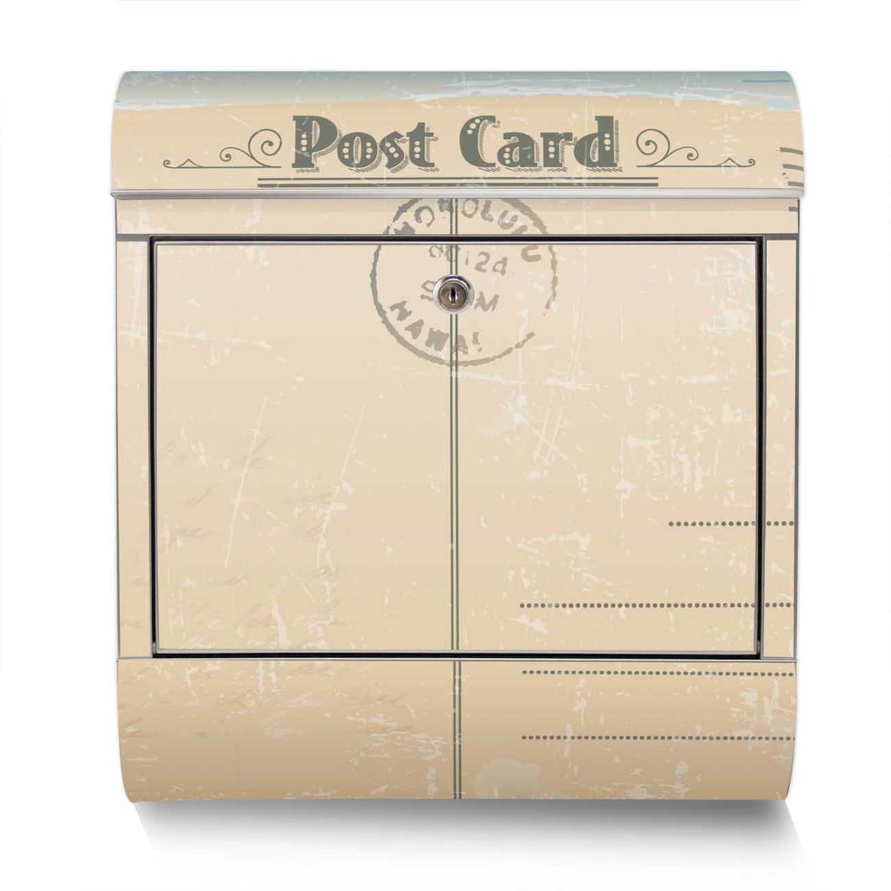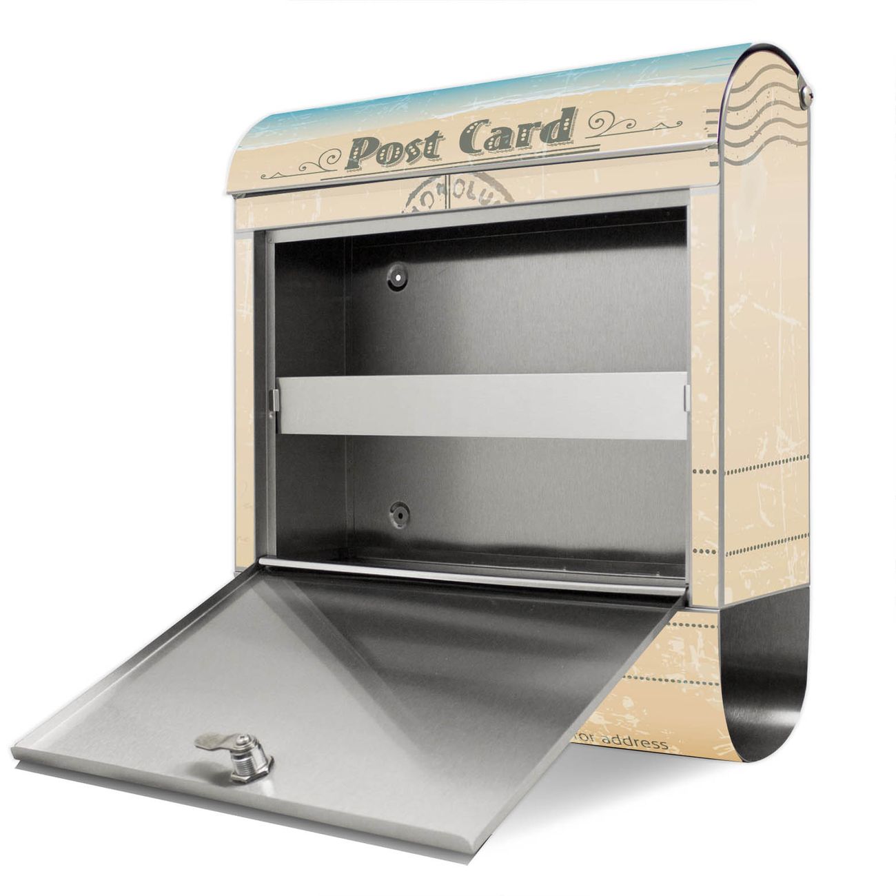 Der Motivstandbriefkasten hat ein sehr ansprechendes und ausgefallenes Design, damit entlocken Sie Ihren Nachbarn und dem Postboten ein Lächeln. Heben Sie Sich ab von der tristen grauen Masse, ohne auf Funktionalität zu verzichten. Der Briefkasten besteht aus hochwertigem 18/0 Edelstahl und die Wetter- und UV-resistenten Folie mit Postkarte Motiv ist zusätzlich mit einem Schutzlaminat überzogen. Der Standbriefkasten wird mit Montagematerial und zwei Schlüsseln geliefert.