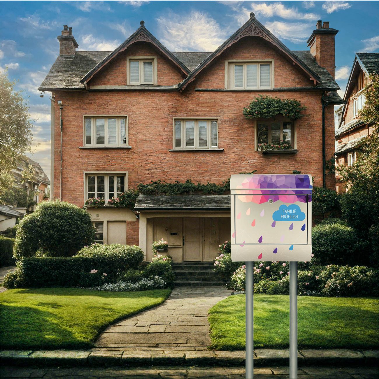 Der Motivstandbriefkasten hat ein sehr ansprechendes und ausgefallenes Design, damit entlocken Sie Ihren Nachbarn und dem Postboten ein Lächeln. Heben Sie Sich ab von der tristen grauen Masse, ohne auf Funktionalität zu verzichten. Der Briefkasten besteht aus hochwertigem 18/0 Edelstahl und die Wetter- und UV-resistenten Folie mit Regenwolke Motiv ist zusätzlich mit einem Schutzlaminat überzogen. Der Standbriefkasten wird mit Montagematerial und zwei Schlüsseln geliefert.