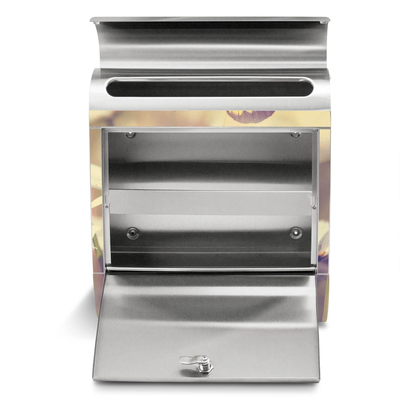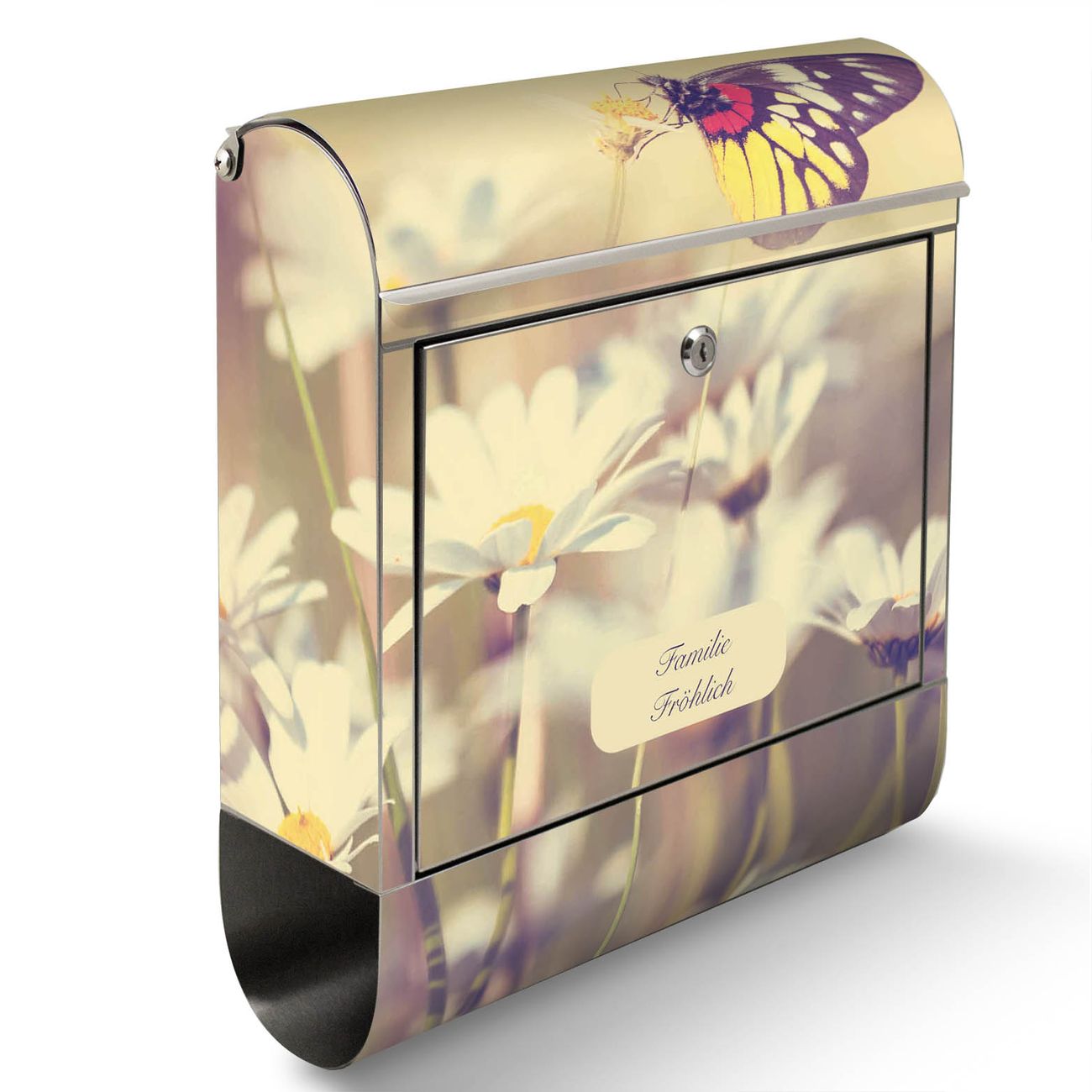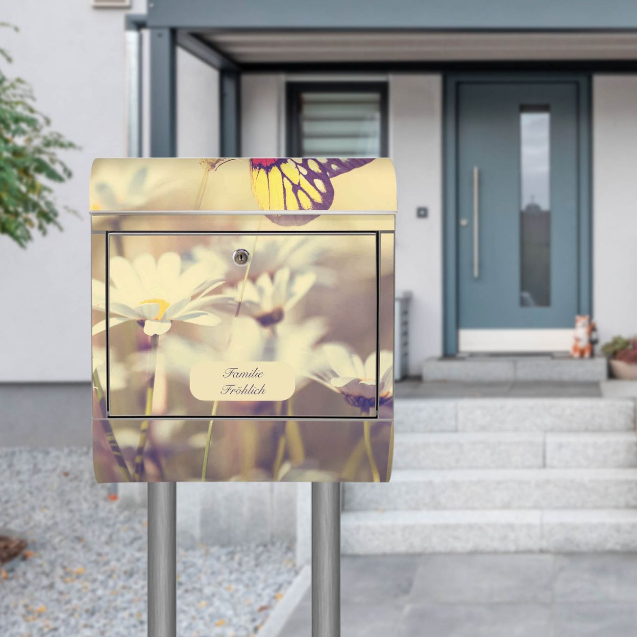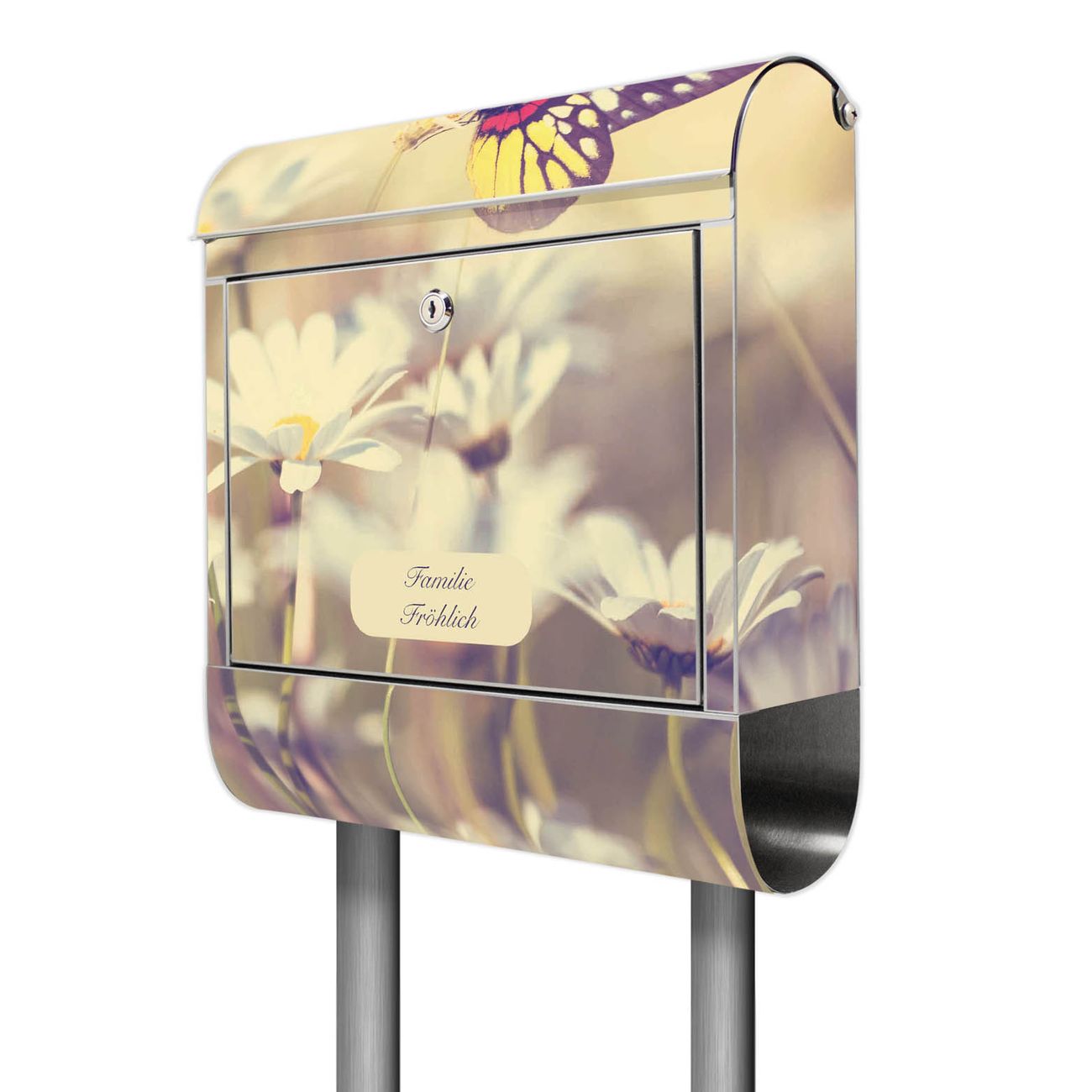 Der banjado Edelstahl Standbriefkasten mit Motiv Rotgelber Falter und eigenem Wunschtext bietet Ihnen mit seinem Fassungsvermögen genügend Platz auch für große A4 Sendungen. Das integrierte Zeitungsfach eignet sich hervorragend, um unkompliziert die Tageszeitung zu fassen.