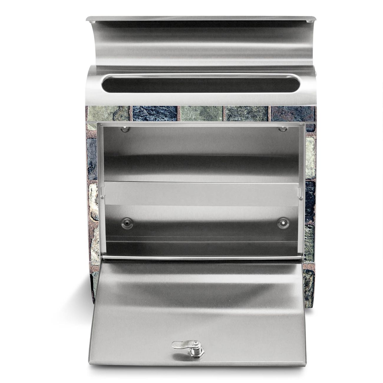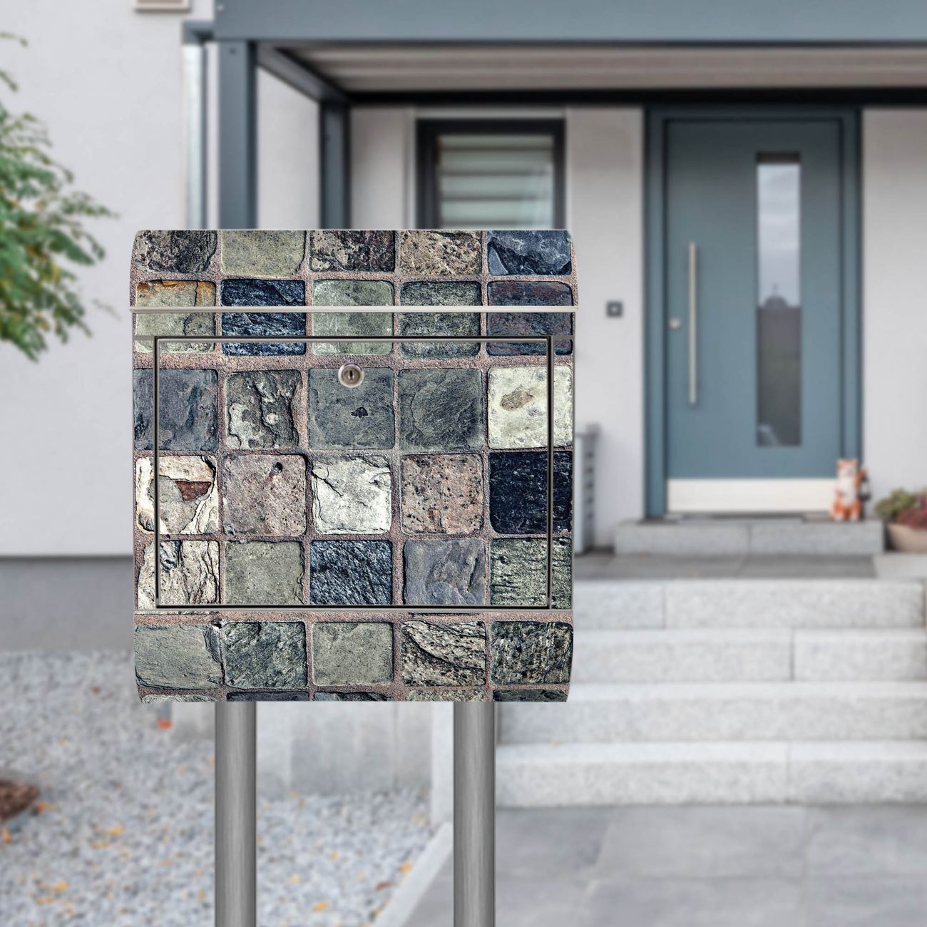 Der Motivstandbriefkasten hat ein sehr ansprechendes und ausgefallenes Design, damit entlocken Sie Ihren Nachbarn und dem Postboten ein Lächeln. Heben Sie Sich ab von der tristen grauen Masse, ohne auf Funktionalität zu verzichten. Der Briefkasten besteht aus hochwertigem 18/0 Edelstahl und die Wetter- und UV-resistenten Folie mit Steinfliesen Motiv ist zusätzlich mit einem Schutzlaminat überzogen. Der Standbriefkasten wird mit Montagematerial und zwei Schlüsseln geliefert.