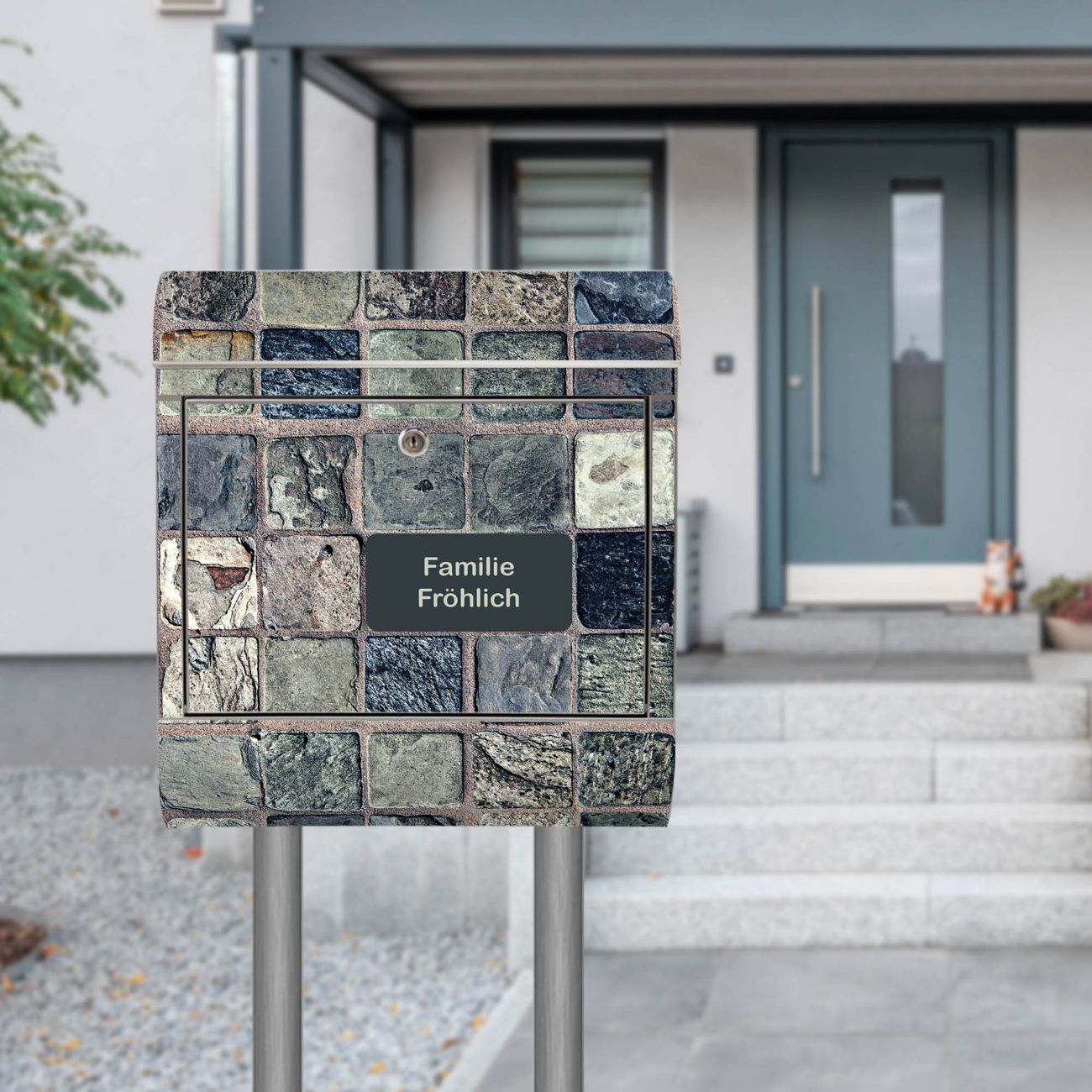 Standbriefkasten Edelstahl Steinfliesen