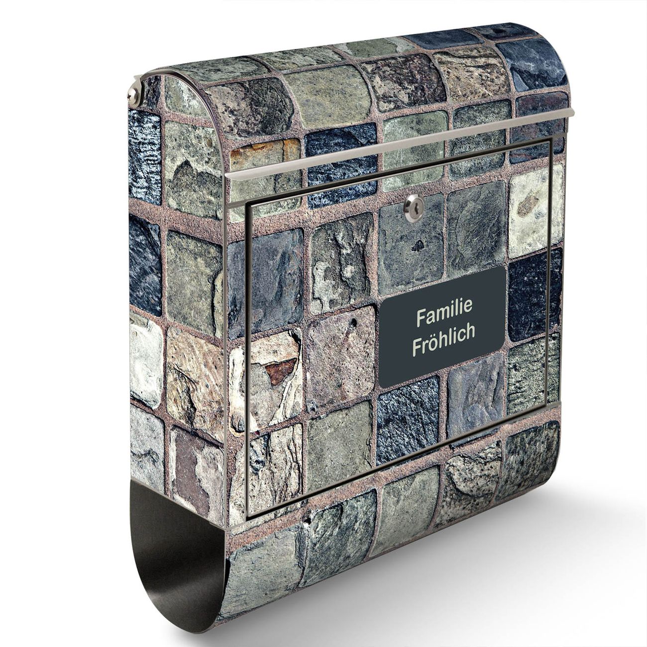 Der Motivstandbriefkasten hat ein sehr ansprechendes und ausgefallenes Design, damit entlocken Sie Ihren Nachbarn und dem Postboten ein Lächeln. Heben Sie Sich ab von der tristen grauen Masse, ohne auf Funktionalität zu verzichten. Der Briefkasten besteht aus hochwertigem 18/0 Edelstahl und die Wetter- und UV-resistenten Folie mit Steinfliesen Motiv ist zusätzlich mit einem Schutzlaminat überzogen. Der Standbriefkasten wird mit Montagematerial und zwei Schlüsseln geliefert.