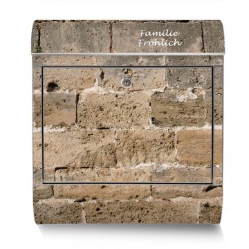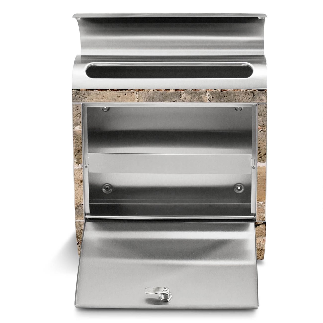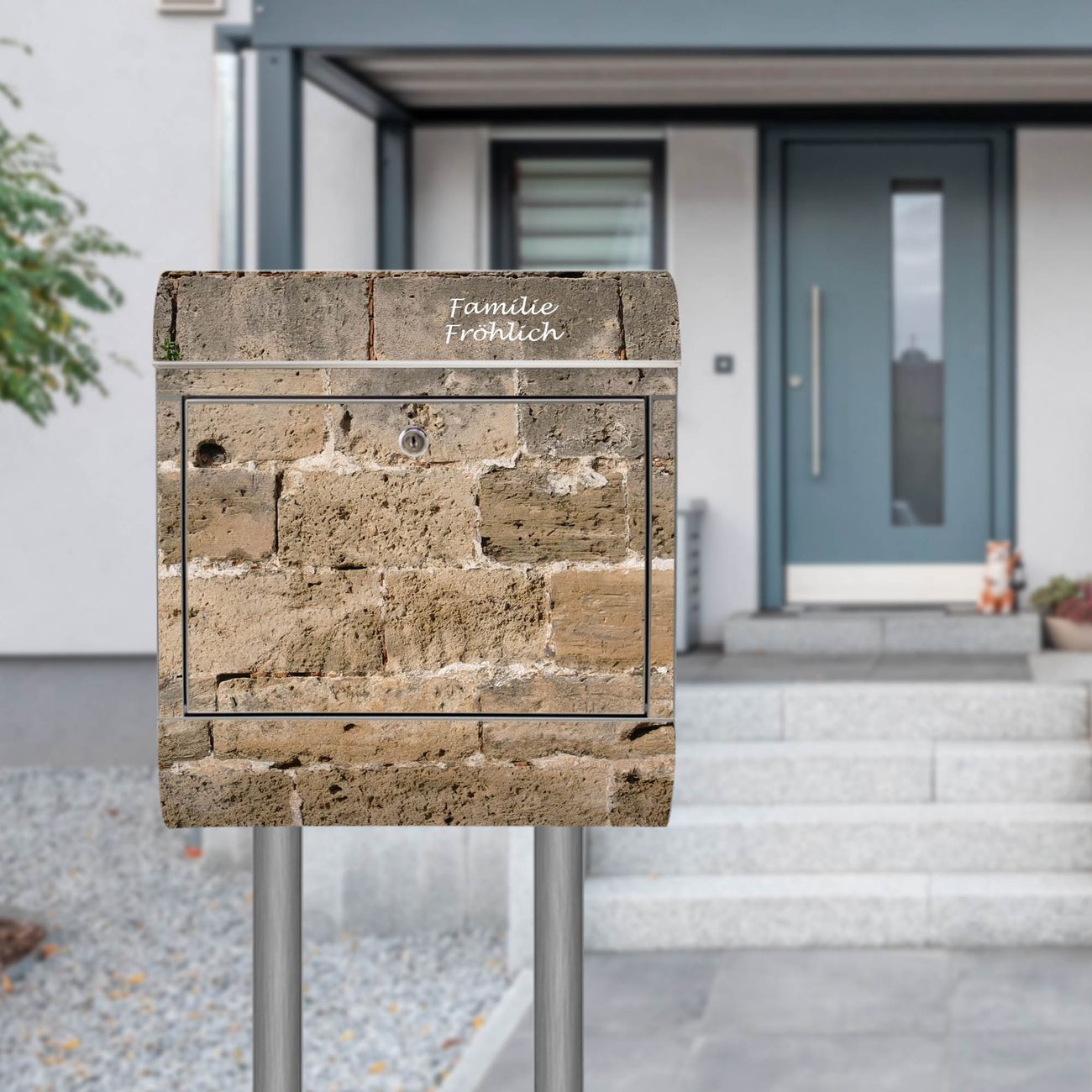 Der banjado Edelstahl Standbriefkasten mit Motiv Steinwand Antik und eigenem Wunschtext bietet Ihnen mit seinem Fassungsvermögen genügend Platz auch für große A4 Sendungen. Das integrierte Zeitungsfach eignet sich hervorragend, um unkompliziert die Tageszeitung zu fassen.