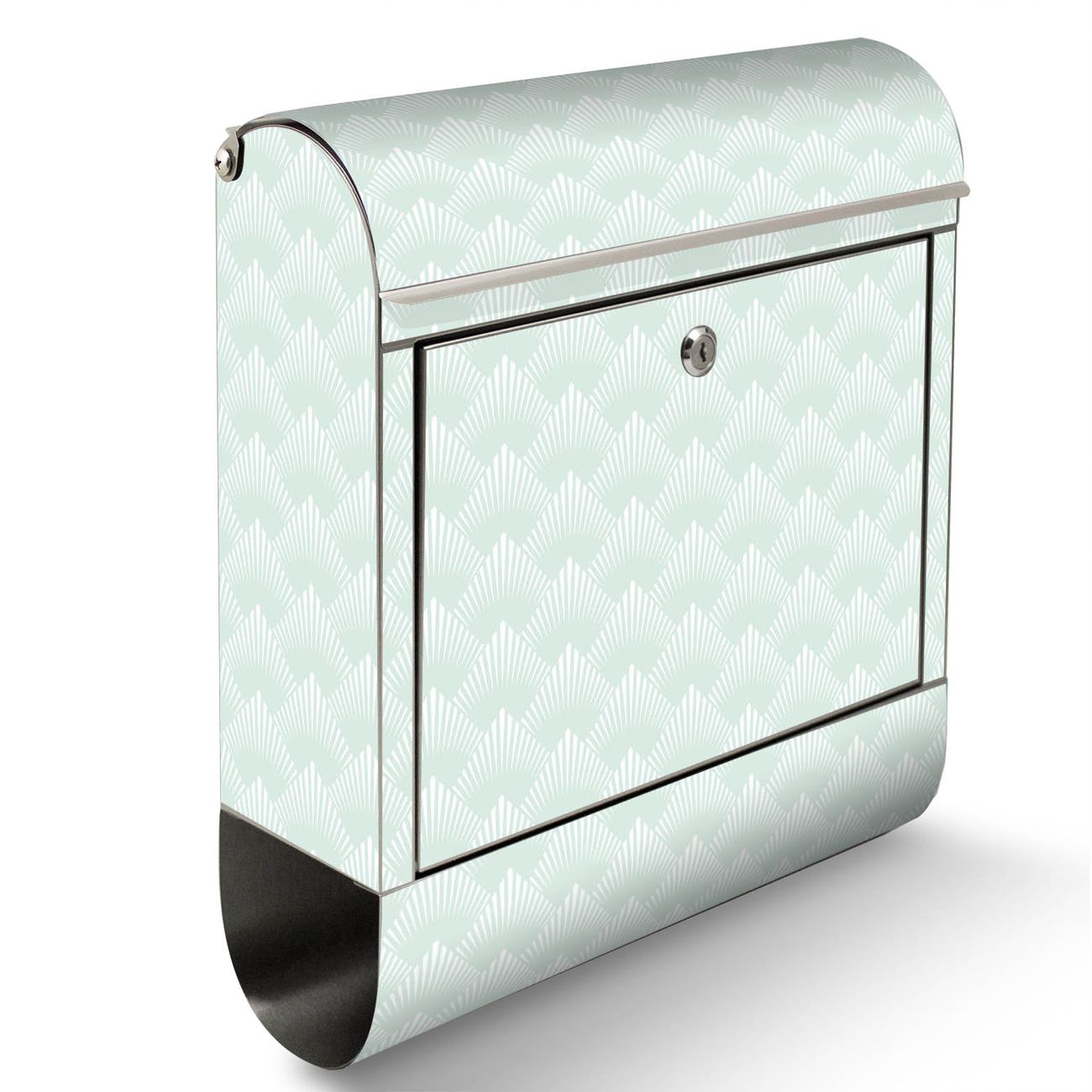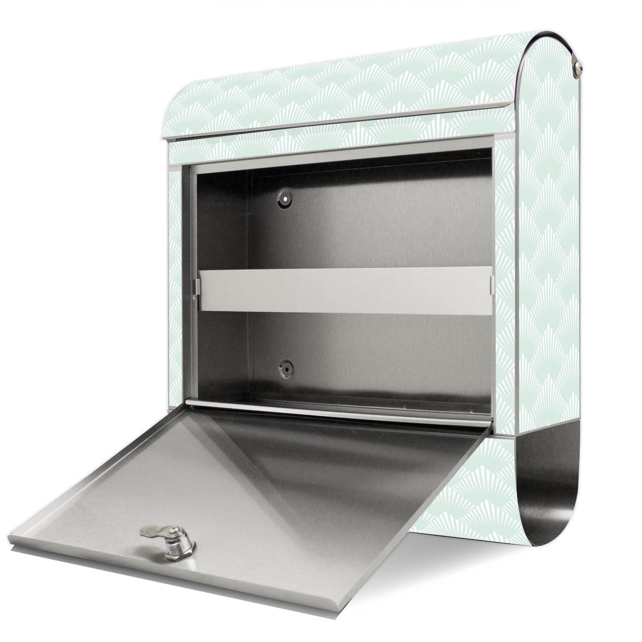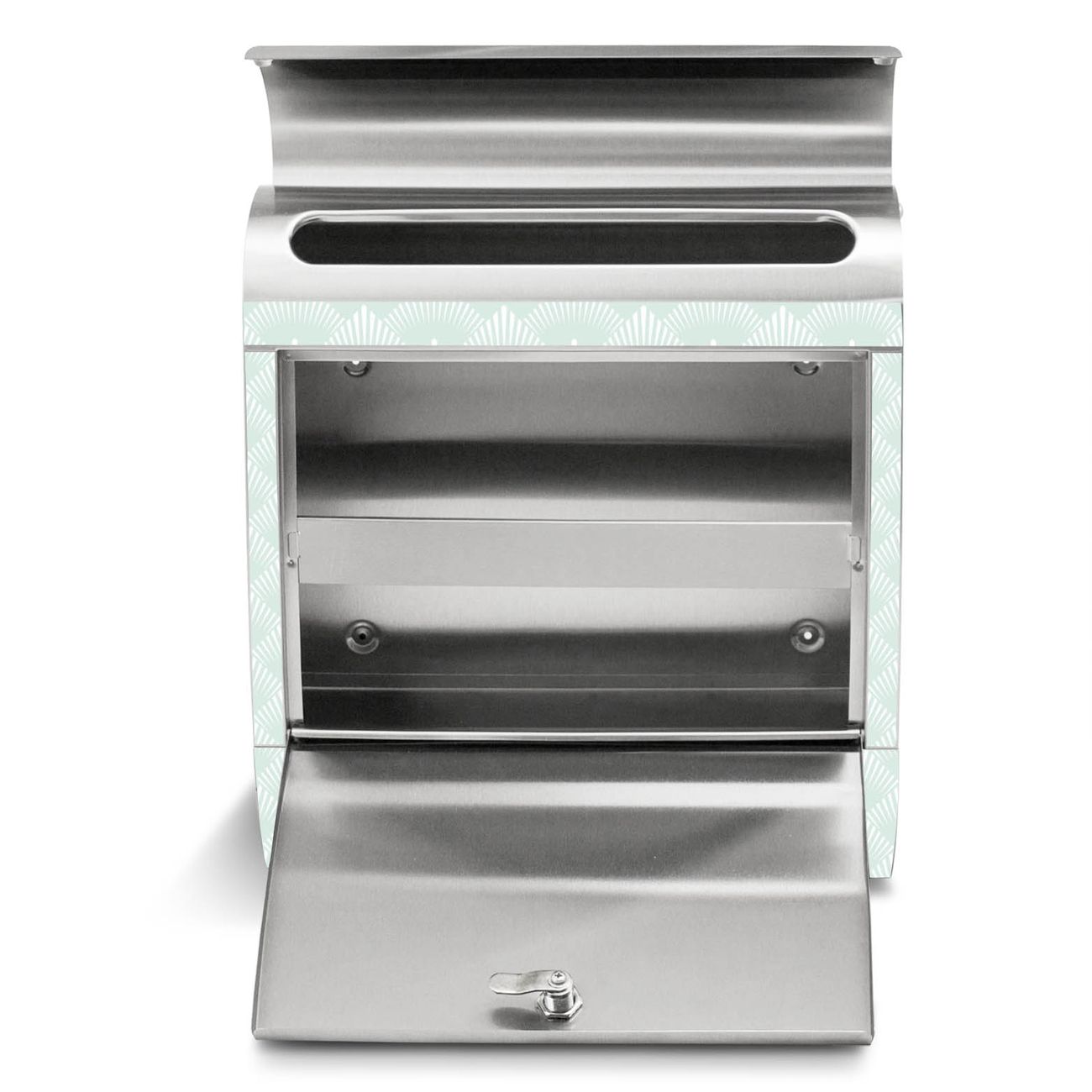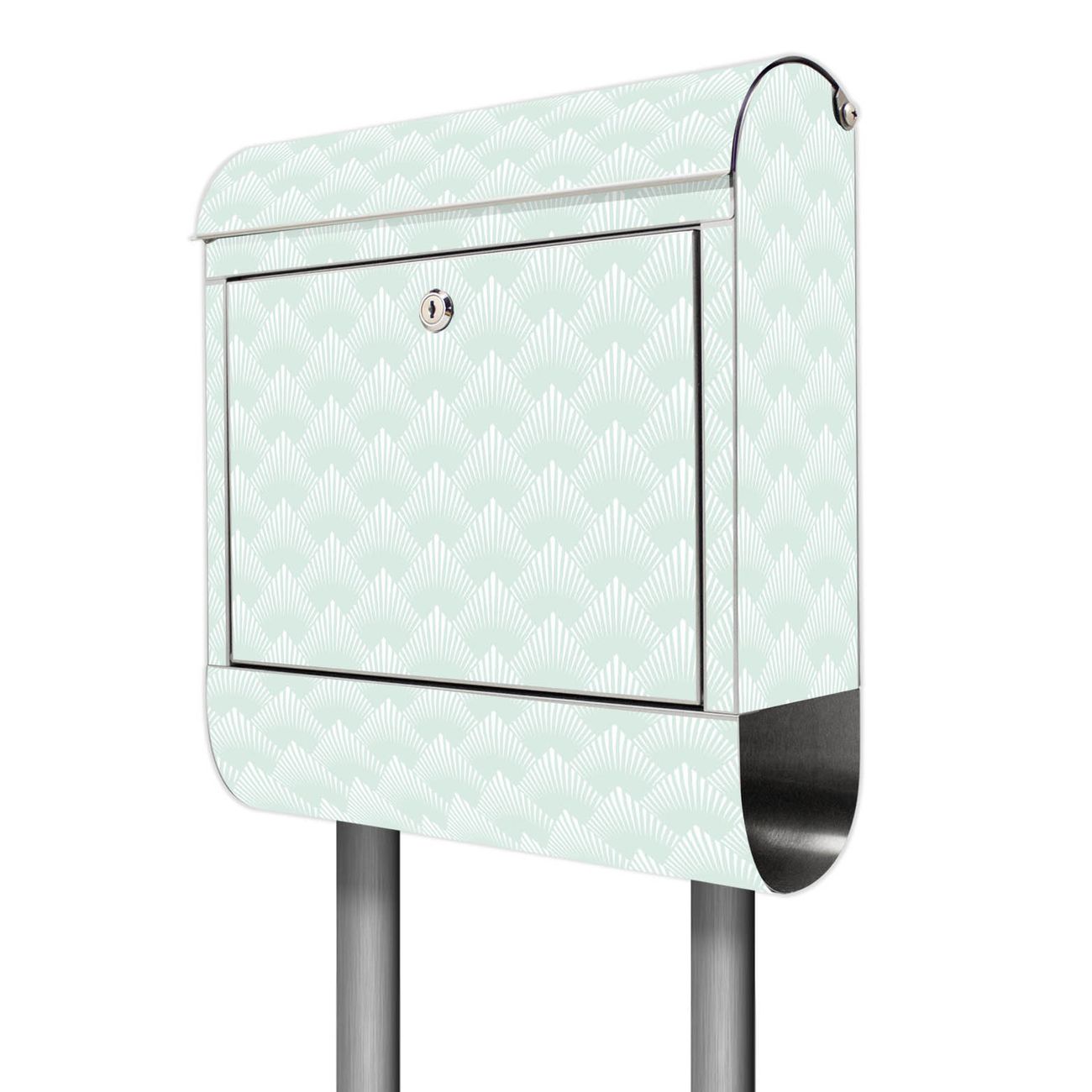 Der banjado Edelstahl Standbriefkasten mit Motiv Strahlen Mint bietet Ihnen mit seinem Fassungsvermögen genügend Platz auch für große A4 Sendungen. Das integrierte Zeitungsfach eignet sich hervorragend, um unkompliziert die Tageszeitung zu fassen.