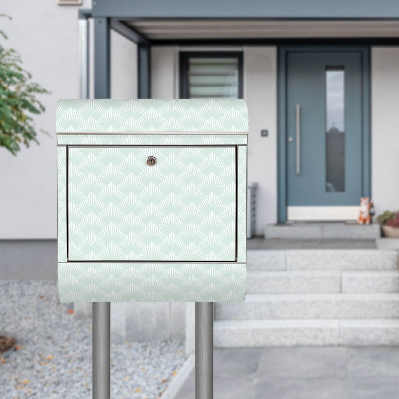 Der Motivstandbriefkasten hat ein sehr ansprechendes und ausgefallenes Design, damit entlocken Sie Ihren Nachbarn und dem Postboten ein Lächeln. Heben Sie Sich ab von der tristen grauen Masse, ohne auf Funktionalität zu verzichten. Der Briefkasten besteht aus hochwertigem 18/0 Edelstahl und die Wetter- und UV-resistenten Folie mit Strahlen Mint Motiv ist zusätzlich mit einem Schutzlaminat überzogen. Der Standbriefkasten wird mit Montagematerial und zwei Schlüsseln geliefert.