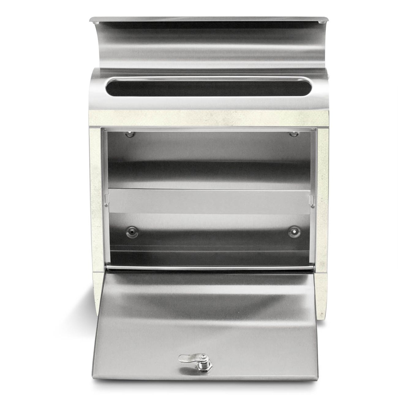 Der banjado Edelstahl Standbriefkasten mit Motiv Tristessa bietet Ihnen mit seinem Fassungsvermögen genügend Platz auch für große A4 Sendungen. Das integrierte Zeitungsfach eignet sich hervorragend, um unkompliziert die Tageszeitung zu fassen.