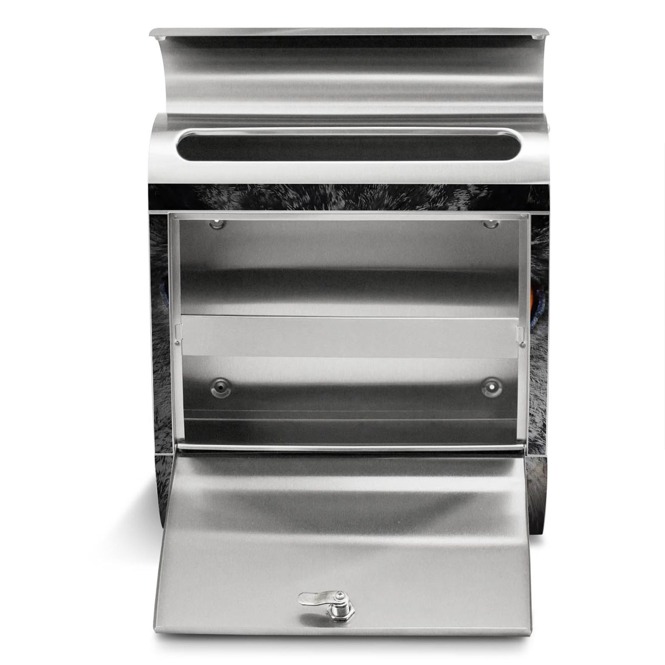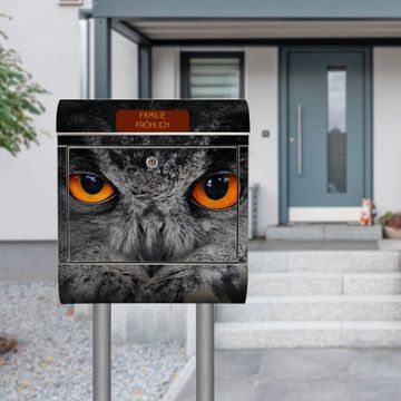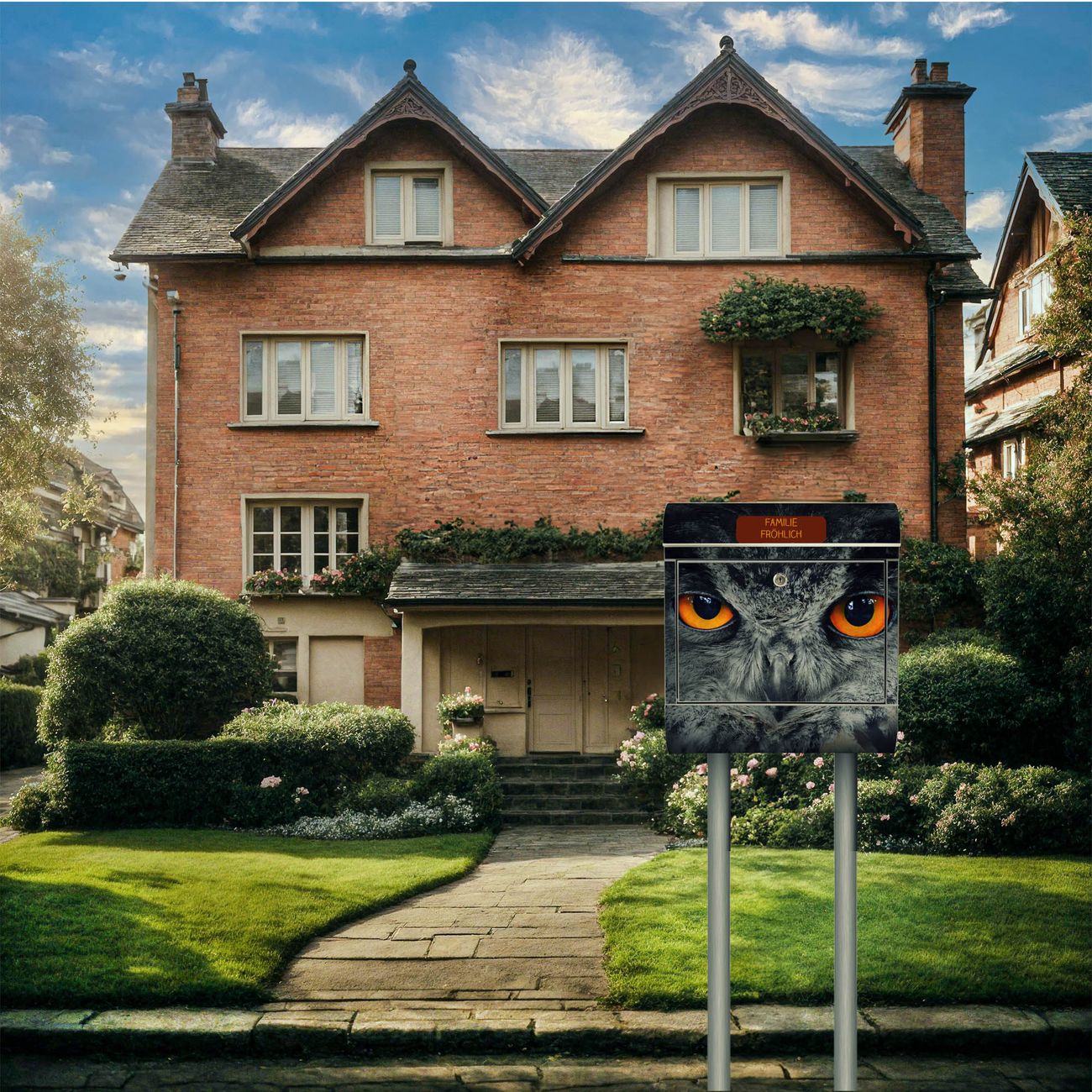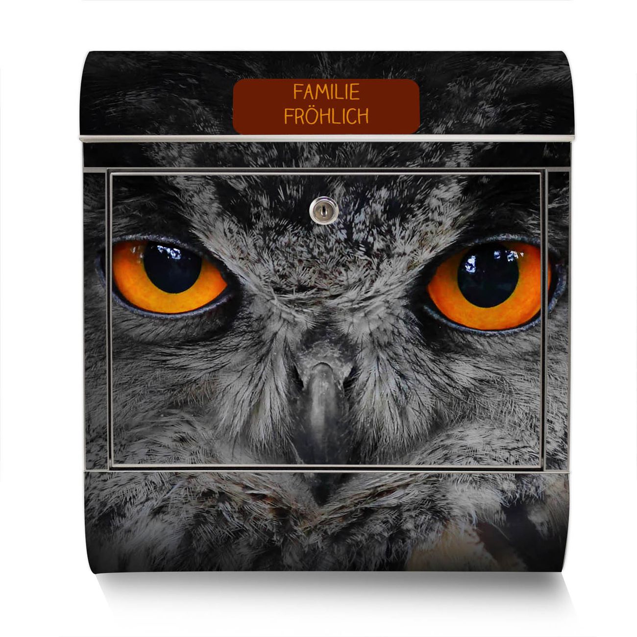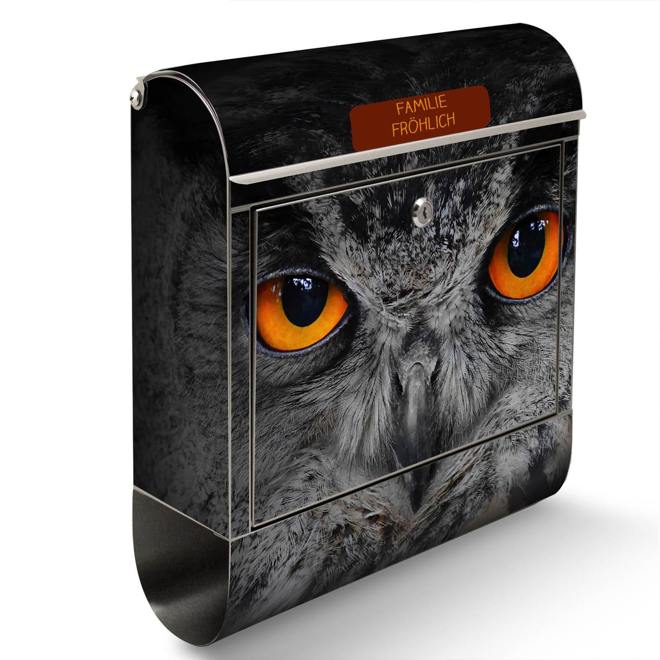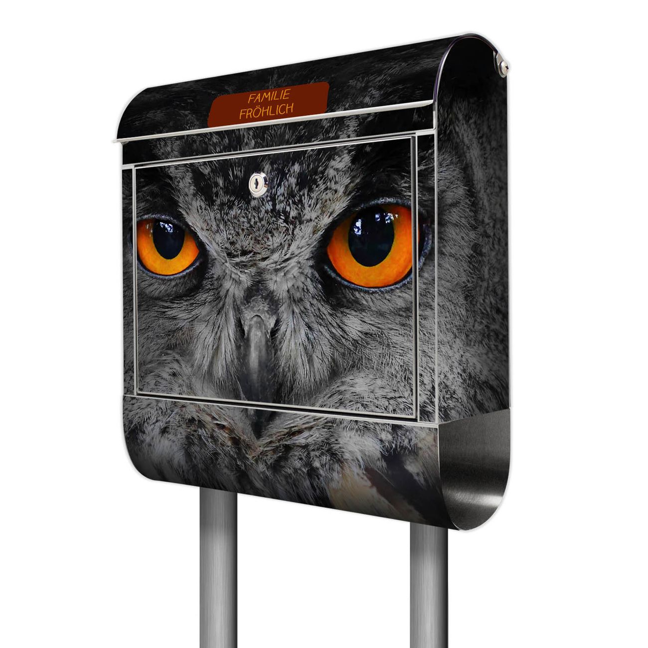 Der banjado Edelstahl Standbriefkasten mit Motiv Uhu und eigenem Wunschtext bietet Ihnen mit seinem Fassungsvermögen genügend Platz auch für große A4 Sendungen. Das integrierte Zeitungsfach eignet sich hervorragend, um unkompliziert die Tageszeitung zu fassen.