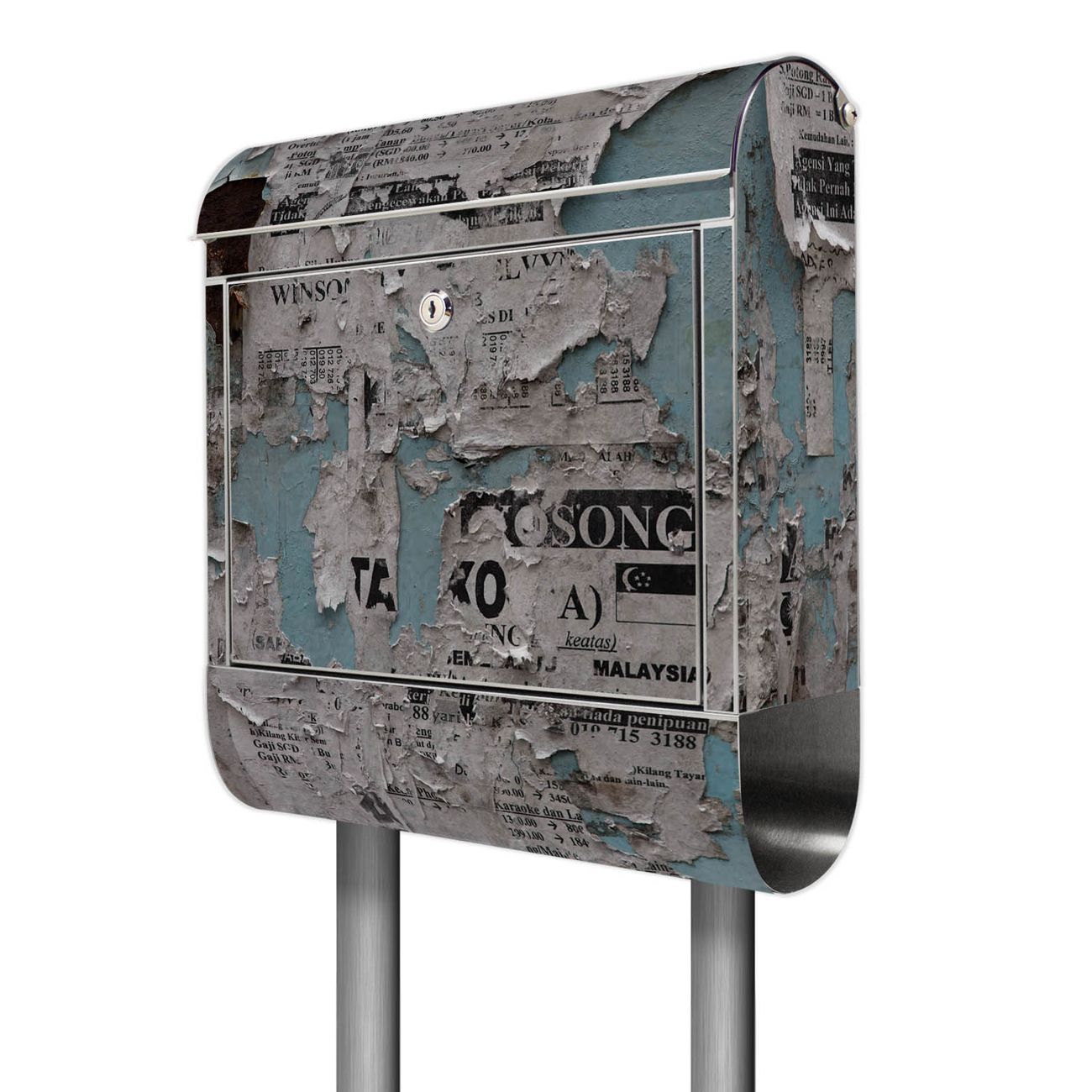 Der Motivstandbriefkasten hat ein sehr ansprechendes und ausgefallenes Design, damit entlocken Sie Ihren Nachbarn und dem Postboten ein Lächeln. Heben Sie Sich ab von der tristen grauen Masse, ohne auf Funktionalität zu verzichten. Der Briefkasten besteht aus hochwertigem 18/0 Edelstahl und die Wetter- und UV-resistenten Folie mit Wand mit Zeitungen Motiv ist zusätzlich mit einem Schutzlaminat überzogen. Der Standbriefkasten wird mit Montagematerial und zwei Schlüsseln geliefert.