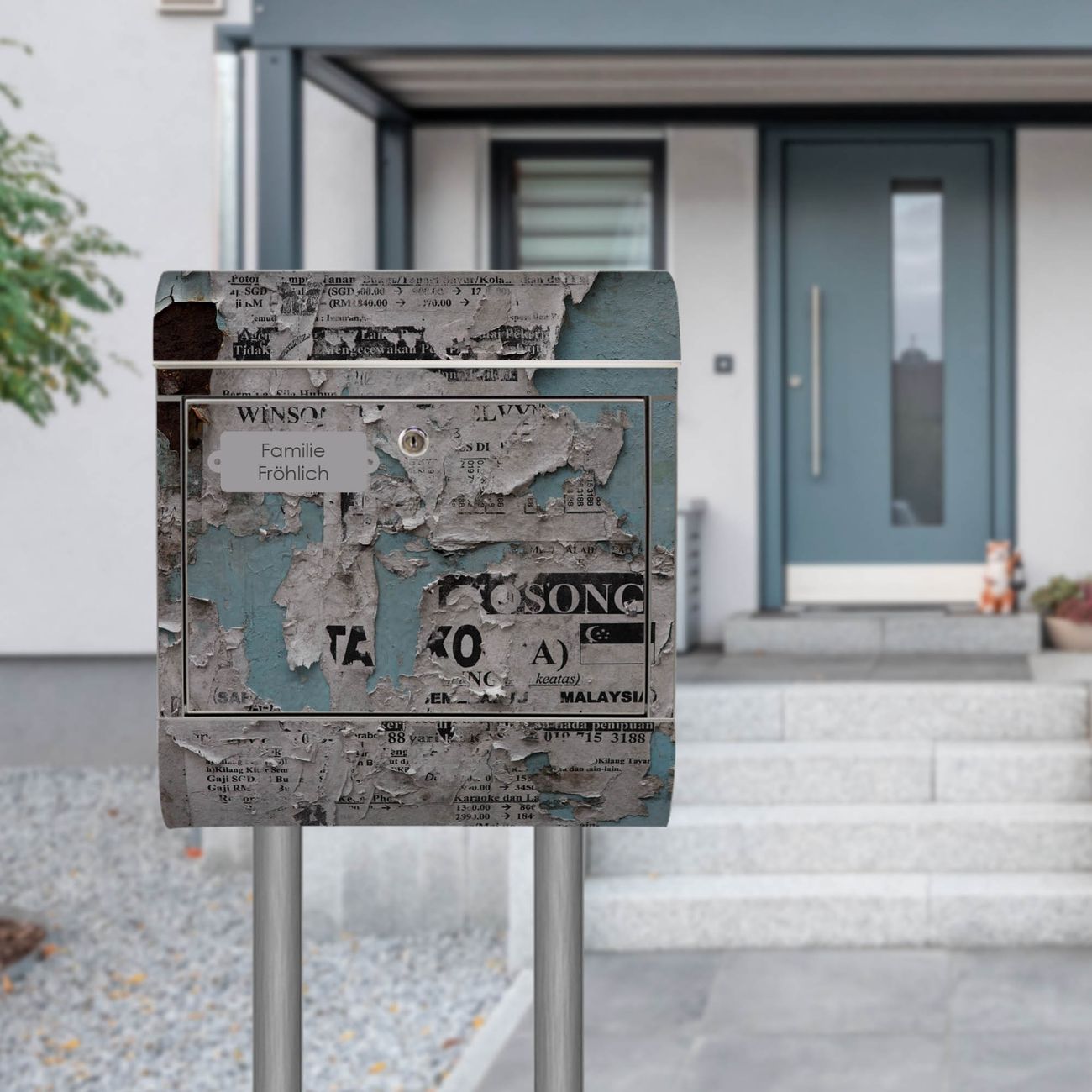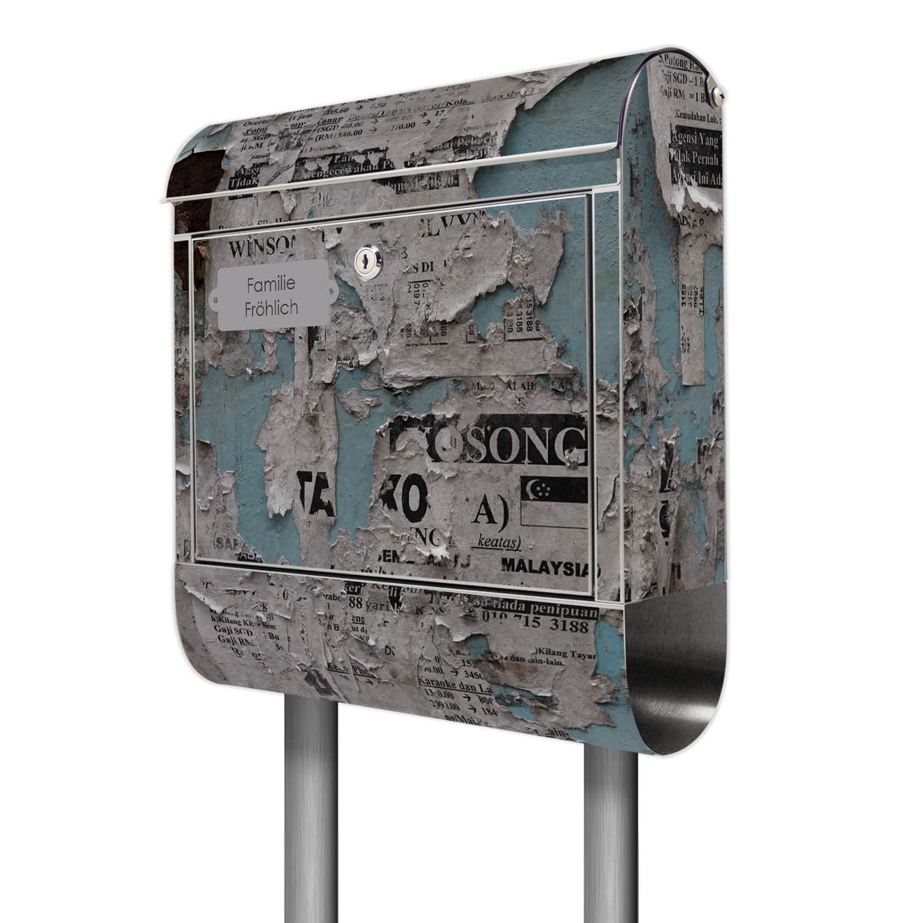 Der Motivstandbriefkasten hat ein sehr ansprechendes und ausgefallenes Design, damit entlocken Sie Ihren Nachbarn und dem Postboten ein Lächeln. Heben Sie Sich ab von der tristen grauen Masse, ohne auf Funktionalität zu verzichten. Der Briefkasten besteht aus hochwertigem 18/0 Edelstahl und die Wetter- und UV-resistenten Folie mit Wand mit Zeitungen Motiv ist zusätzlich mit einem Schutzlaminat überzogen. Der Standbriefkasten wird mit Montagematerial und zwei Schlüsseln geliefert.