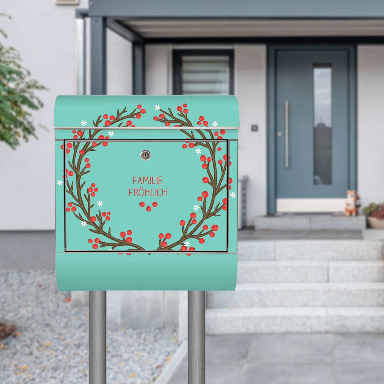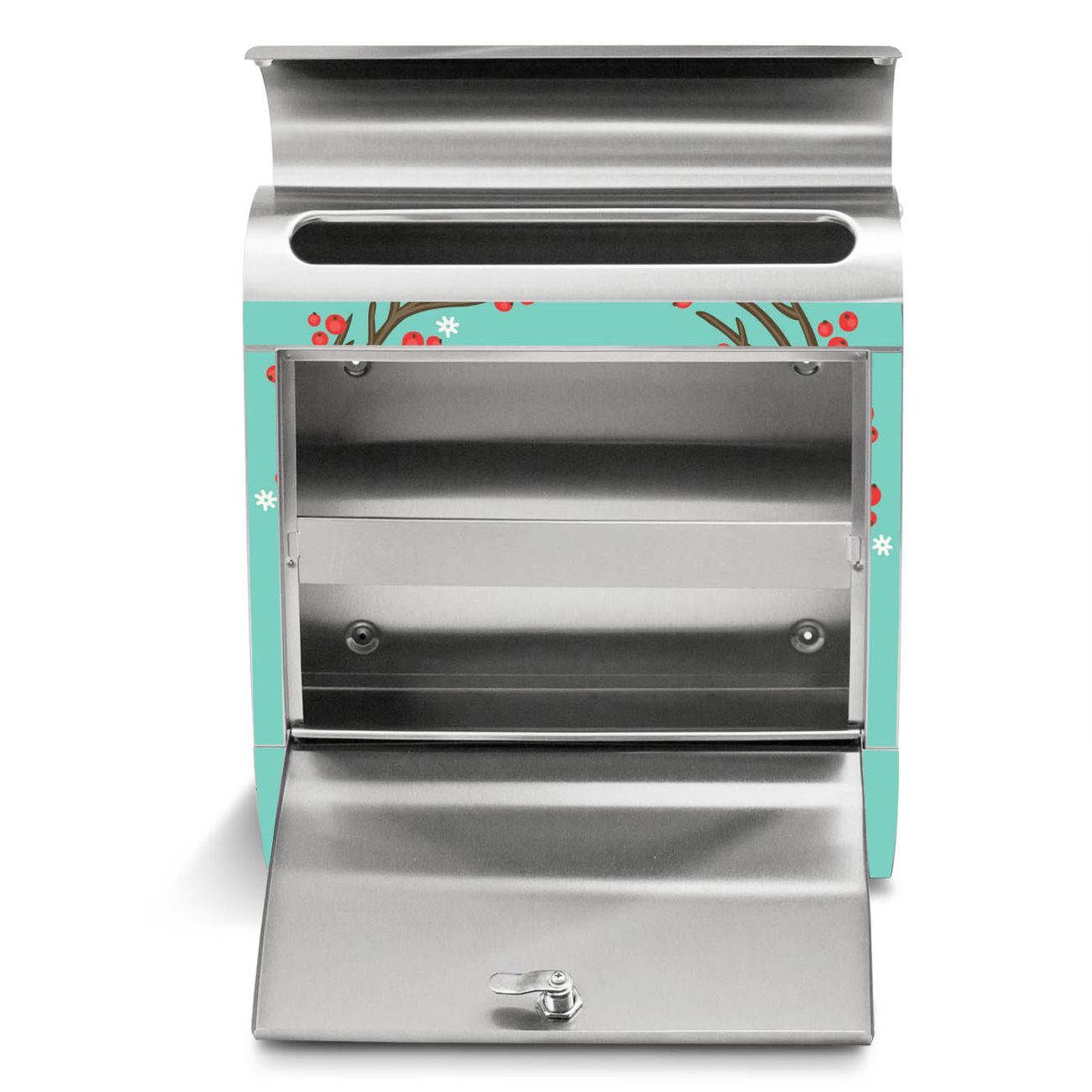 Der Motivstandbriefkasten hat ein sehr ansprechendes und ausgefallenes Design, damit entlocken Sie Ihren Nachbarn und dem Postboten ein Lächeln. Heben Sie Sich ab von der tristen grauen Masse, ohne auf Funktionalität zu verzichten. Der Briefkasten besteht aus hochwertigem 18/0 Edelstahl und die Wetter- und UV-resistenten Folie mit Weihnachtsranke Motiv ist zusätzlich mit einem Schutzlaminat überzogen. Der Standbriefkasten wird mit Montagematerial und zwei Schlüsseln geliefert.