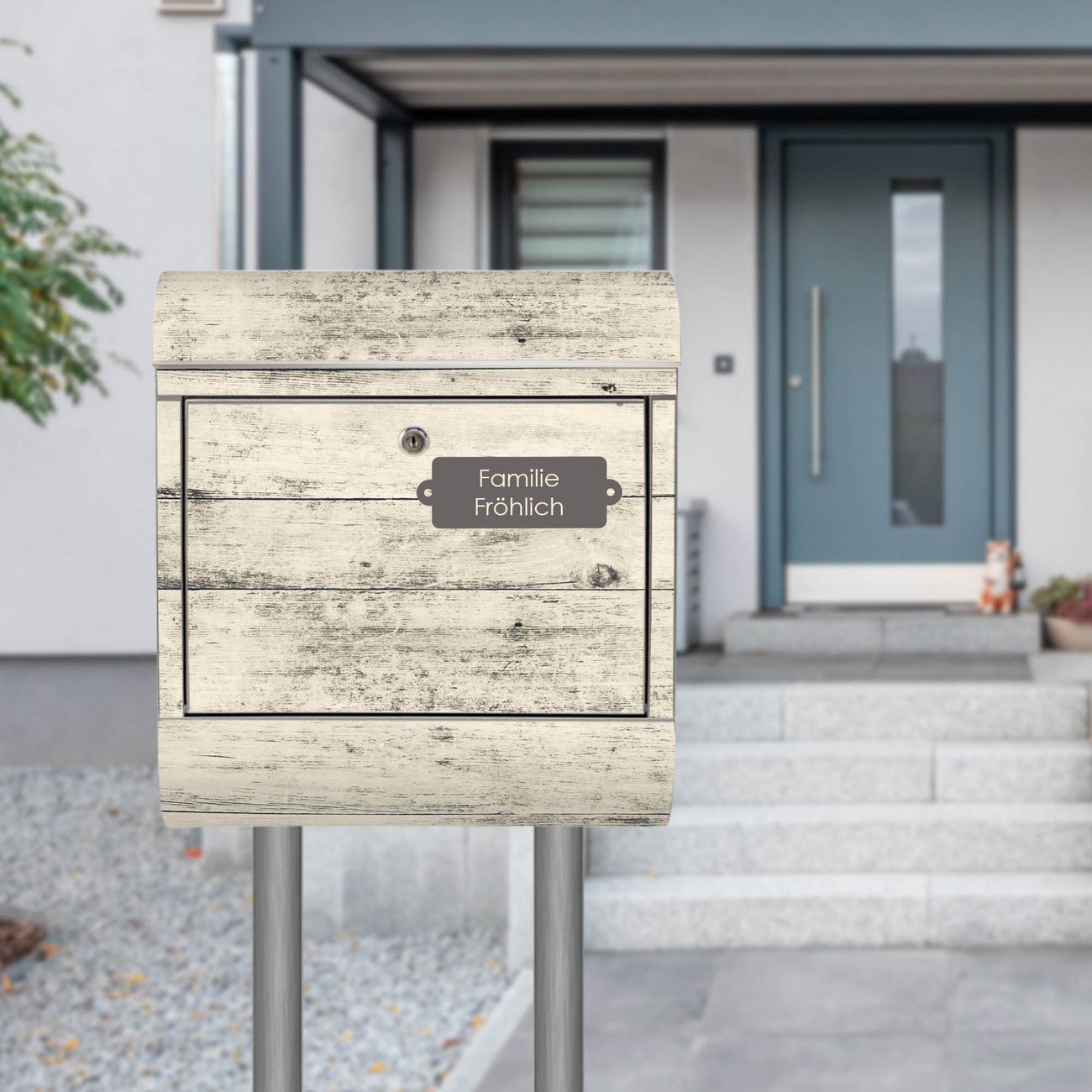 Standbriefkasten Edelstahl Weiße Planken H