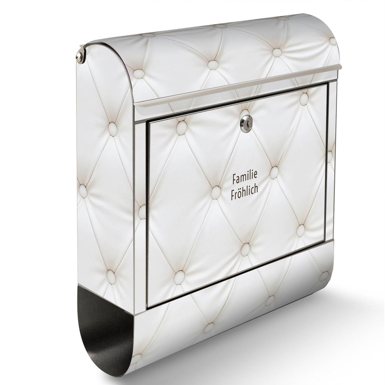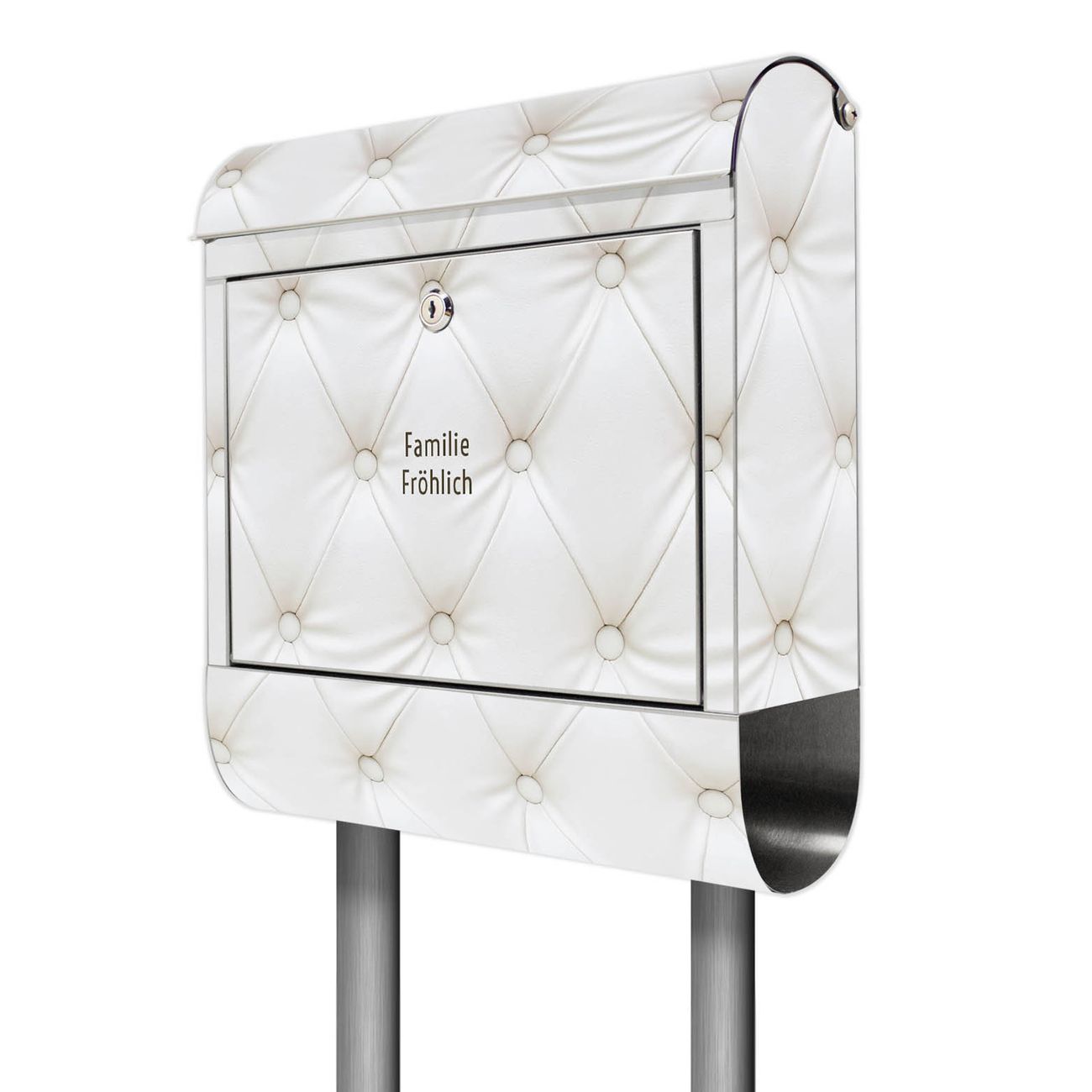 Der banjado Edelstahl Standbriefkasten mit Motiv Weißes Polster und eigenem Wunschtext bietet Ihnen mit seinem Fassungsvermögen genügend Platz auch für große A4 Sendungen. Das integrierte Zeitungsfach eignet sich hervorragend, um unkompliziert die Tageszeitung zu fassen.