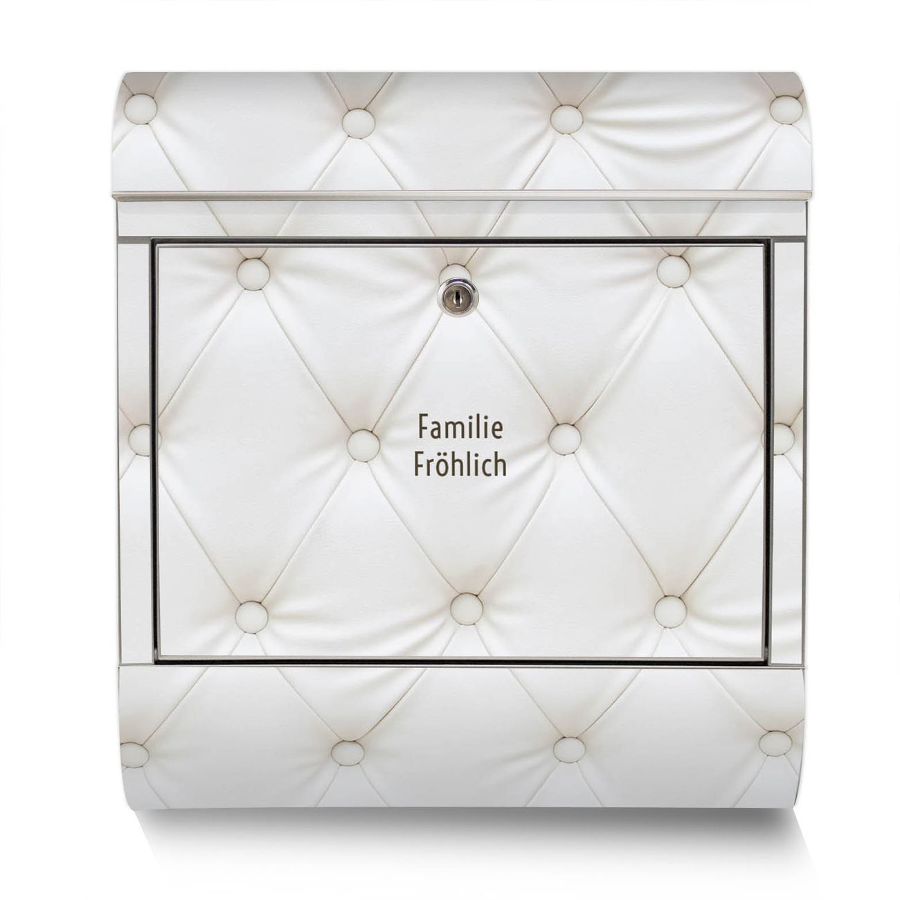 Der Motivstandbriefkasten hat ein sehr ansprechendes und ausgefallenes Design, damit entlocken Sie Ihren Nachbarn und dem Postboten ein Lächeln. Heben Sie Sich ab von der tristen grauen Masse, ohne auf Funktionalität zu verzichten. Der Briefkasten besteht aus hochwertigem 18/0 Edelstahl und die Wetter- und UV-resistenten Folie mit Weißes Polster Motiv ist zusätzlich mit einem Schutzlaminat überzogen. Der Standbriefkasten wird mit Montagematerial und zwei Schlüsseln geliefert.