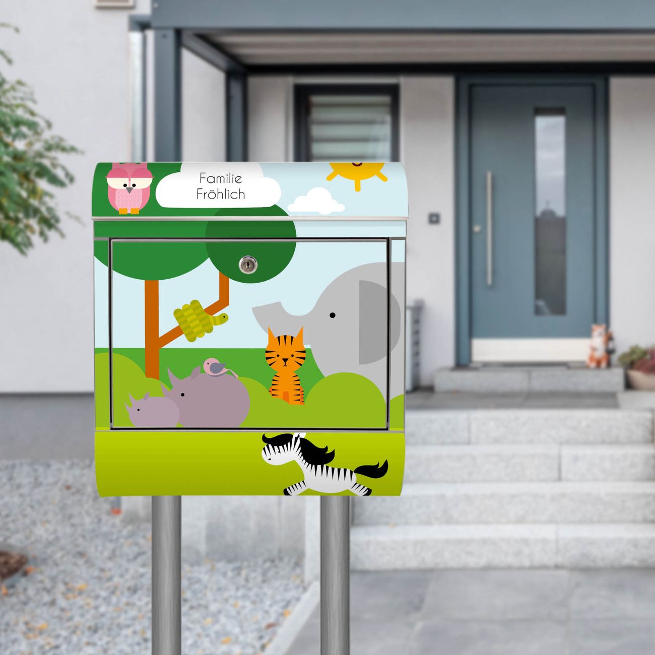 Standbriefkasten Edelstahl Wilde Tiere