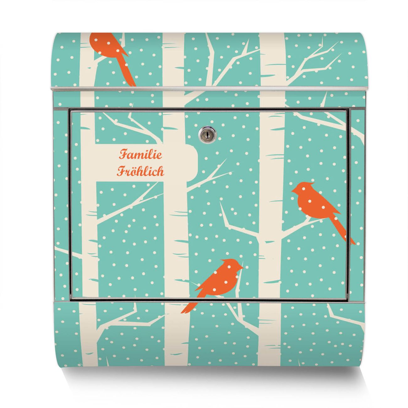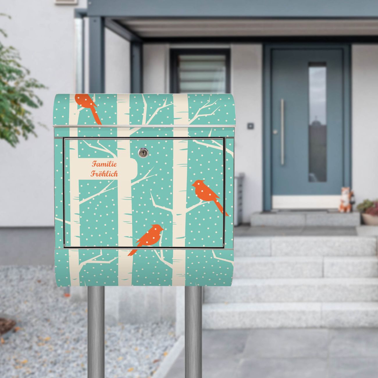 Der Motivstandbriefkasten hat ein sehr ansprechendes und ausgefallenes Design, damit entlocken Sie Ihren Nachbarn und dem Postboten ein Lächeln. Heben Sie Sich ab von der tristen grauen Masse, ohne auf Funktionalität zu verzichten. Der Briefkasten besteht aus hochwertigem 18/0 Edelstahl und die Wetter- und UV-resistenten Folie mit Wintervögel Motiv ist zusätzlich mit einem Schutzlaminat überzogen. Der Standbriefkasten wird mit Montagematerial und zwei Schlüsseln geliefert.