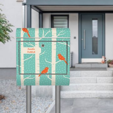 Der banjado Edelstahl Standbriefkasten mit Motiv Wintervögel und eigenem Wunschtext bietet Ihnen mit seinem Fassungsvermögen genügend Platz auch für große A4 Sendungen. Das integrierte Zeitungsfach eignet sich hervorragend, um unkompliziert die Tageszeitung zu fassen.