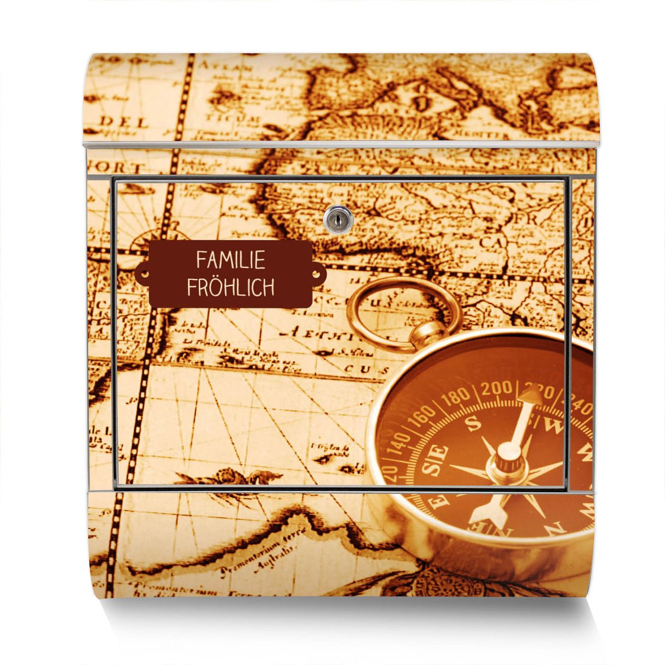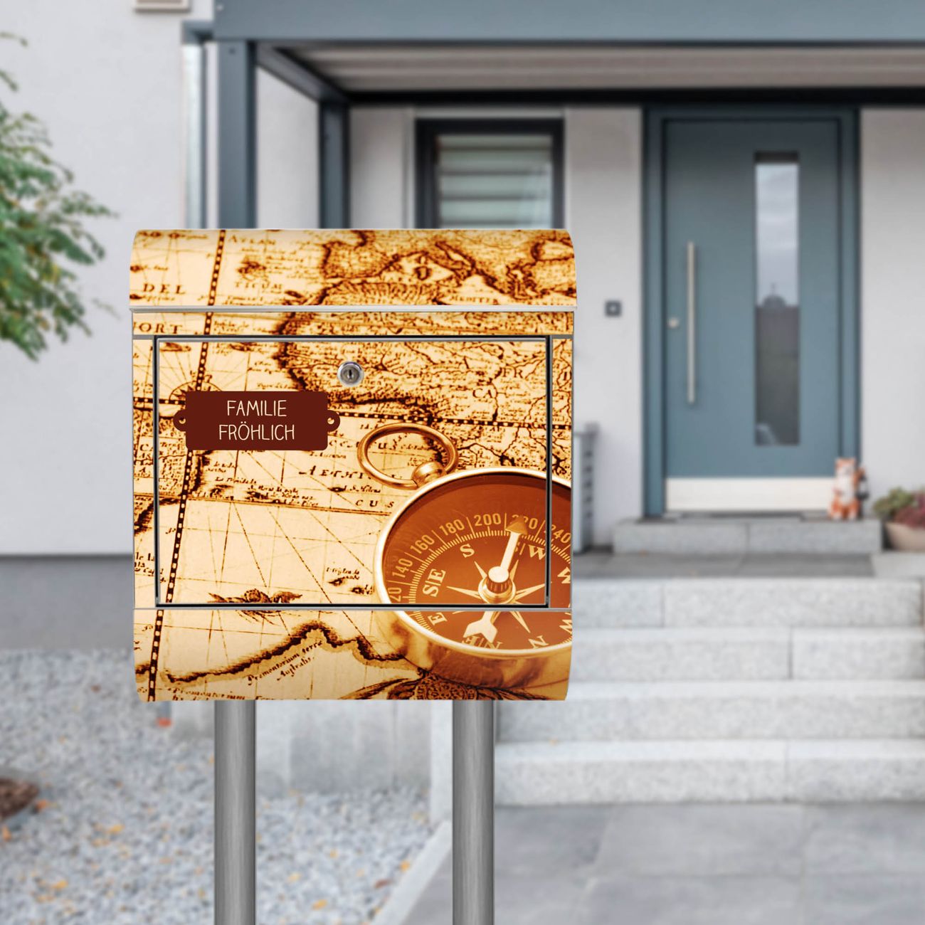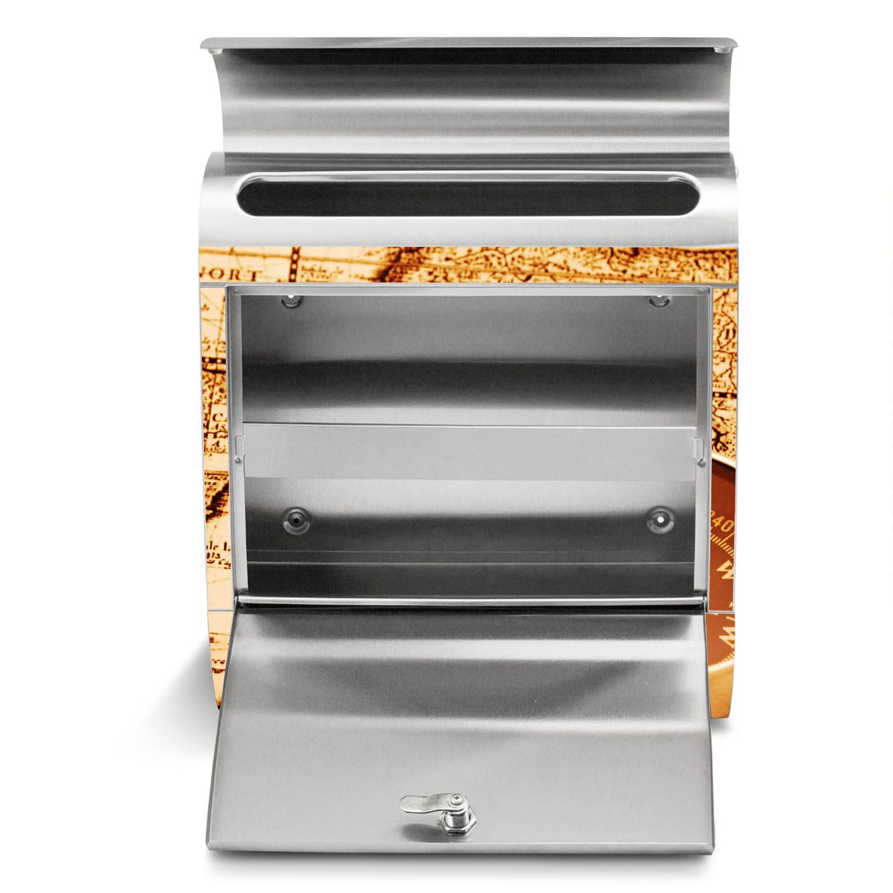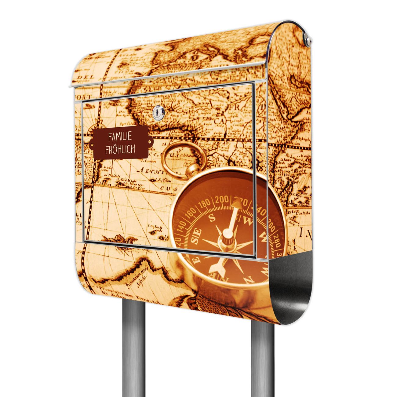 Der banjado Edelstahl Standbriefkasten mit Motiv World Map und eigenem Wunschtext bietet Ihnen mit seinem Fassungsvermögen genügend Platz auch für große A4 Sendungen. Das integrierte Zeitungsfach eignet sich hervorragend, um unkompliziert die Tageszeitung zu fassen.