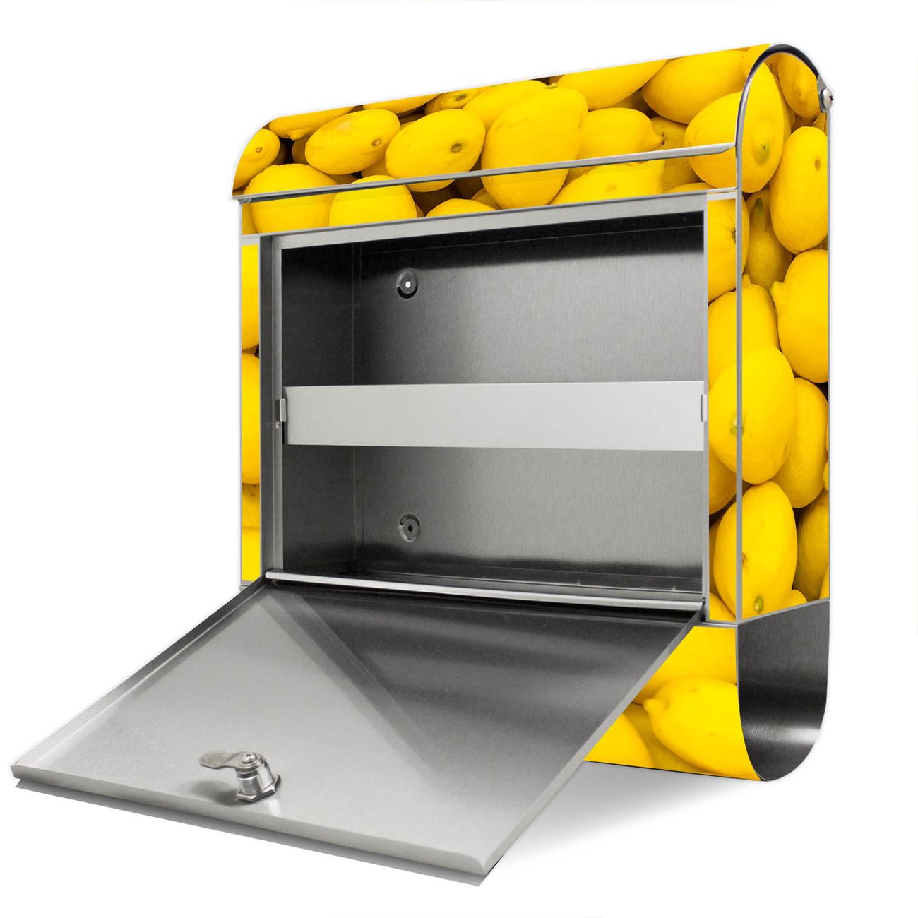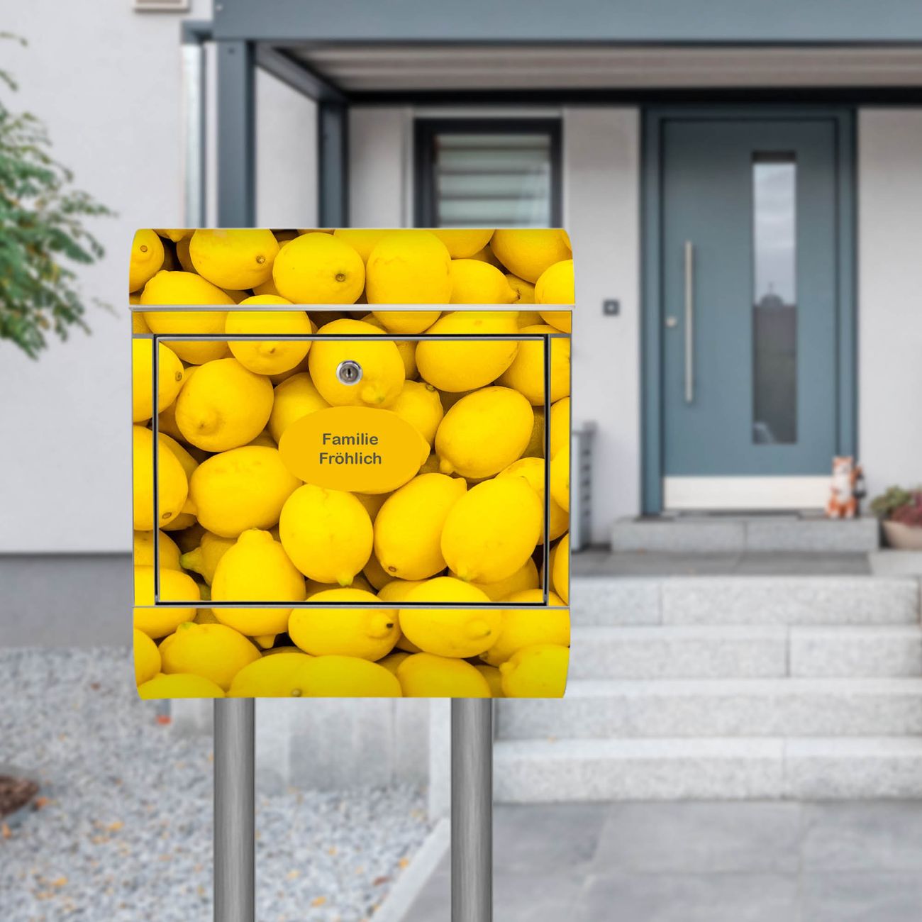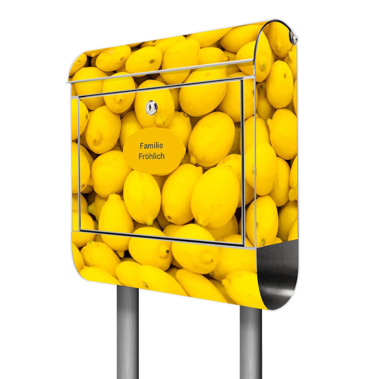 Der Motivstandbriefkasten hat ein sehr ansprechendes und ausgefallenes Design, damit entlocken Sie Ihren Nachbarn und dem Postboten ein Lächeln. Heben Sie Sich ab von der tristen grauen Masse, ohne auf Funktionalität zu verzichten. Der Briefkasten besteht aus hochwertigem 18/0 Edelstahl und die Wetter- und UV-resistenten Folie mit Zitronen Motiv ist zusätzlich mit einem Schutzlaminat überzogen. Der Standbriefkasten wird mit Montagematerial und zwei Schlüsseln geliefert.